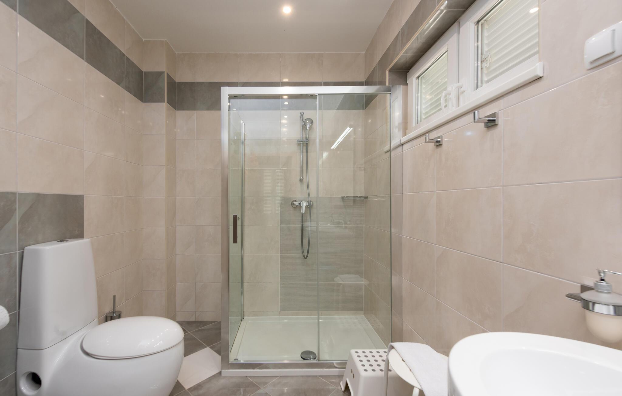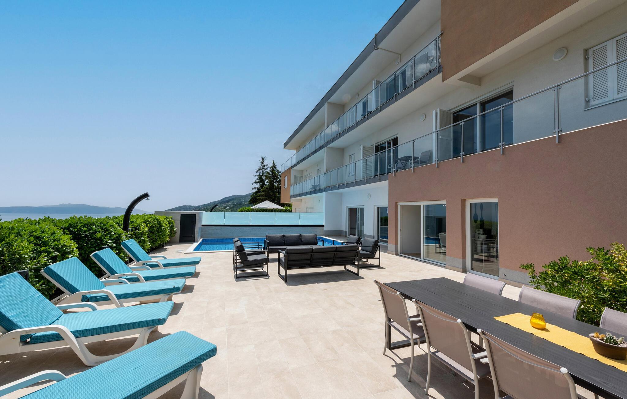 Dette eksklusive feriehuset ligger i svært fredelige omgivelser, omgitt av natur, i den lille landsbyen Sveti Petar på Opatija-rivieraen. Det ligger på en høyde over den berømte Iii-stranden, hvor det også er en stor båthavn. Fra alle rommene i huset kan du nyte en fortryllende panoramautsikt over det blå havet, hele Kvarnerbukta og øyene Krk og Cres. Feriehuset er det ideelle valget for en større familie eller to familier. I nærheten ligger Uka naturpark, som tilbyr merkede tur- og turstier. Utforsk det vakre landskapet og nyt freden og den friske luften.