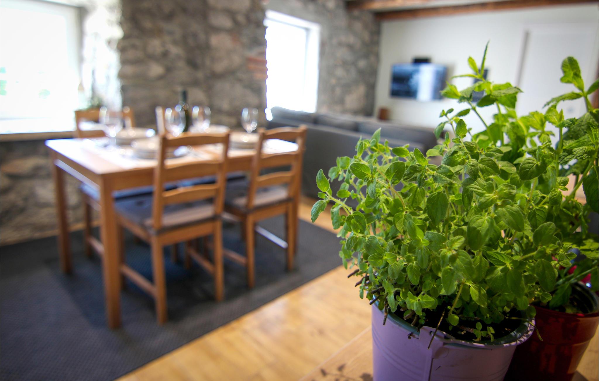 Her bor du omringet av natur i dette flotte feriehuset. De rustikke steinveggene er mesterlig kombinert med moderne elementer som innbyr til avslapping og komfort. Stuen innbyr til matlaging, lek og avslapping i sofaen, men terrassen kan også brukes som utendørs stue. Tilbring mange timer på den overbygde terrassen og la musklene bli massert i boblebadet mens du ser ut over landskapet.