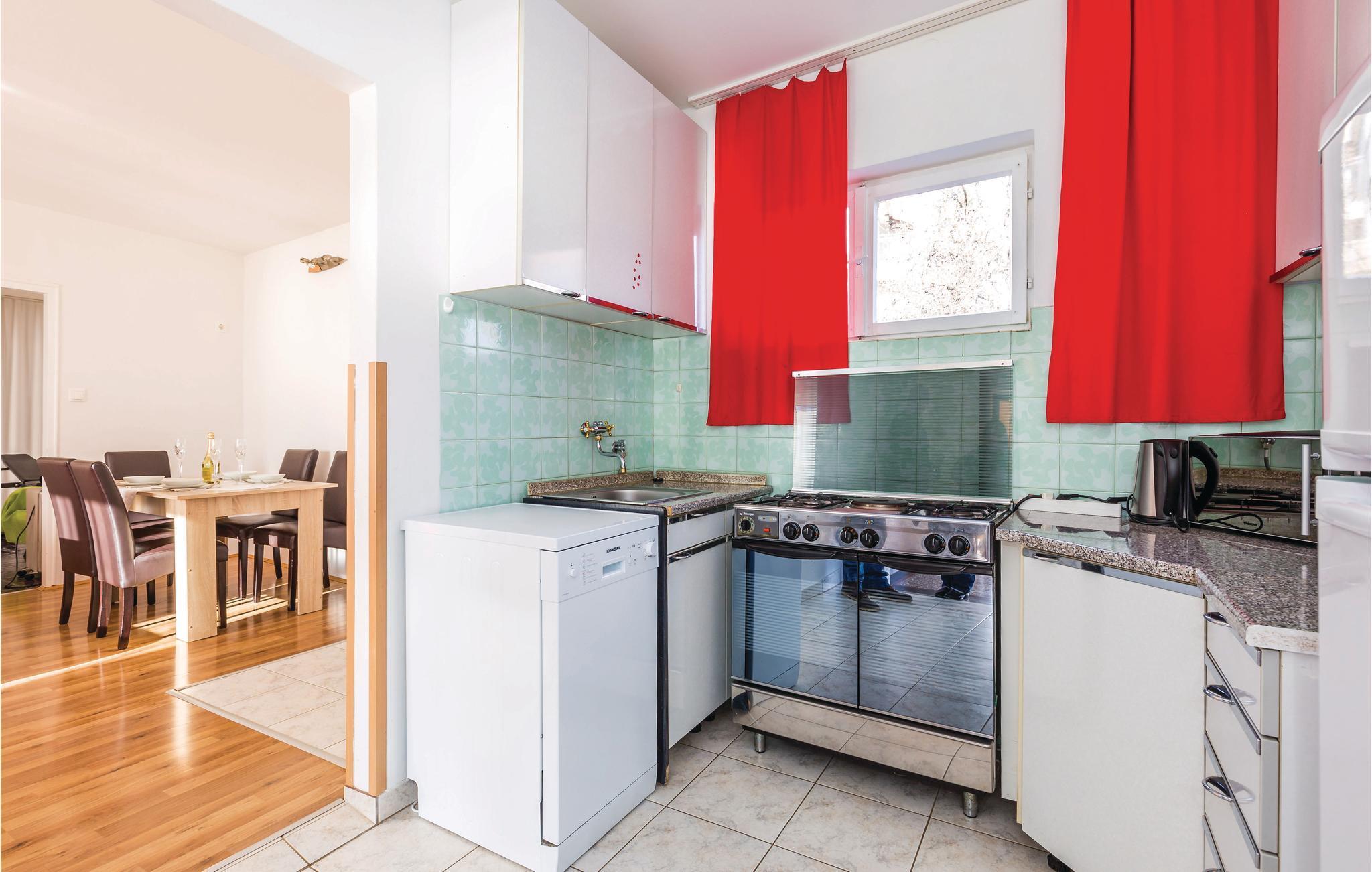 Ovenfor Kvarnerbukta, i nærheten av Opatija, finner du byen Pobri og denne tomannsboligen, som tilbyr familier og venner god komfort under oppholdet. I første etasje er det to separate ettromsleiligheter med direkte utgang til terrassen. En utvendig trapp fører til leiligheten i andre etasje med to soverom, kjøkken, stue og overbygd terrasse med delvis utsikt over havet. En overbygd pergola og en rustikk taverna er tilgjengelig for sosialt samvær. Du kan nyte en forfriskende dukkert i bassenget i den inngjerdede hagen. Det er tur- og sykkelstier i nærheten, og du kan nå de nærmeste strendene i Volosko, Opatija, Iii og den idylliske strandpromenaden, som er rundt 12 km lang, med bil.