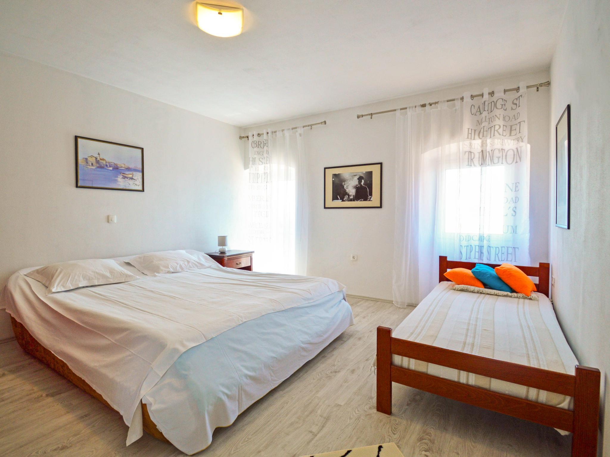 4-room apartment 120 m2, on the upper ground floor, east facing position. Living/dining room 25 m2 with cable TV (flat screen), air conditioning. Exit to the terrace. 1 room with 2 beds (90 cm, length 190 cm). 1 room with 1 french bed (180 cm, length 200 cm). 1 room with 1 bed (90 cm, length 190 cm), 1 double bed (2 x 110 cm, length 200 cm), shower/WC. Open kitchen (oven, 4 ceramic glass hob hotplates, freezer, electric coffee machine). Shower/WC. No heating option. Beautiful panoramic view of the sea. Facilities: washing machine, baby cot. Internet (WiFi, free). Please note: maximum 2 pets/ dogs allowed. Private entrance.