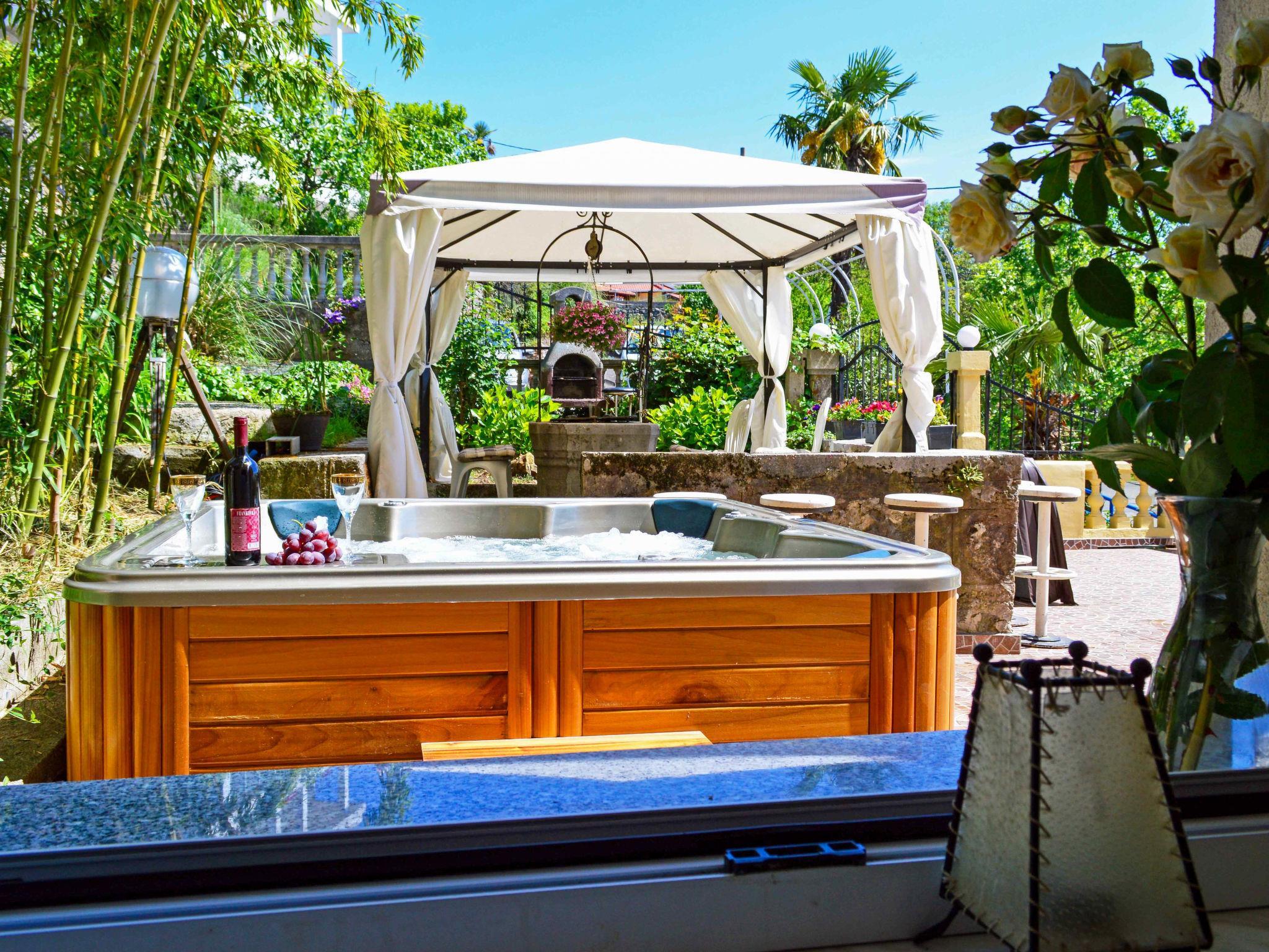 Bregi 5 km from Opatija: 2-family house "Andrea". In a sunny, elevated position, 5 km from the sea. Private: property 100 m2 (fenced). Hot tub, arbour, terrace (70 m2), garden furniture, barbecue. In the house: internet access. Parking at the house on the premises. Shop 20 m, restaurant 100 m, bus stop 25 m, pebble beach 5 km, concrete beach 5 km. On the ground floor: shop.