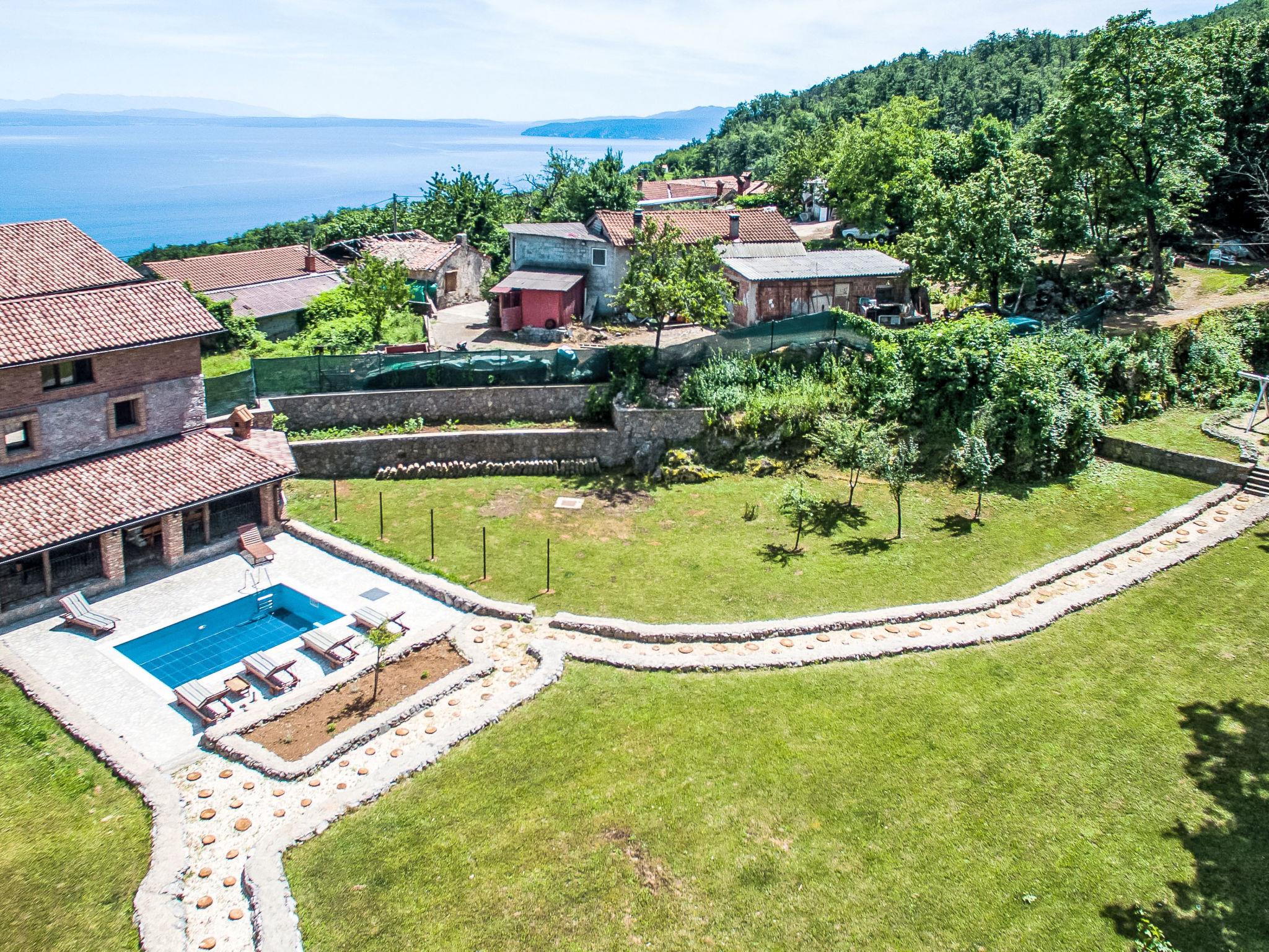 Single-family house "Natura", 2 storeys. Above Icici, in the hamlet Puhari 9 km from the centre of Lovran, 8 km from the centre of Icici, 9 km from the centre of Opatija, 8 km from the sea. Private: property 4'200 m2, lawn and trees, swimming pool (24 m2, depth 120 cm, seasonal availability: 02.May. - 07.Oct.). Outdoor shower, terrace (40 m2), garden furniture, barbecue, pool maintenance by the owner/gardener. In the house: internet access, billiard table, trampoline, washing machine. Parking (for 4 cars) at the house on the premises. Shop 4 km, supermarket 8 km, bus stop 1 km, pebble beach 8 km. The owner does not accept any youth groups.