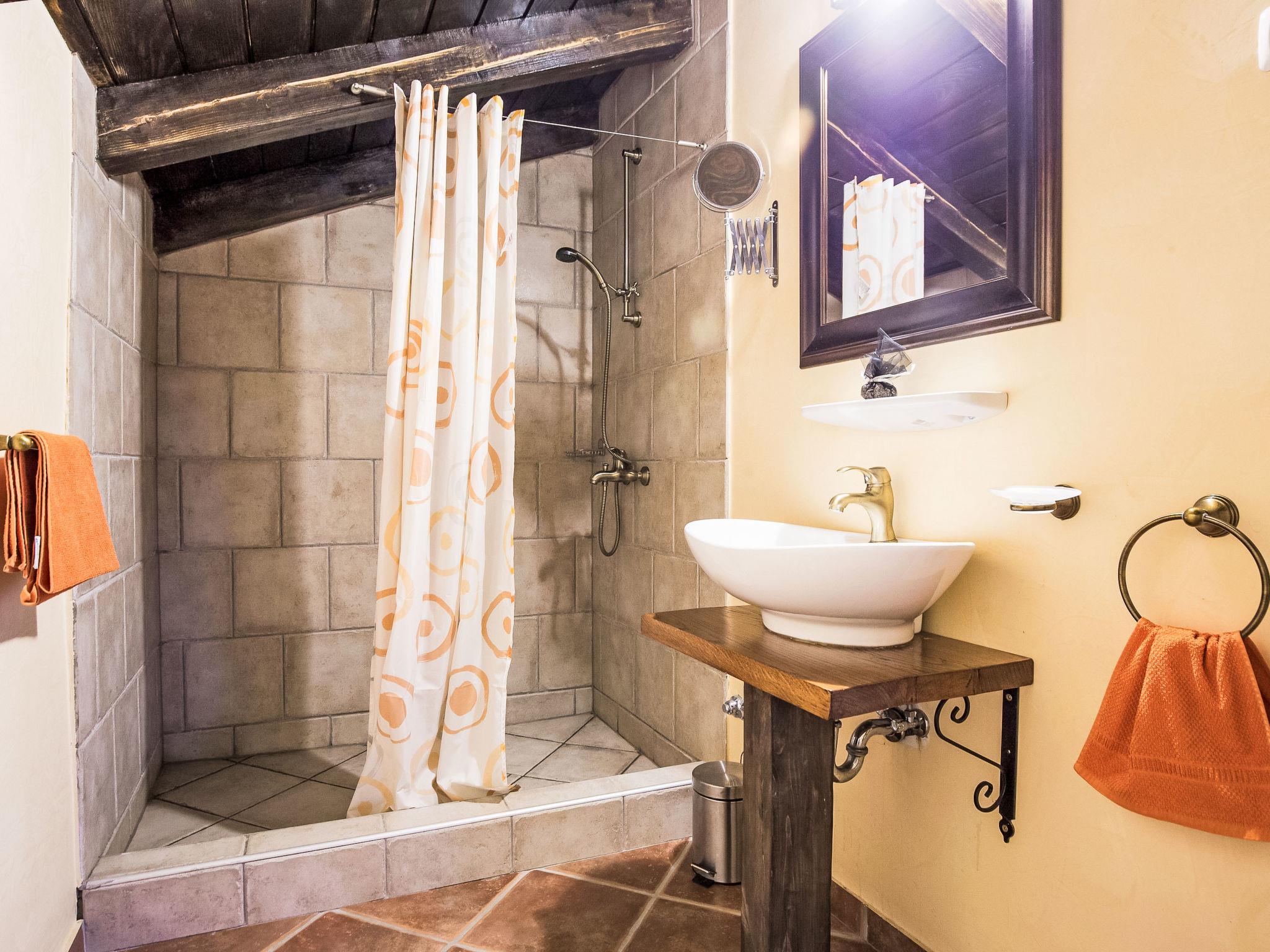 5-room house 200 m2 on 2 levels. Living/dining room with open-hearth fireplace, satellite TV and air conditioning. Exit to the balcony. 1 room with 1 double bed, shower/WC and air conditioning. Open kitchen (4 hot plates, dishwasher, freezer, electric coffee machine). Sep. WC. Upper floor: 1 room with 1 double bed, shower/WC and air conditioning. 1 room with 1 french bed (180 cm, length 200 cm), shower/WC and air conditioning. 1 room with 2 beds and air conditioning. Shower/WC. Balcony. Terrace furniture, deck chairs. Distant view of the sea. Facilities: safe, iron. Internet (WiFi, free). Please note: non-smoking house. Maximum 1 pet/ dog allowed.