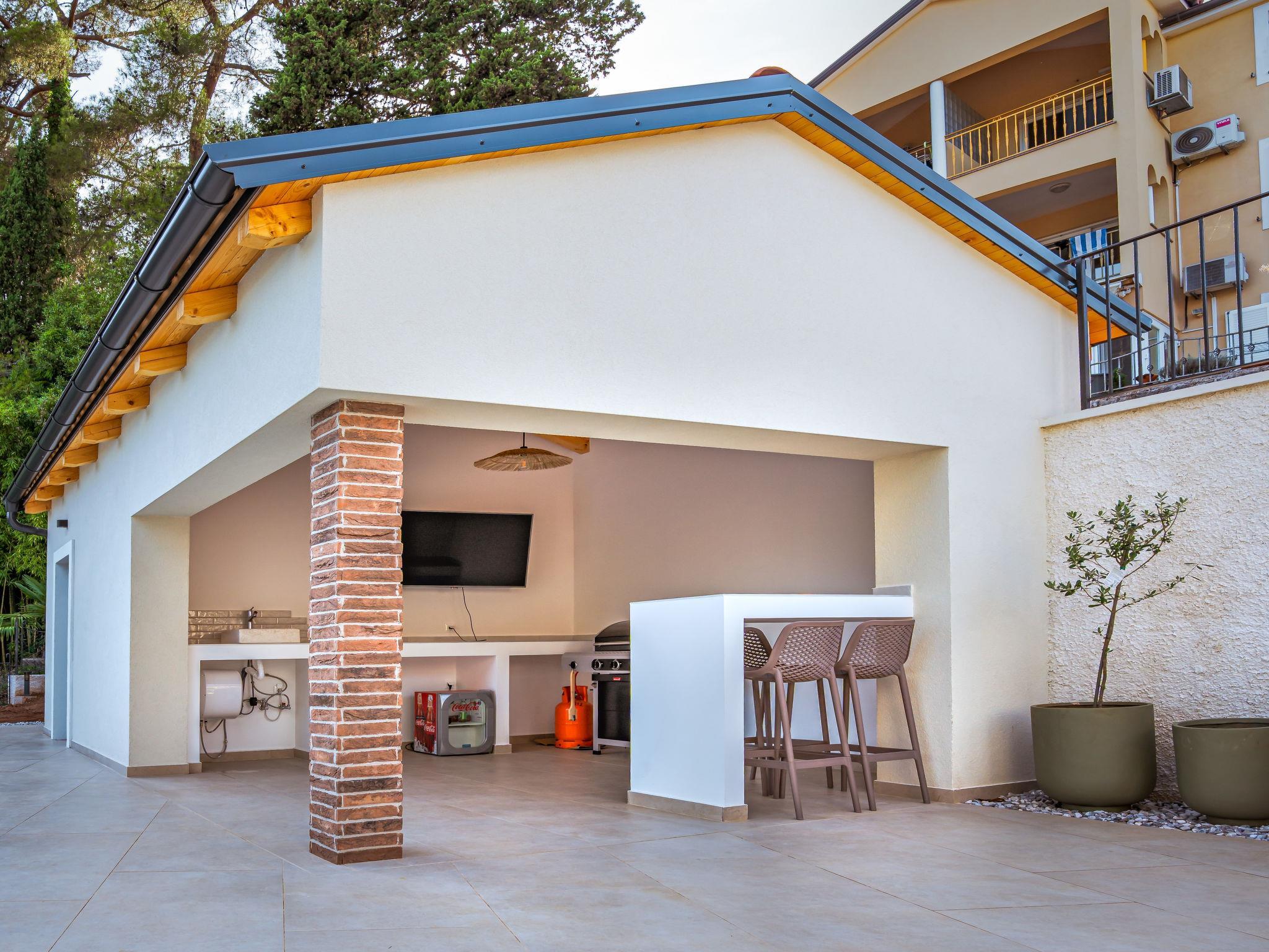 Ika 5 km from Opatija: Villa "Eva", 2 storeys, renovated in 2025. 1 km from the centre of Ika, 2 km from the centre of Lovran, in a quiet, sunny, elevated position, 900 m from the sea, 1 km from the beach. Private: property 809 m2, wildlife garden and flowers, swimming pool angular (6 x 4 m, depth 170 cm, seasonal availability: 01.May. - 15.Oct.) with internal staircase and salt-electrolysis pool-cleaning system. Outdoor shower, pool house with cooking stove, pool maintenance by the owner/gardener. In the house: internet access, washing machine. Parking (for 3 cars) at the house on the premises. Shop 1 km, supermarket 1 km, restaurant 1.1 km, bar 1 km, bus stop 900 m, pebble beach 1 km, public bathing area 1 km, concrete beach 1 km. Please note: suitable for families. Groups of teenagers on request only.