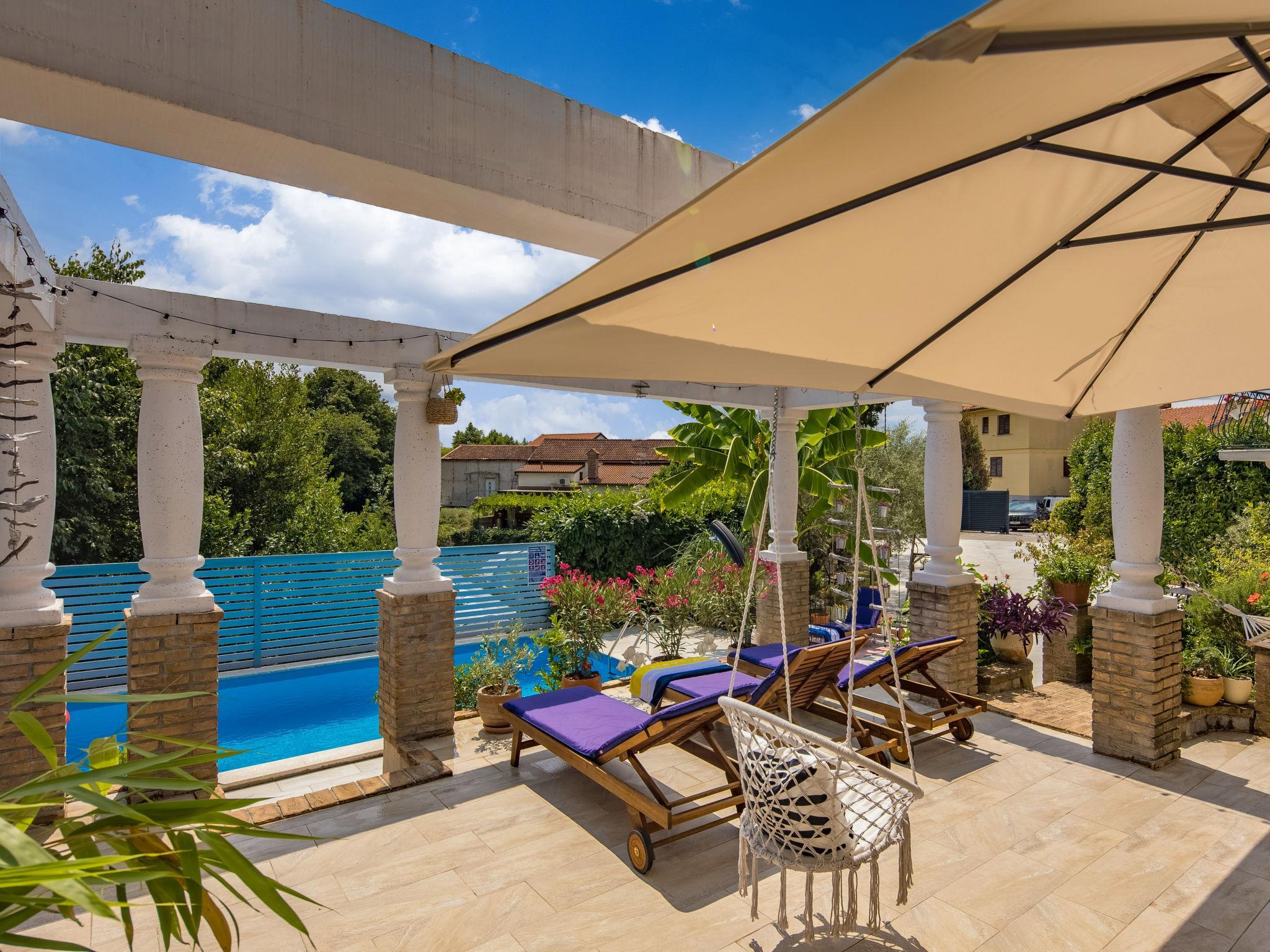 Semi-detached house "Nika", 2 storeys. 5 km from the centre of Opatija, 2 km from the centre of Kastav, 1 km from the centre of Matulji, in a quiet, sunny position, 4 km from the sea, 4 km from the beach, in the countryside. Private: property 950 m2 (fenced) with beautiful garden to relax, swimming pool (7 x 4 m, depth 150 cm, seasonal availability: 01.May. - 01.Oct.) with internal staircase and salt-electrolysis pool-cleaning system. Unconventional pool shape. Outdoor shower, terrace (50 m2), garden furniture, barbecue. In the house: internet access, washing machine, tumble dryer. Parking (for 2 cars) at the house on the premises. Supermarket 600 m, restaurant 500 m, bus stop 650 m, pebble beach 4 km, public bathing area 4 km, concrete beach 4 km. Part of the house is closed and unoccupied.