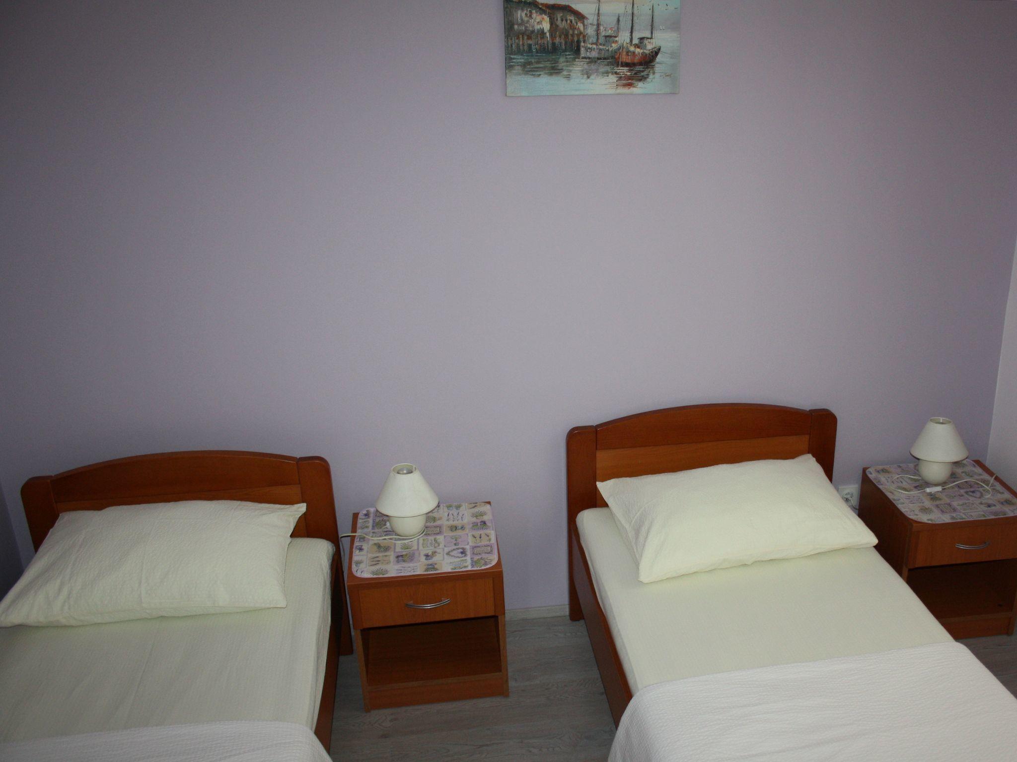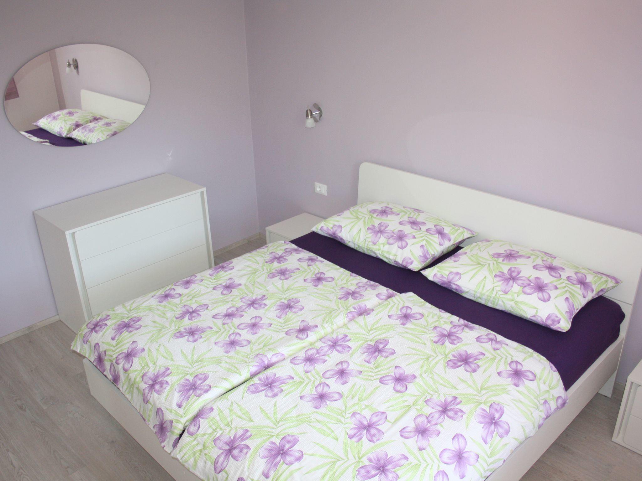 Apartments Vesna and Andrea both situated in a family house, only 5 minutes drive from the city centre and the beach. The green surroundings, sea view, quiet and peaceful place, suitable for couples, solo adventurers, business travellers, and families (with kids). All together we can accommodate up to nine people.A large and spacious air conditioned 80 m2 apartment, consist of 2 bedrooms, one bathroom and a toilette, dining and a seating area, balcony, and a beautiful taverna. The apartment is situated in a family house, only 5 minutes drive from the city centre and the beach, far away from the city crowd and rush! The apartment is fully furnished and equipped.