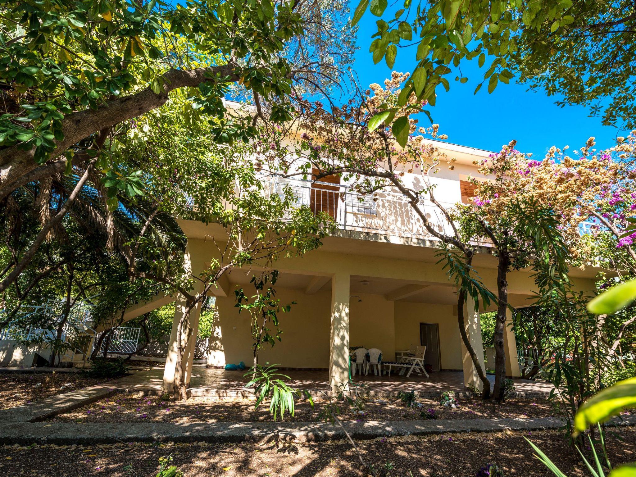 Inside, the house spans 100 m2 and features modern furnishings designed for your comfort and convenience. It includes a living room with a double sofa bed, satellite TV, a DVD unit, and air conditioning ensuring a cozy environment for relaxation. Each of the three double bedrooms is equipped with built-in air conditioning units, and two have direct access to a balcony, offering private outdoor space. The kitchen is fully equipped with a 4-hot plate oven, ceramic glass hub, microwave oven, refrigerator, and an extra complete mini-kitchen block for all your culinary needs. The bathroom includes a shower, bidet, and toilette, with a separate toilette/washbasin, providing ample facilities for all guests.