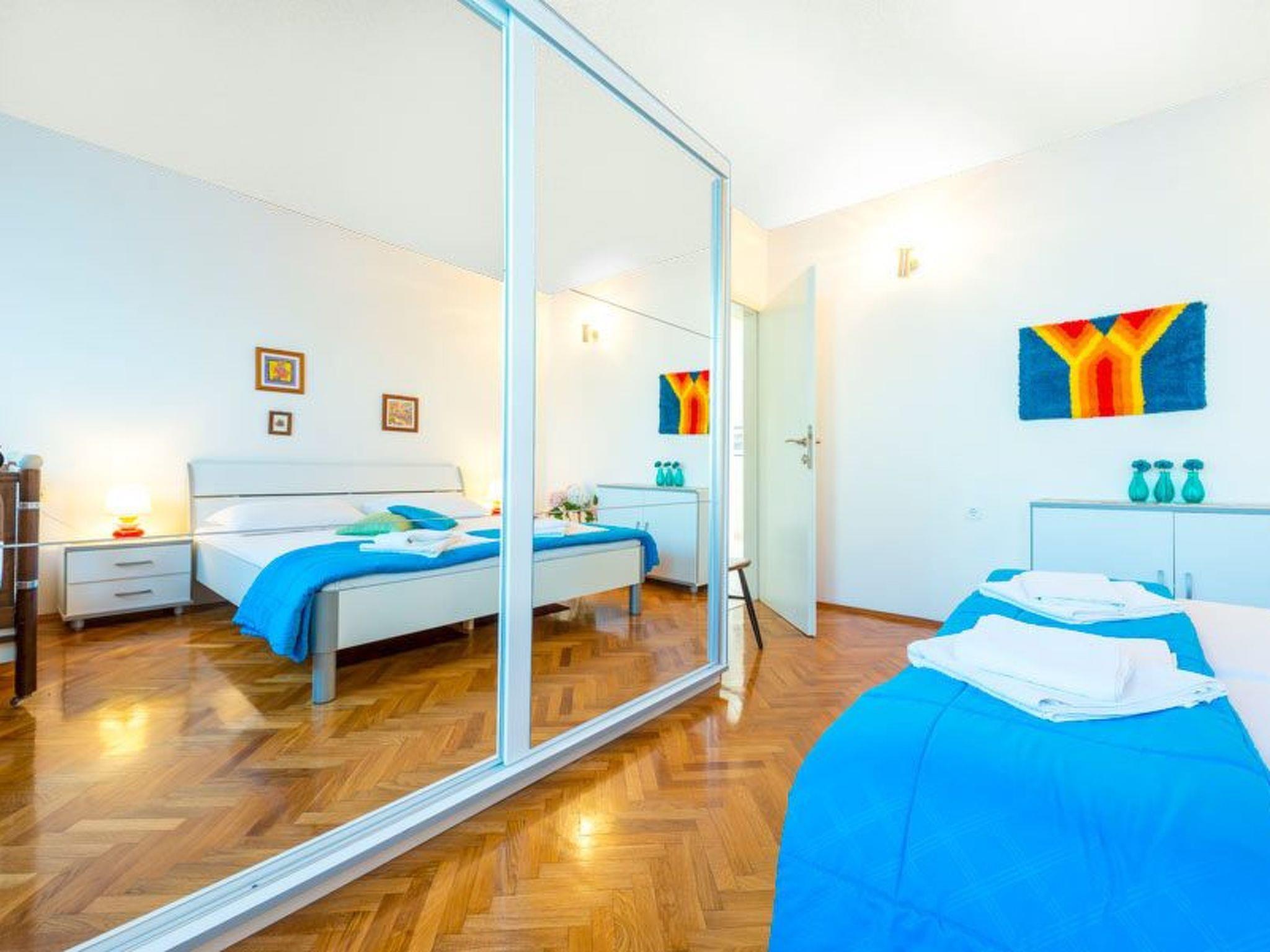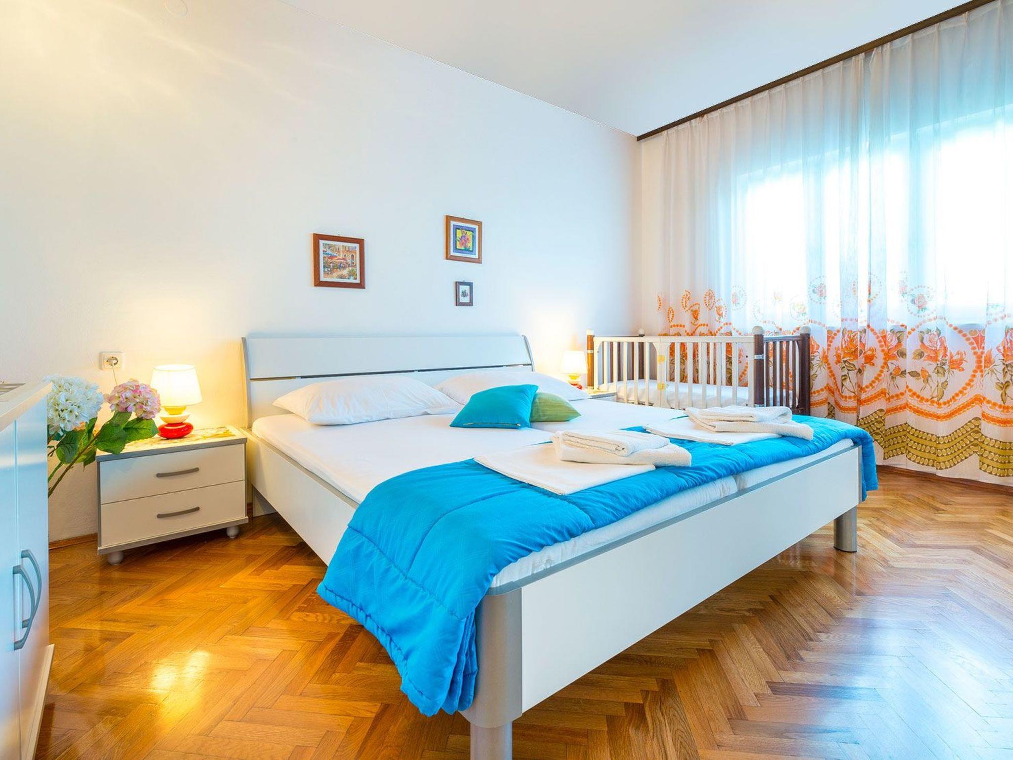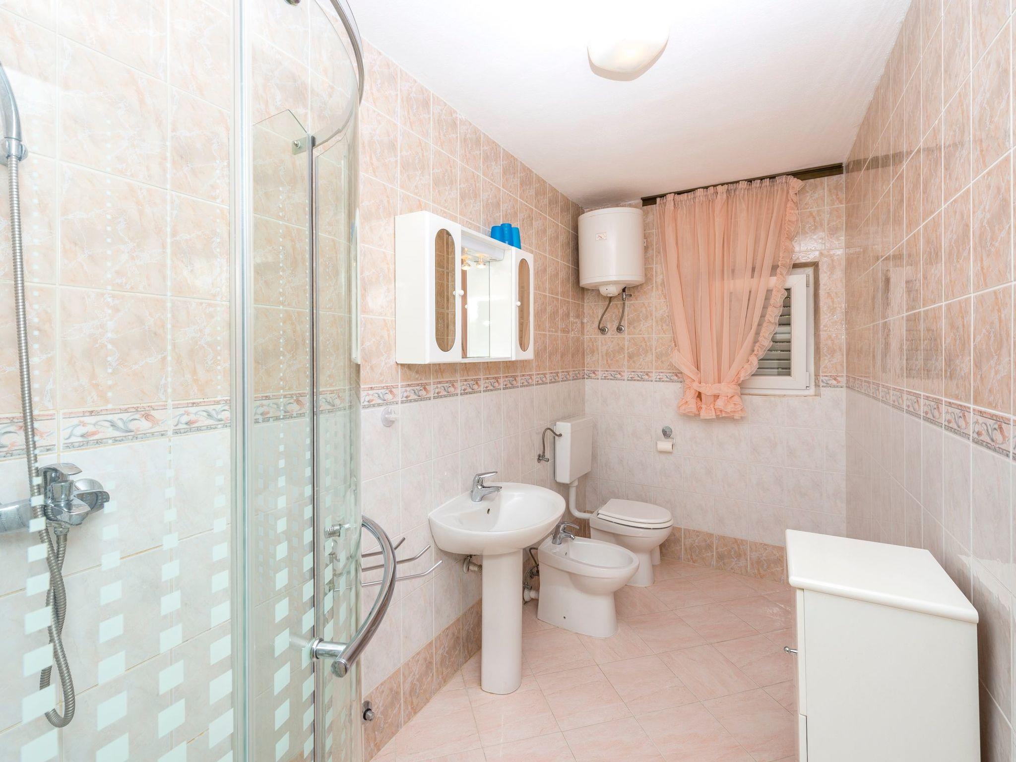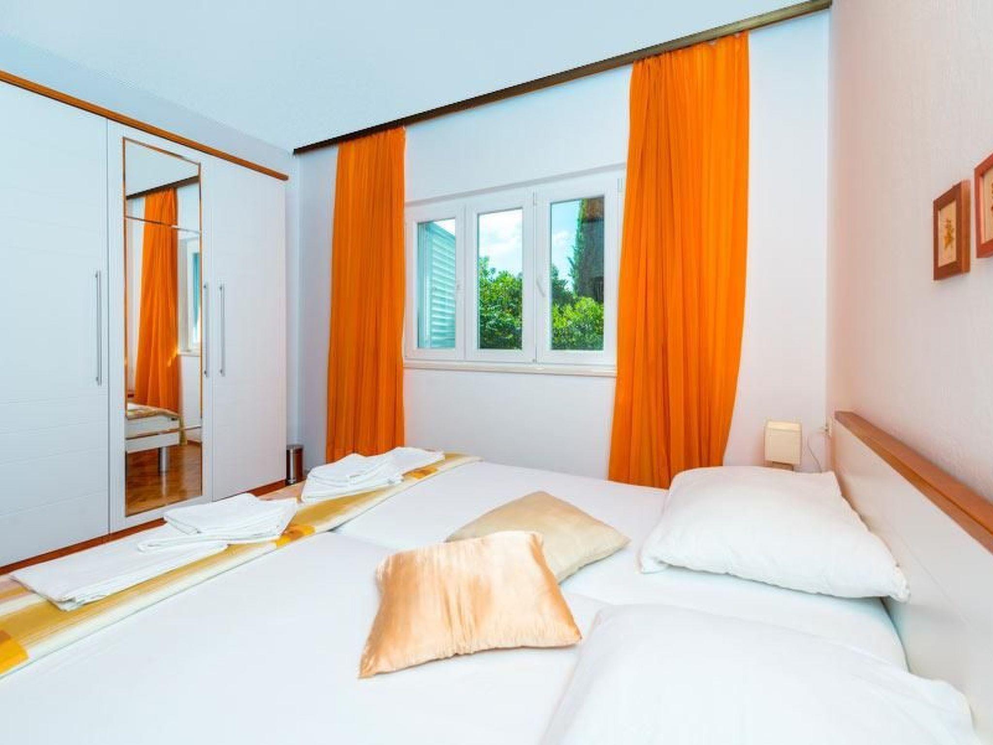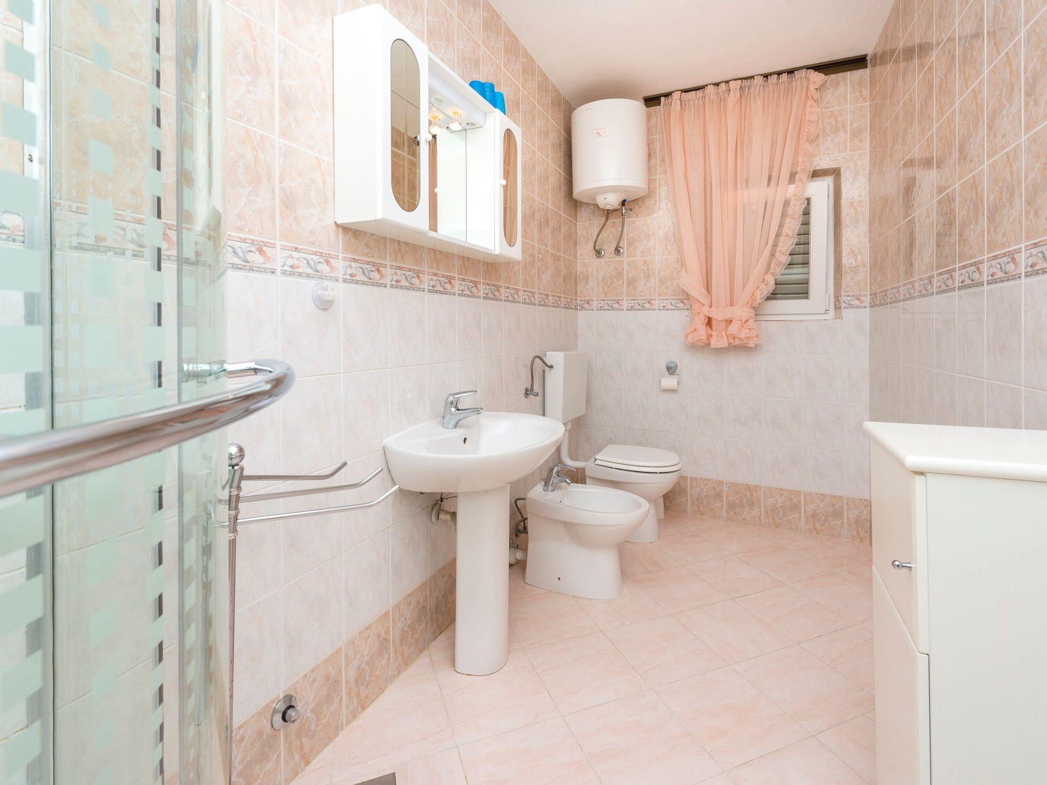 The outdoor area of the property is just as inviting, with 500 m2 of private, fenced grounds featuring trees and a natural garden. Just a stone's throw away, at 30 meters, is a pebble beach for those who love to swim or sunbathe, while the largest sandy beach "Trstenica" is only 200 meters away. This beach stretches over 1000 meters and offers a perfect place for a day under the sun. With two parking spaces available—one in the garage and one in front of it—guests have the convenience of secure parking right at the property.