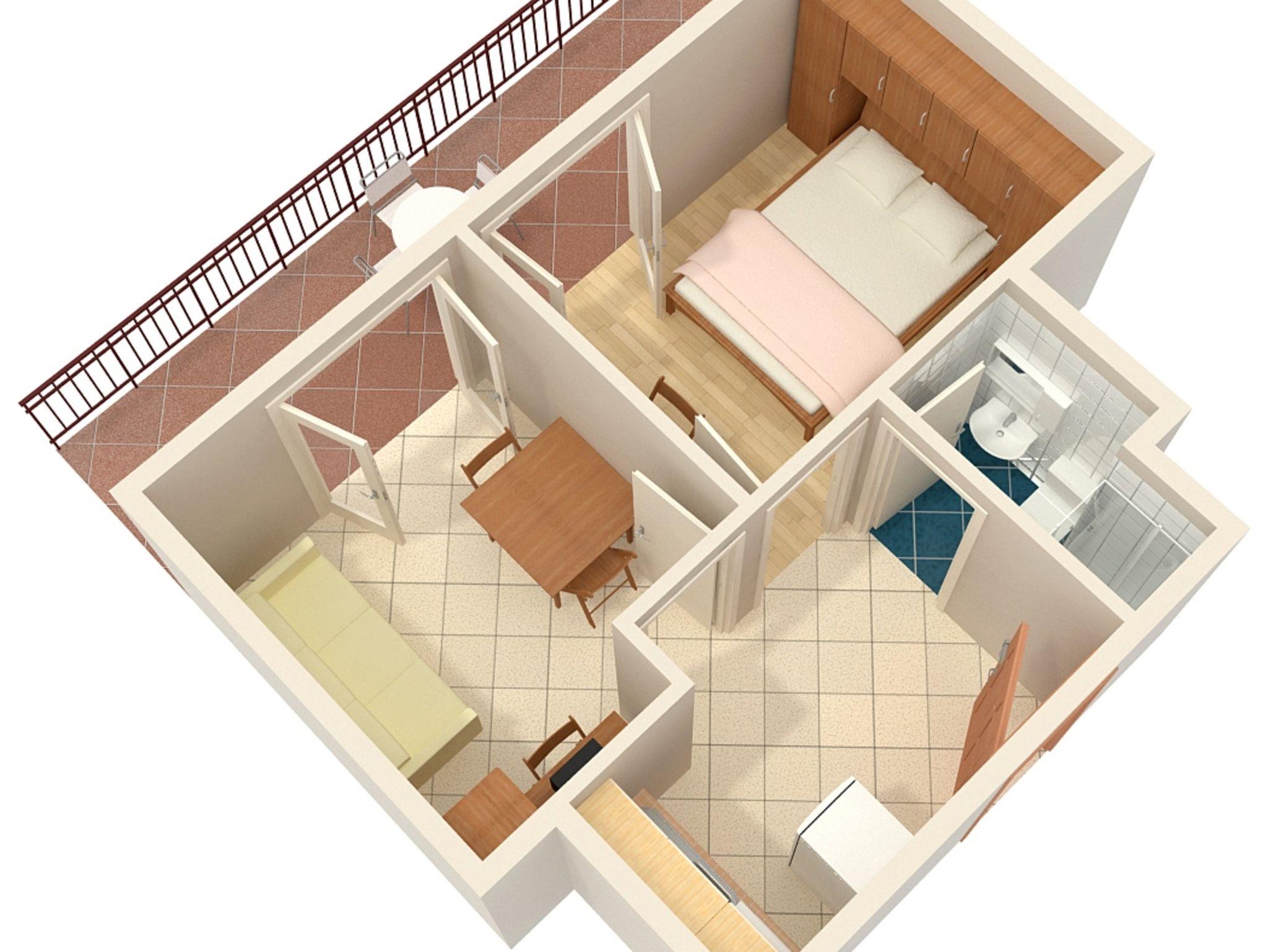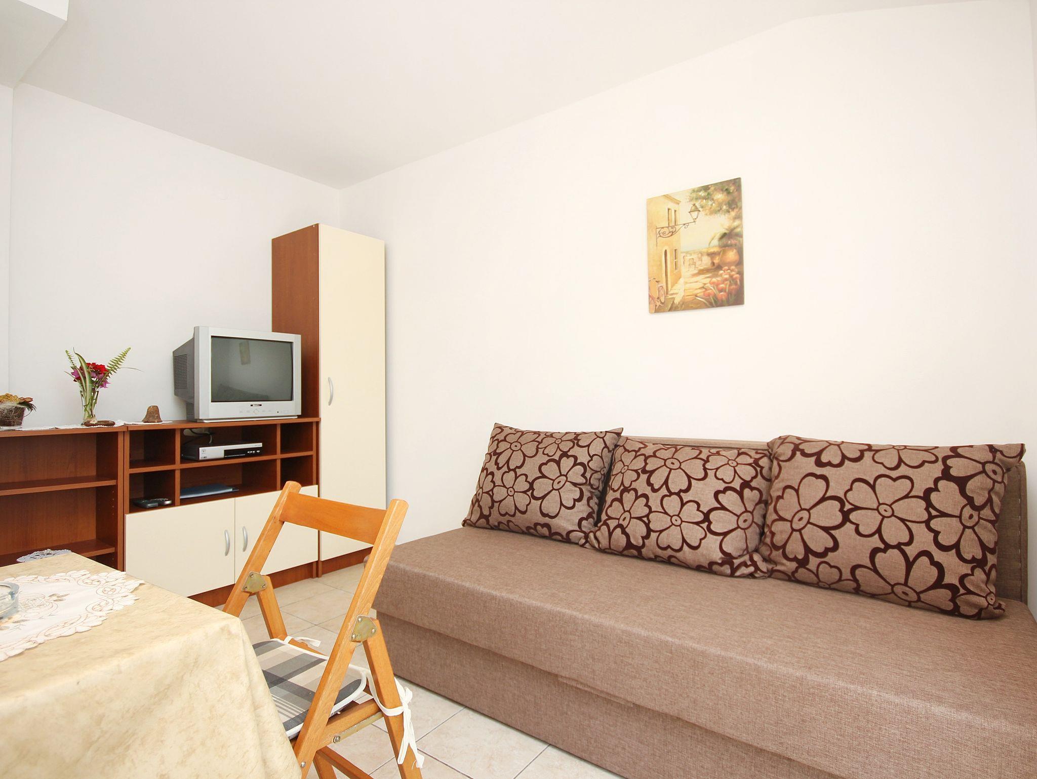 Ferienwohnung bietet Platz für 3 Gäste. Die Betten sind in Schlafzimmern, die es 1 gibt, und in Esszimmer, innerhalb einer Gesamtfläche von 28m2, angeordnet. Die Gäste haben einen eigenen Balkon zur Verfügung, auf der sie in warmen Sommernächten genießen können. Das Apartment bietet Meerblick. Es ist erlaubt, Speisen auf dem Gemeinschafts-Grill vorzubereiten. IM PREIS INBEGRIFFEN: Kurtaxe, Endreinigung, Klimatisierung, Parkplatz, Internet, Bügeleisen, Bügelbrett, Föhn. VERBINDLICHE ZUSÄTZLICHE KOSTEN: Aufzahlung für Kurzaufenthalte (prozentualer Zuschlag pro Nächtigungsanzahl: 30% - 1, 20% - 2, 10% - 3). Die Verfügbarkeit zusätzlicher Dienstleistungen in Ihrem reservierten Termin und die Preise derselben (falls nicht aufgeführt) müssen im Voraus überprüft werden. Zusätzliche Dienstleistungen die in der Zahlungsaufforderung nicht aufgeführt sind werden direkt beim Vermieter bezahlt, angenommen der Gast nutzt auch diese.