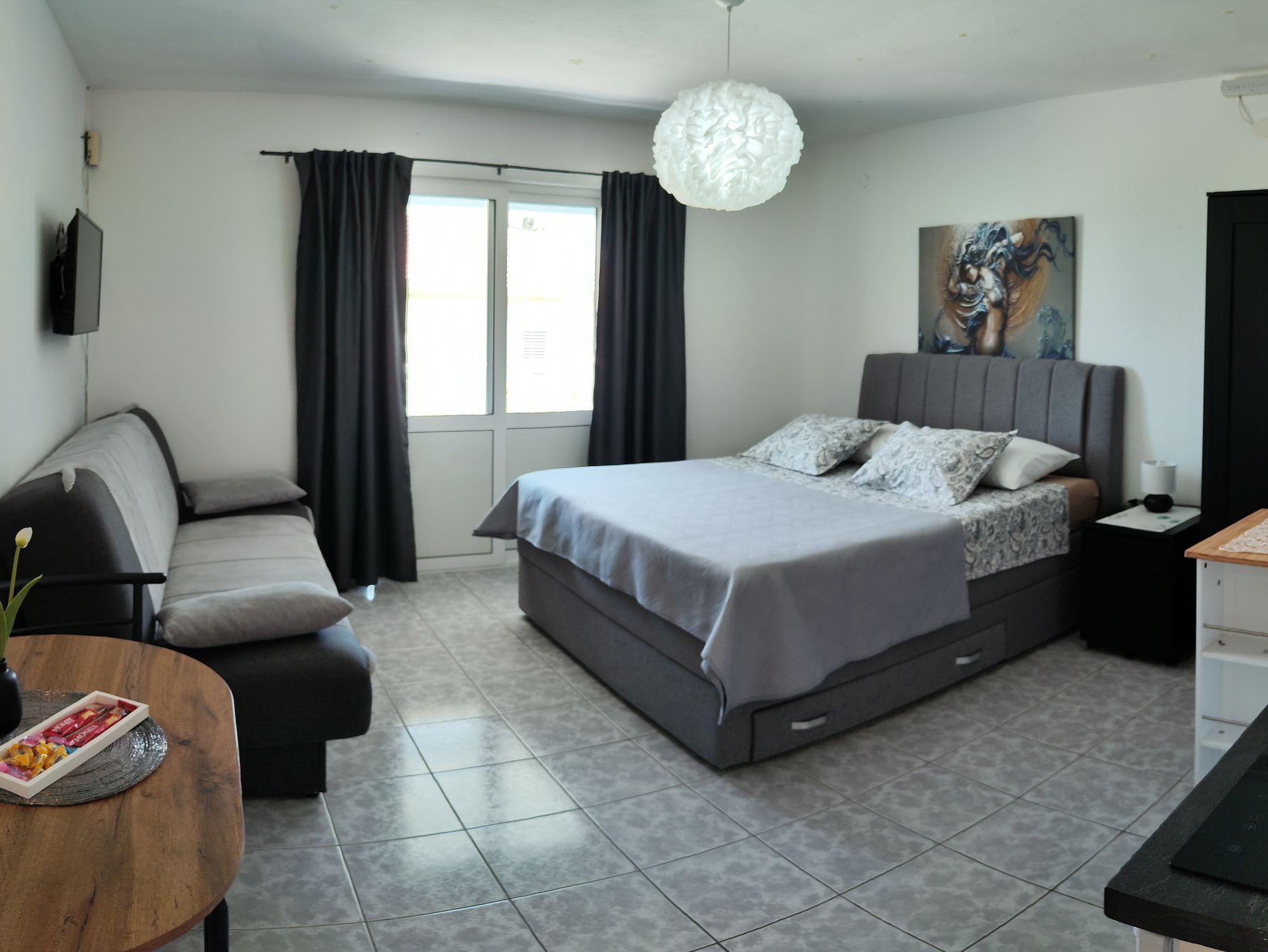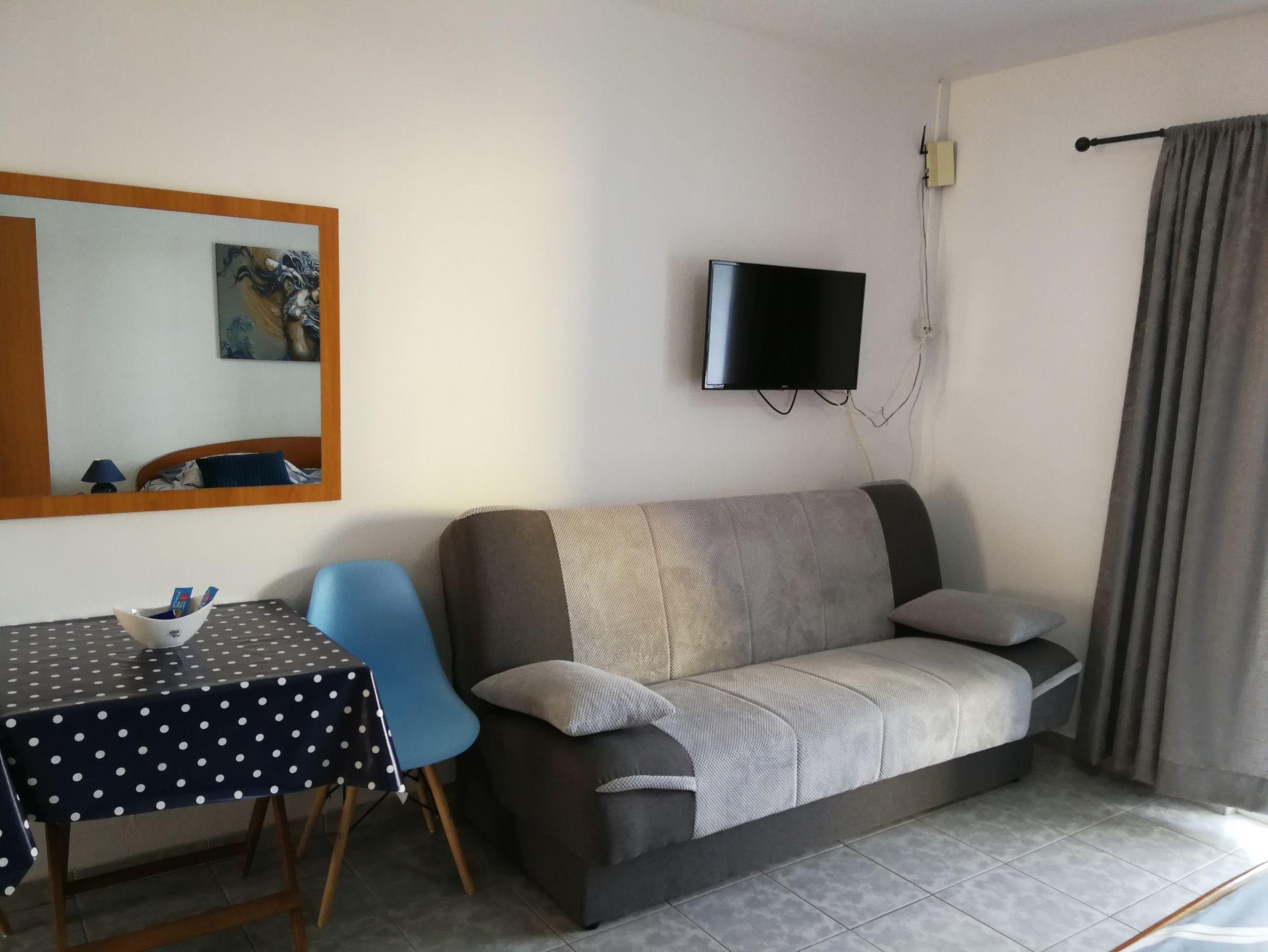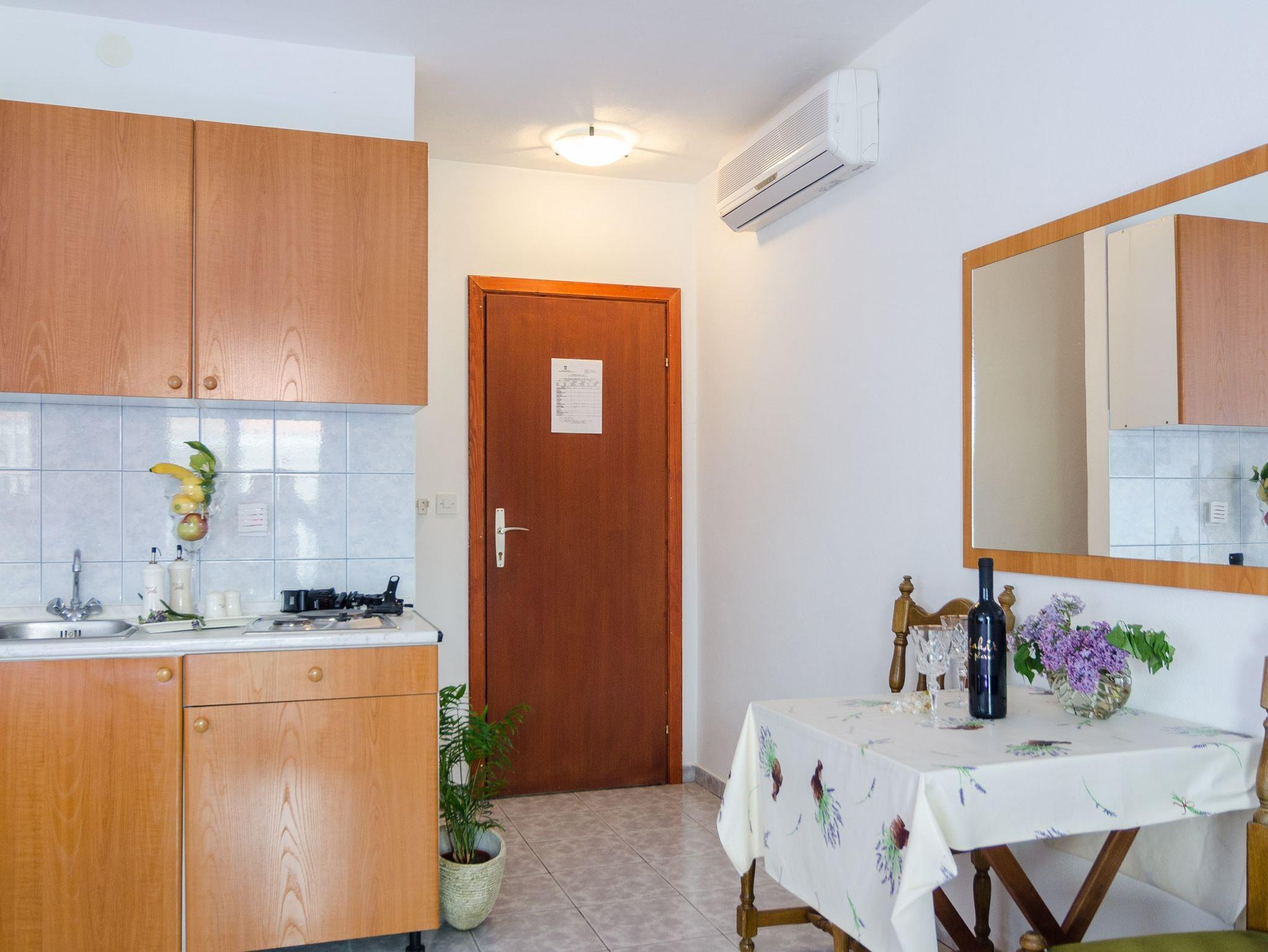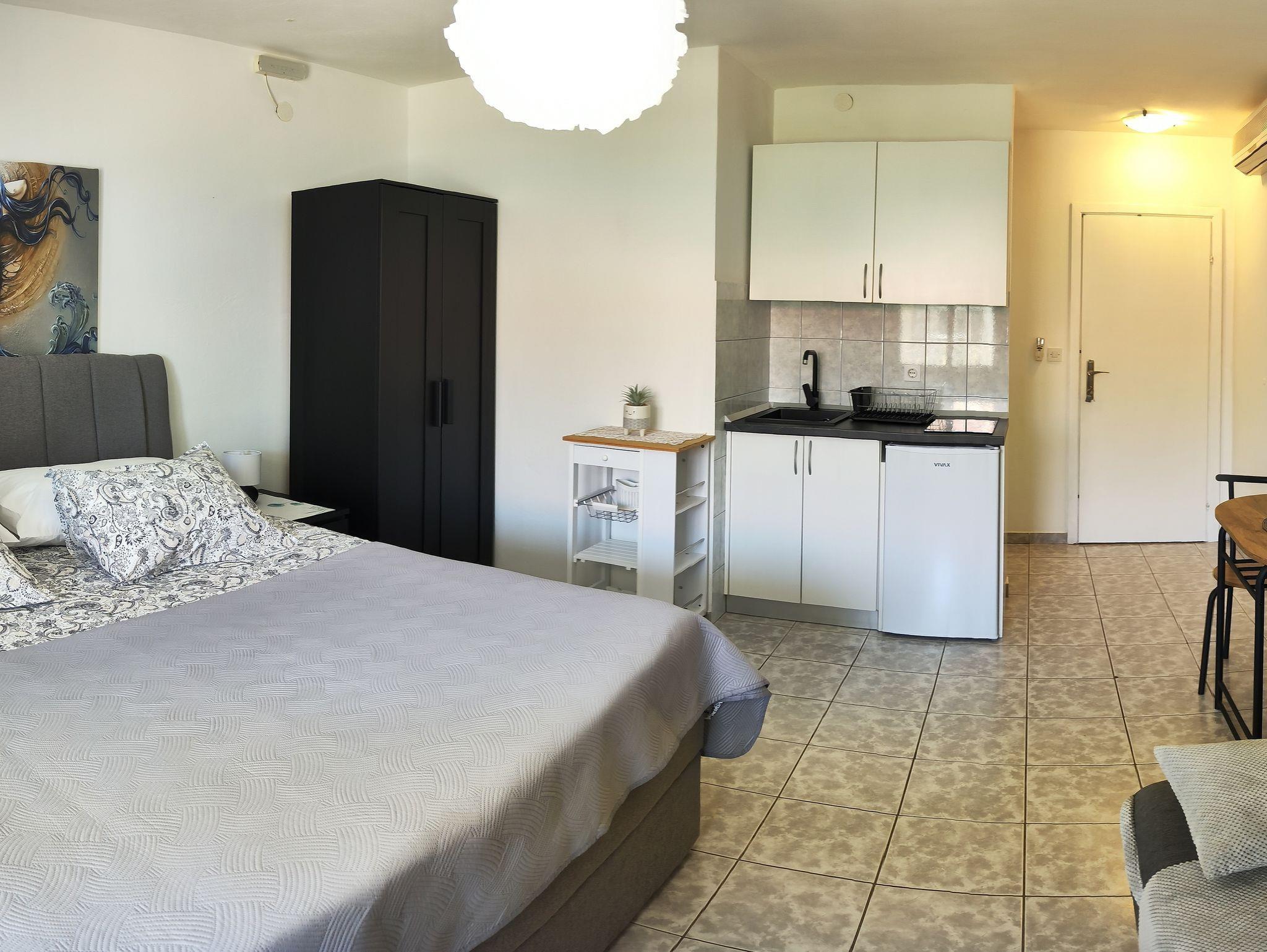Studio bietet Platz für 2 Gäste. Die Betten sind in Schlafzimmern, die es 1 gibt, innerhalb einer Gesamtfläche von 22m2, angeordnet. Die Gäste haben eine eigene Terrasse zur Verfügung, auf der sie in warmen Sommernächten genießen können. Das Studio-Apartment bietet Meerblick. Es ist erlaubt, Speisen auf dem Gemeinschafts-Grill vorzubereiten. IM PREIS INBEGRIFFEN: Kurtaxe, Endreinigung, Klimatisierung, Parkplatz, Garage, Internet, Wäschewaschen, Bügeleisen, Föhn. VERBINDLICHE ZUSÄTZLICHE KOSTEN: Aufzahlung für Kurzaufenthalte (prozentualer Zuschlag pro Nächtigungsanzahl: 30% - 1, 20% - 2, 10% - 3). Die Verfügbarkeit zusätzlicher Dienstleistungen in Ihrem reservierten Termin und die Preise derselben (falls nicht aufgeführt) müssen im Voraus überprüft werden. Zusätzliche Dienstleistungen die in der Zahlungsaufforderung nicht aufgeführt sind werden direkt beim Vermieter bezahlt, angenommen der Gast nutzt auch diese.