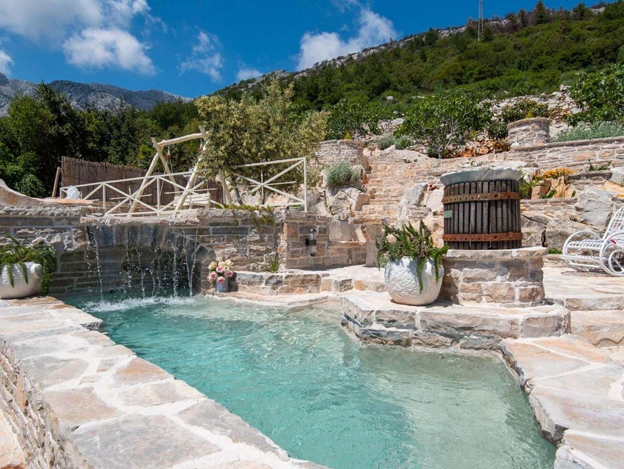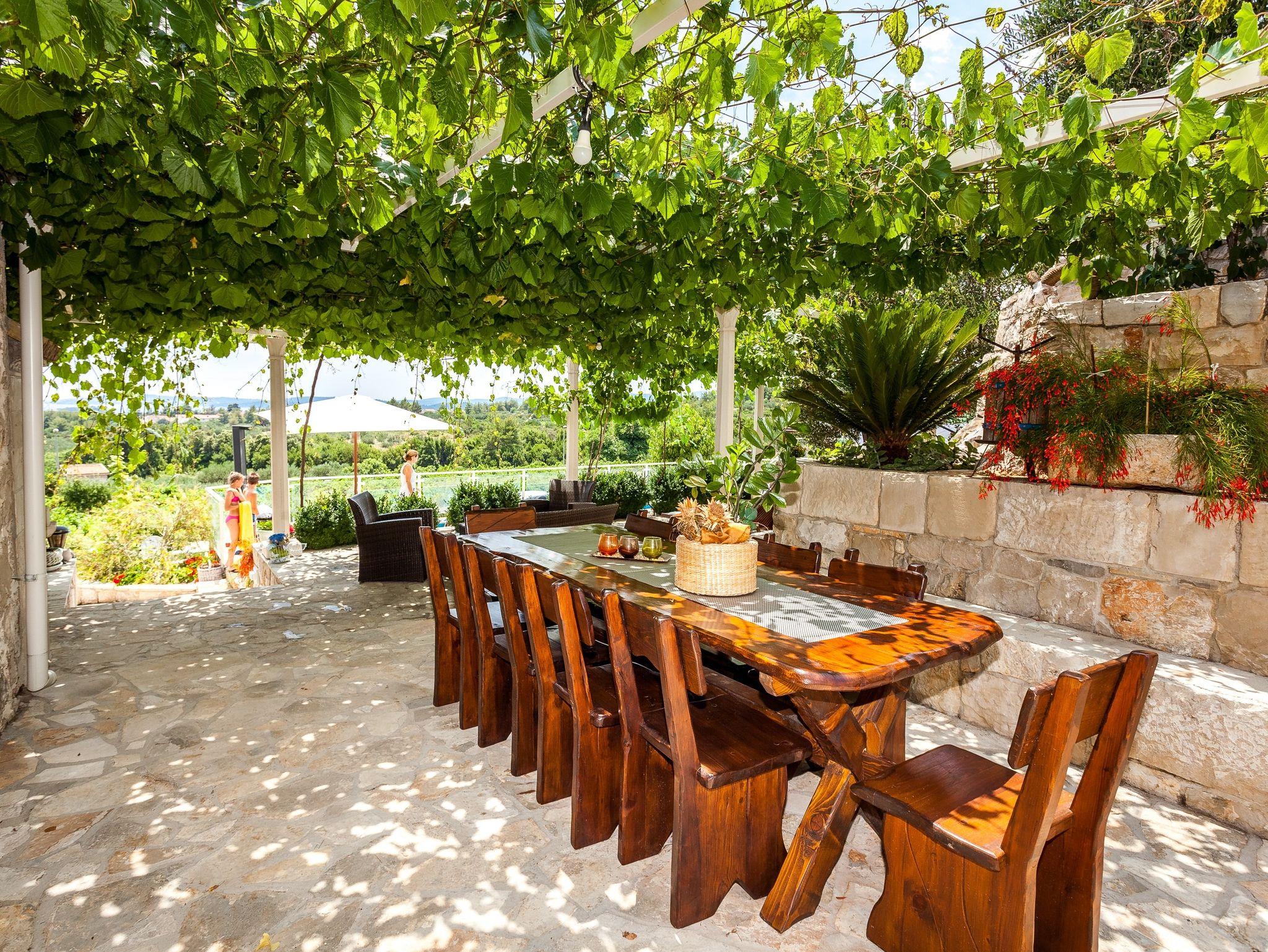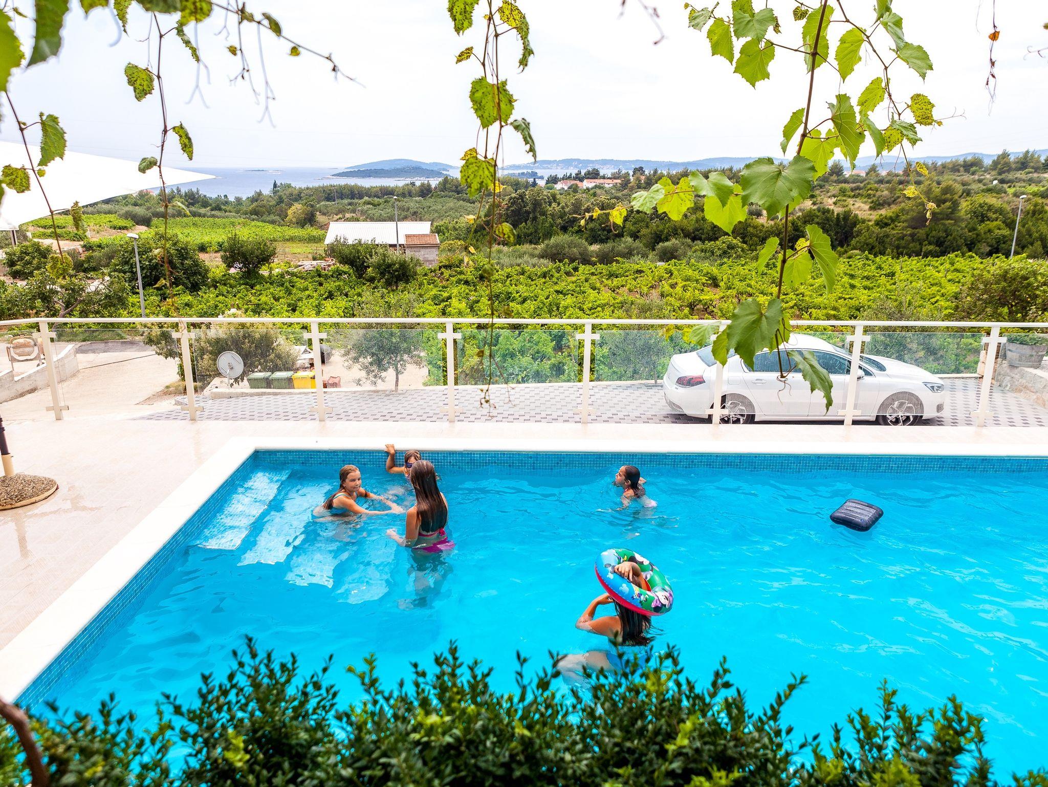 Hof (50m2, Kinderbereich, Sitzbereich), Parkplatz (Anzahl der Parkplätze: 6, Entfernung vom Objekt: im Hof), Pool: gemeinsam, Dimensionen: 10m x 4m x 1.6m, Wassertyp: Süßwasser, WiFi Internet, Föhn, Bügeleisen, Bügelbrett, Sonnenschirm, Liegestühle, Kinderbett