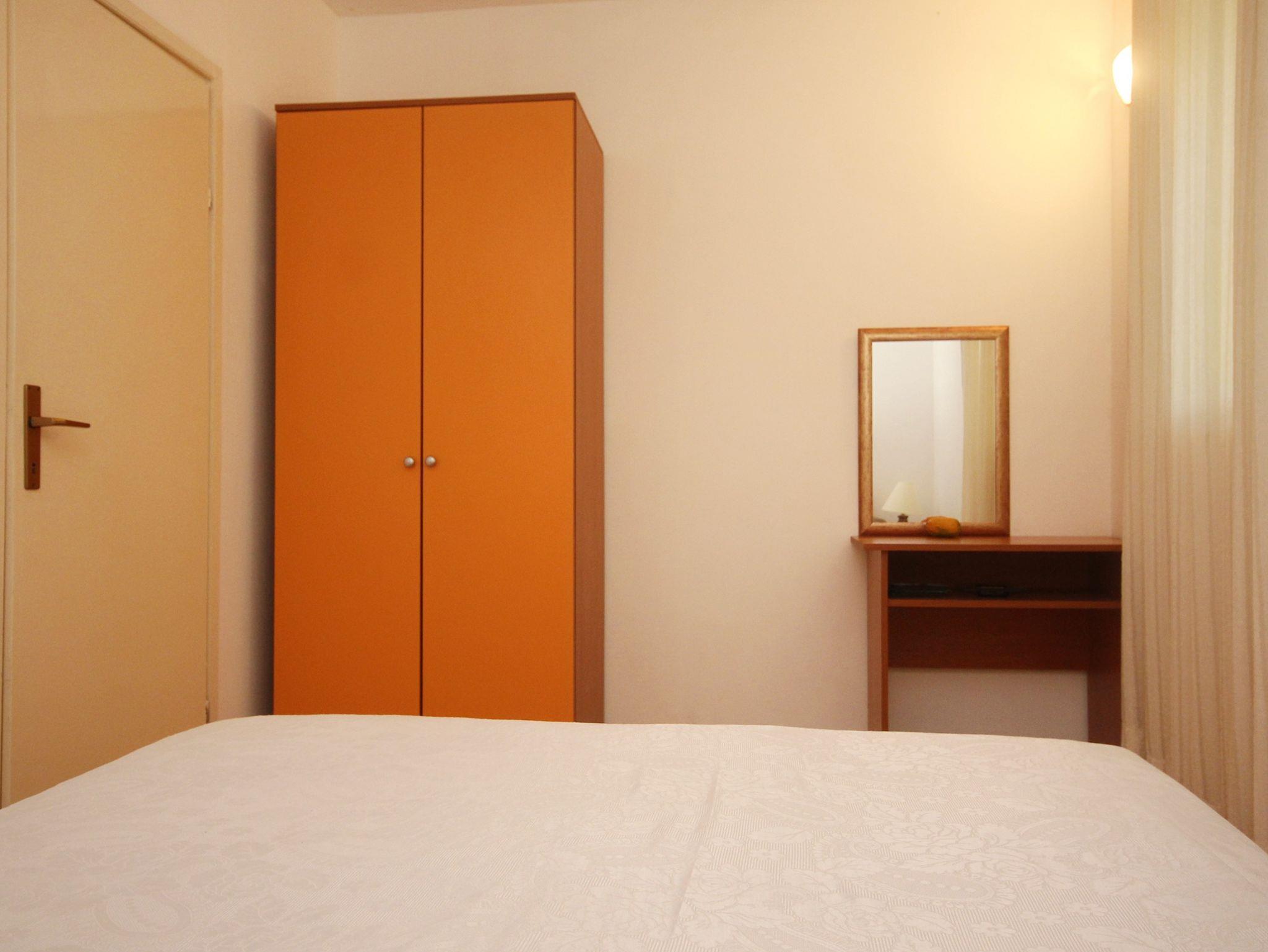 Ferienwohnung bietet Platz für 3 Gäste. Die Betten sind in Schlafzimmern, die es 1 gibt, und in Esszimmer, innerhalb einer Gesamtfläche von 24m2, angeordnet. Die Gäste haben eine eigene Terrasse zur Verfügung, auf der sie in warmen Sommernächten genießen können. Es ist erlaubt, Speisen auf dem Gemeinschafts-Grill vorzubereiten. In der Unterkunftseinheit besteht die Möglichkeit des Mitbringens von Haustieren gegen Aufpreis. IM PREIS INBEGRIFFEN: Kurtaxe, Endreinigung, Klimatisierung, Parkplatz, Internet, Kinderbett, Bügeleisen, Bügelbrett, Föhn. VERBINDLICHE ZUSÄTZLICHE KOSTEN: Aufzahlung für Kurzaufenthalte (prozentualer Zuschlag pro Nächtigungsanzahl: 30% - 1, 20% - 2, 10% - 3). UNVERBINDLICHE ZUSÄTZLICHE KOSTEN: Haustiere (5,00 € pro Nacht). Die Verfügbarkeit zusätzlicher Dienstleistungen in Ihrem reservierten Termin und die Preise derselben (falls nicht aufgeführt) müssen im Voraus überprüft werden. Zusätzliche Dienstleistungen die in der Zahlungsaufforderung nicht aufgeführt sind werden direkt beim Vermieter bezahlt, angenommen der Gast nutzt auch diese.