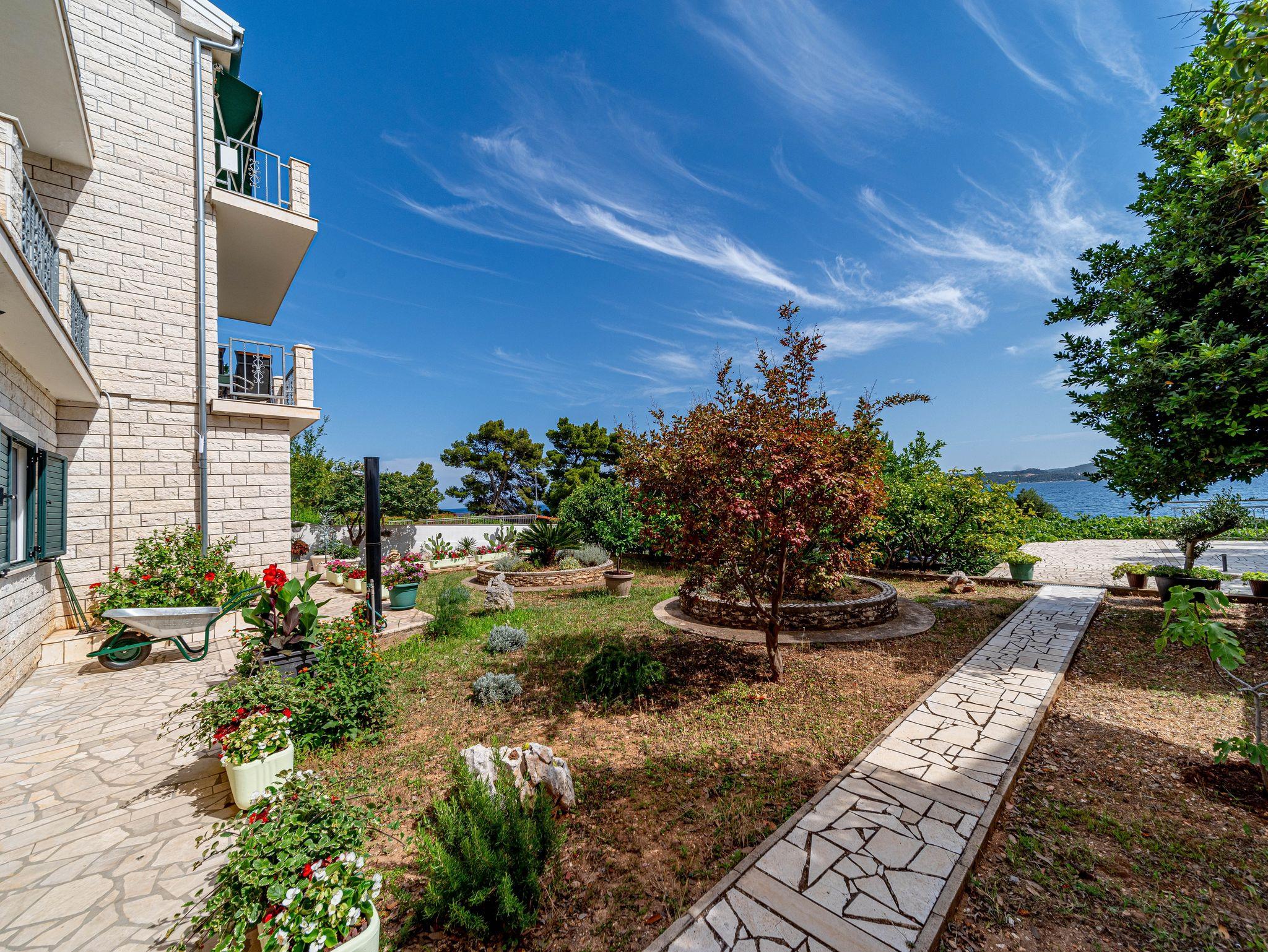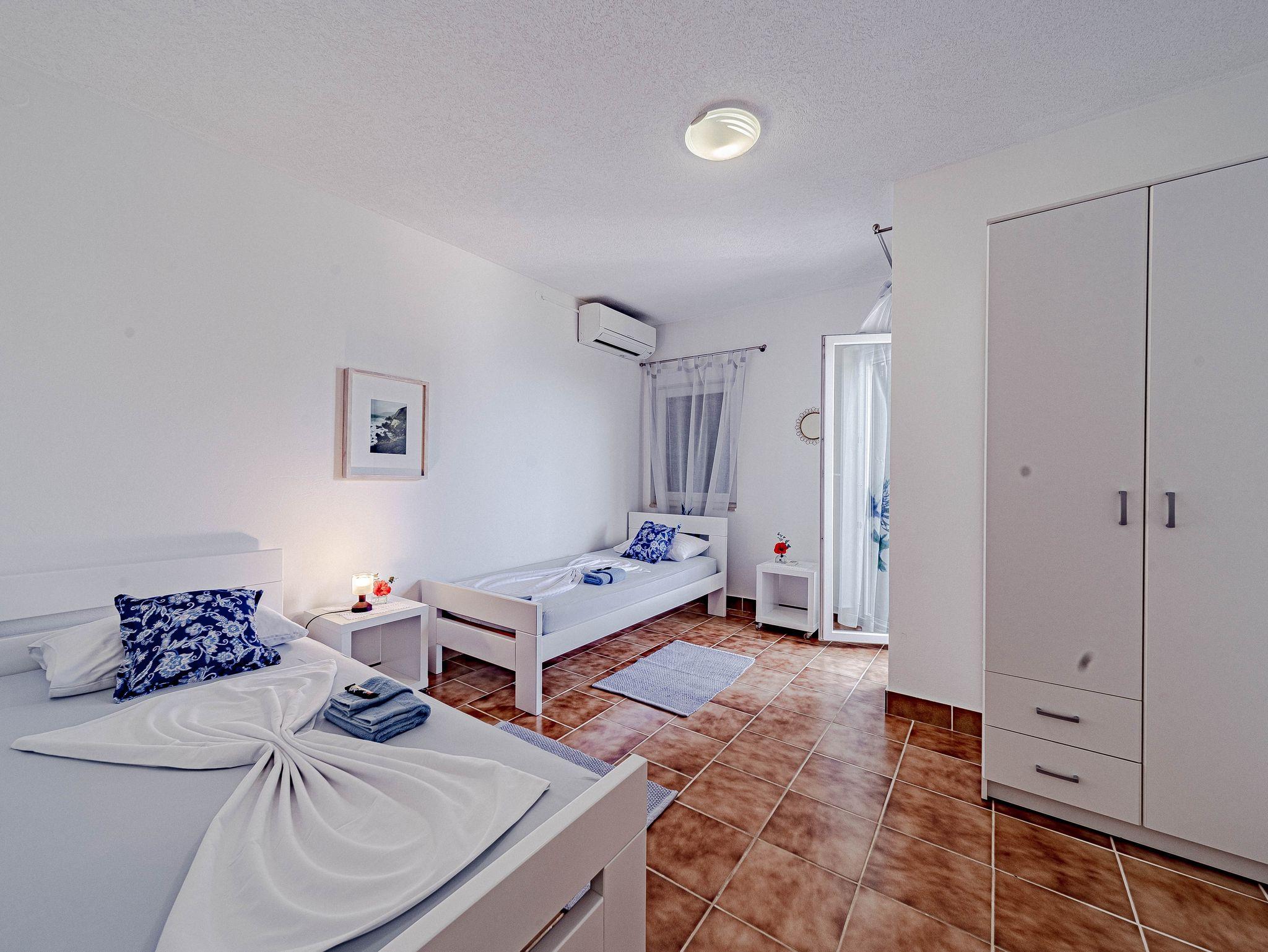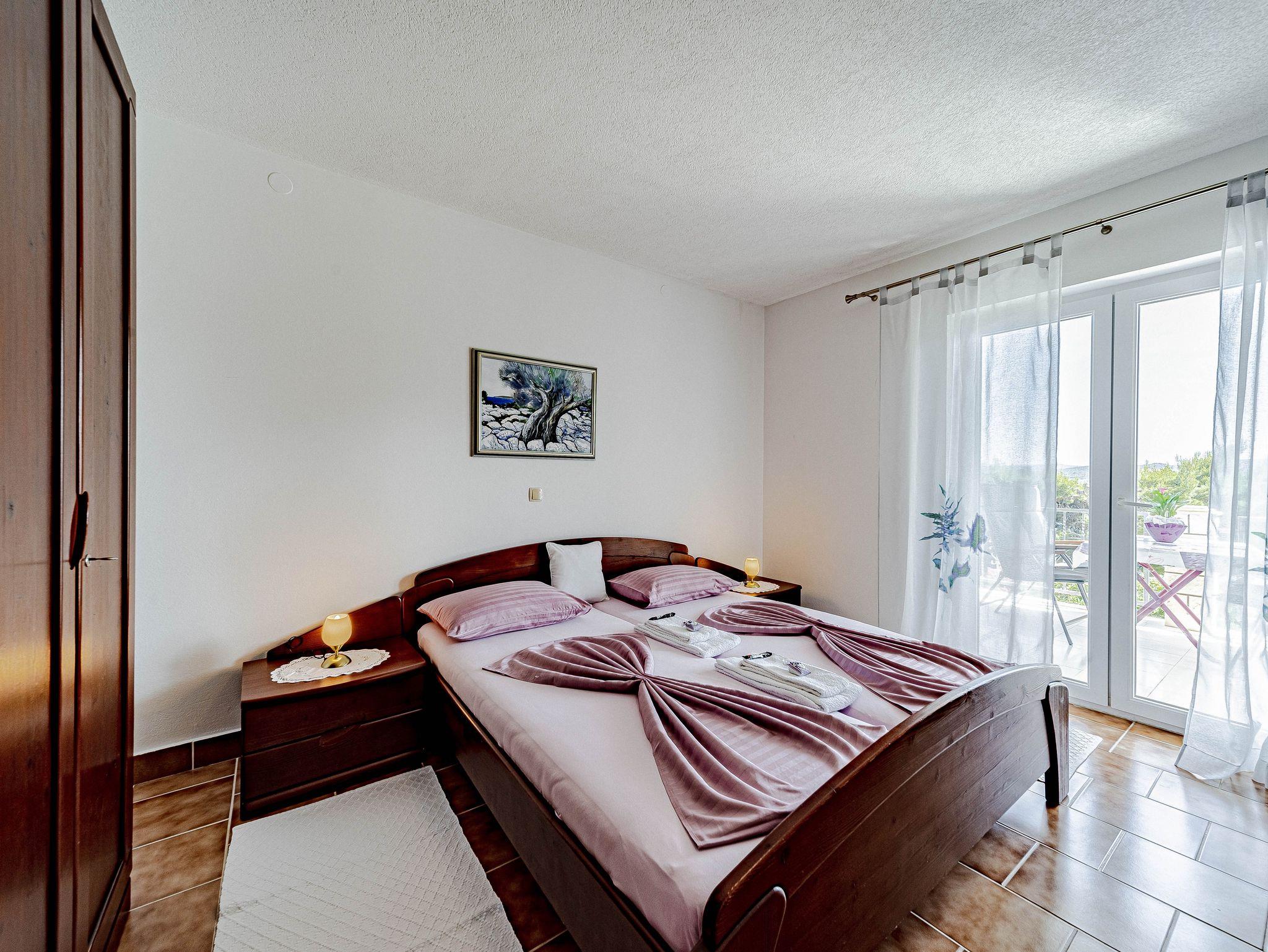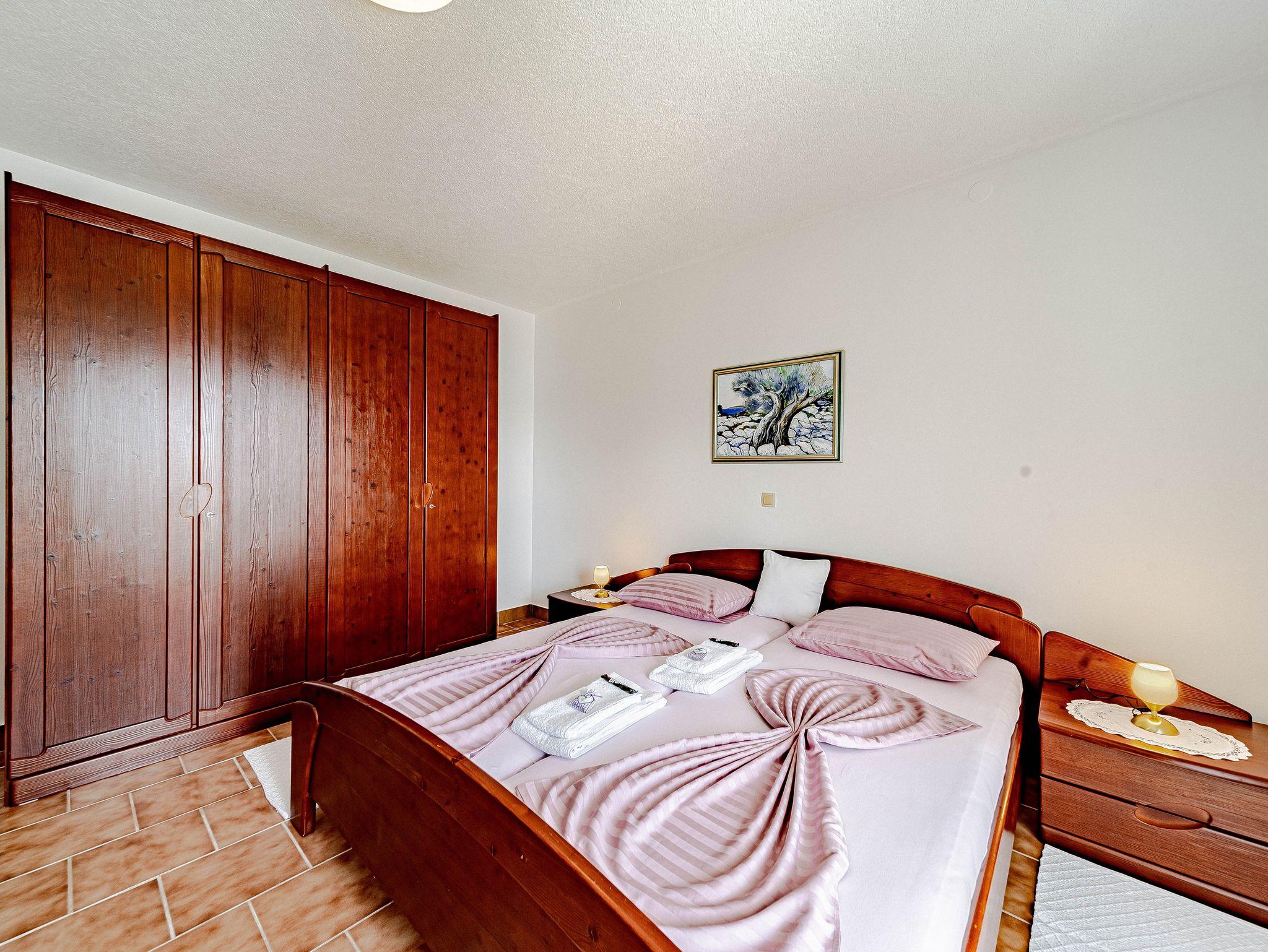 Ferienwohnung bietet Platz für 4 Gäste. Die Betten sind in Schlafzimmern, die es 2 gibt, innerhalb einer Gesamtfläche von 50m2, angeordnet. Die Gäste haben eine eigene Terrasse zur Verfügung, auf der sie in warmen Sommernächten genießen können. Das Apartment bietet Meerblick. Es ist erlaubt, Speisen auf dem Gemeinschafts-Grill vorzubereiten. IM PREIS INBEGRIFFEN: Kurtaxe, Endreinigung, Klimatisierung, Parkplatz, Internet, Bootsanlegeplatz, Kinderbett, Bügeleisen, Bügelbrett, Föhn, Sonnenschirm. Die Verfügbarkeit zusätzlicher Dienstleistungen in Ihrem reservierten Termin und die Preise derselben (falls nicht aufgeführt) müssen im Voraus überprüft werden. Zusätzliche Dienstleistungen die in der Zahlungsaufforderung nicht aufgeführt sind werden direkt beim Vermieter bezahlt, angenommen der Gast nutzt auch diese. Ermäßigung auf den Grundpreis: Gratistag 14=13 (bei einem Aufenthalt von 14 Tagen oder mehr erhalten Sie einen Gratistag für den Aufenthalt bis 31.12.26).