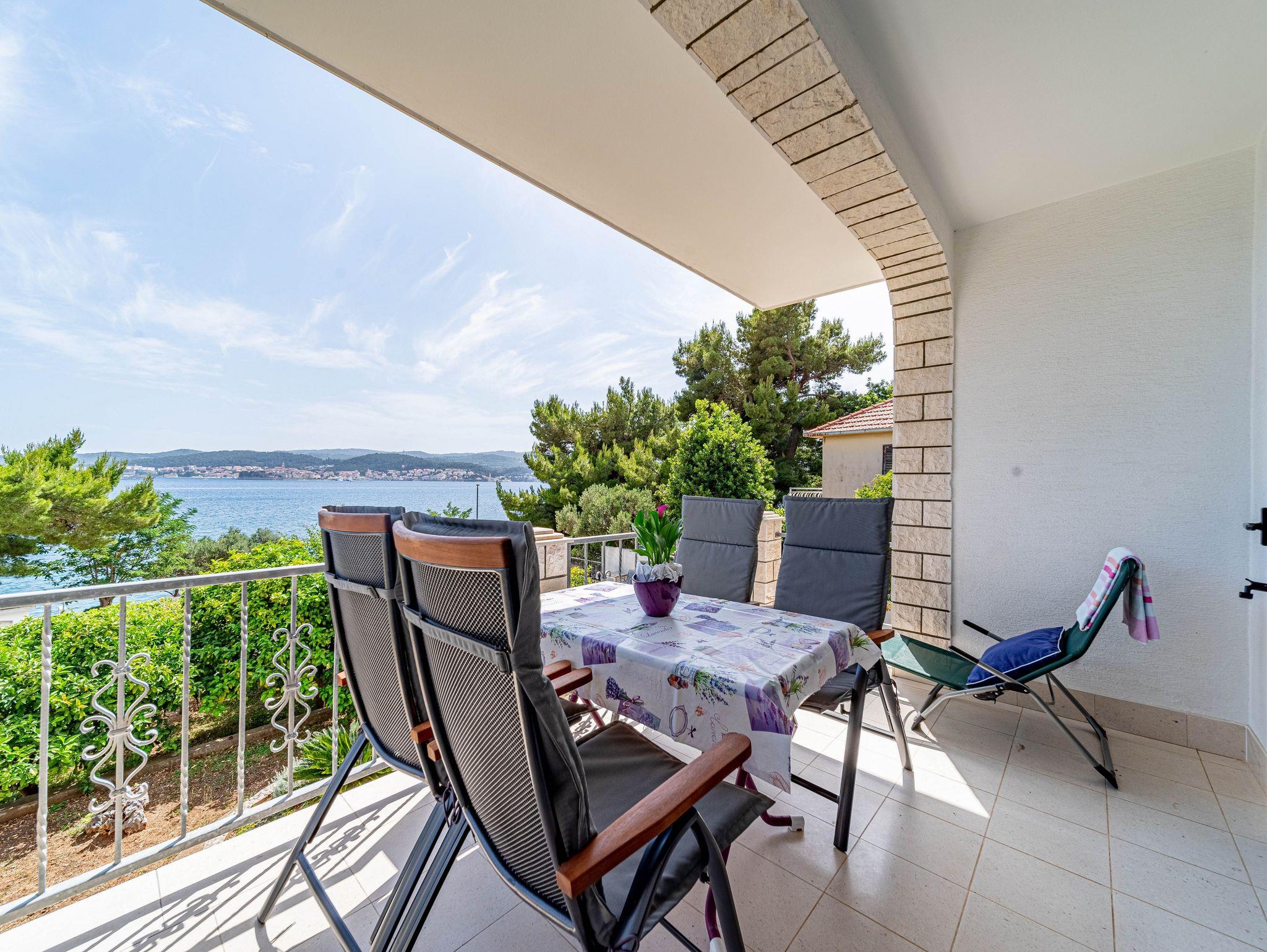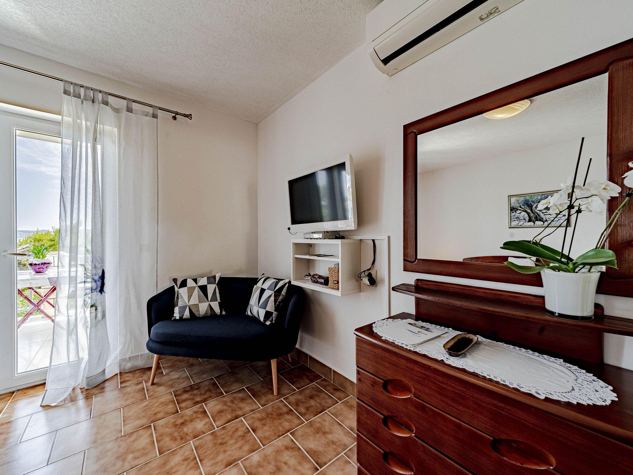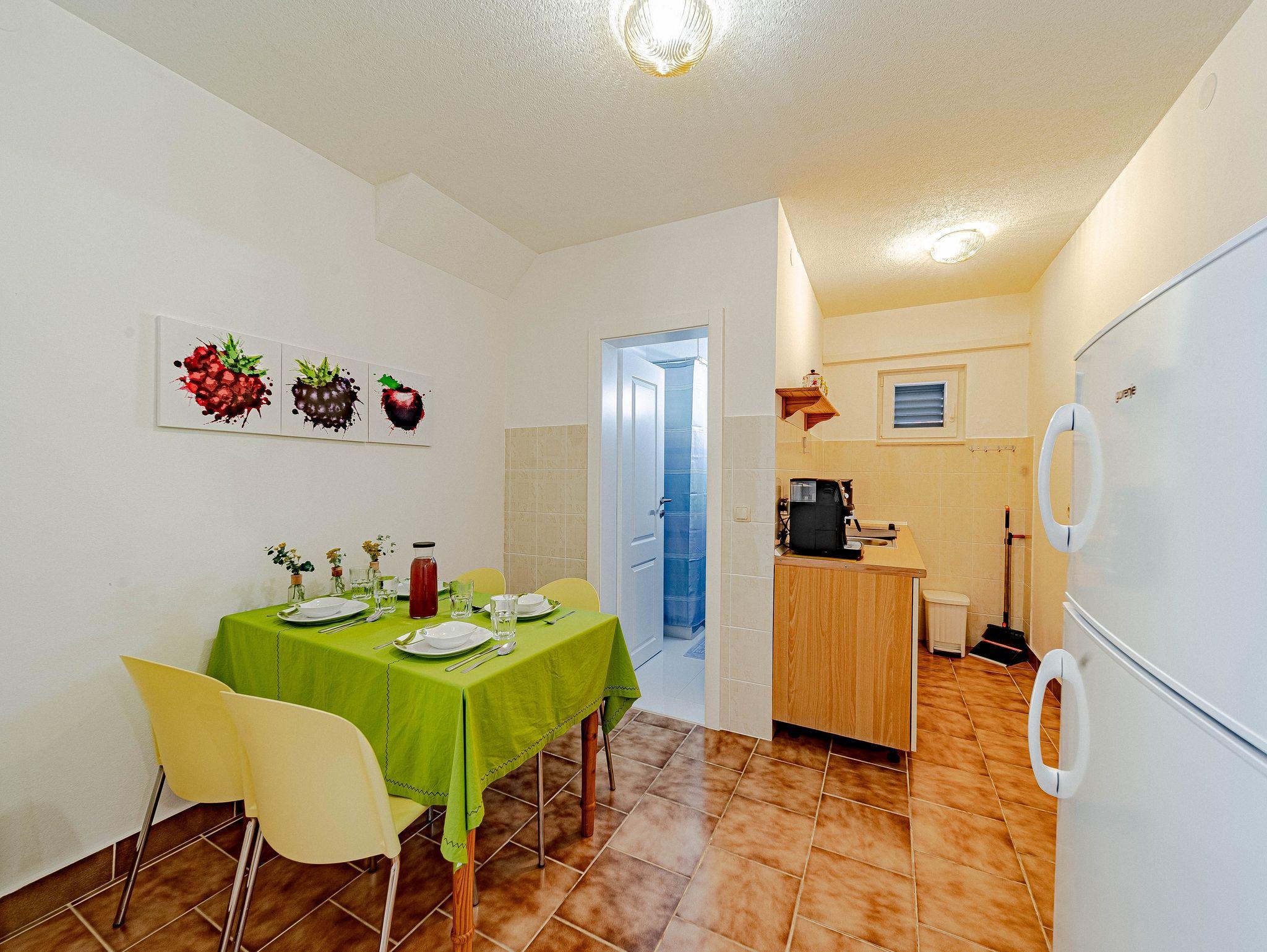 Ferienwohnung bietet Platz für 4 Gäste. Die Betten sind in Schlafzimmern, die es 2 gibt, innerhalb einer Gesamtfläche von 50m2, angeordnet. Die Gäste haben eine eigene Terrasse zur Verfügung, auf der sie in warmen Sommernächten genießen können. Das Apartment bietet Meerblick. Es ist erlaubt, Speisen auf dem Gemeinschafts-Grill vorzubereiten. IM PREIS INBEGRIFFEN: Kurtaxe, Endreinigung, Klimatisierung, Parkplatz, Internet, Bootsanlegeplatz, Kinderbett, Bügeleisen, Bügelbrett, Föhn, Sonnenschirm. Die Verfügbarkeit zusätzlicher Dienstleistungen in Ihrem reservierten Termin und die Preise derselben (falls nicht aufgeführt) müssen im Voraus überprüft werden. Zusätzliche Dienstleistungen die in der Zahlungsaufforderung nicht aufgeführt sind werden direkt beim Vermieter bezahlt, angenommen der Gast nutzt auch diese. Ermäßigung auf den Grundpreis: Gratistag 14=13 (bei einem Aufenthalt von 14 Tagen oder mehr erhalten Sie einen Gratistag für den Aufenthalt bis 31.12.26).