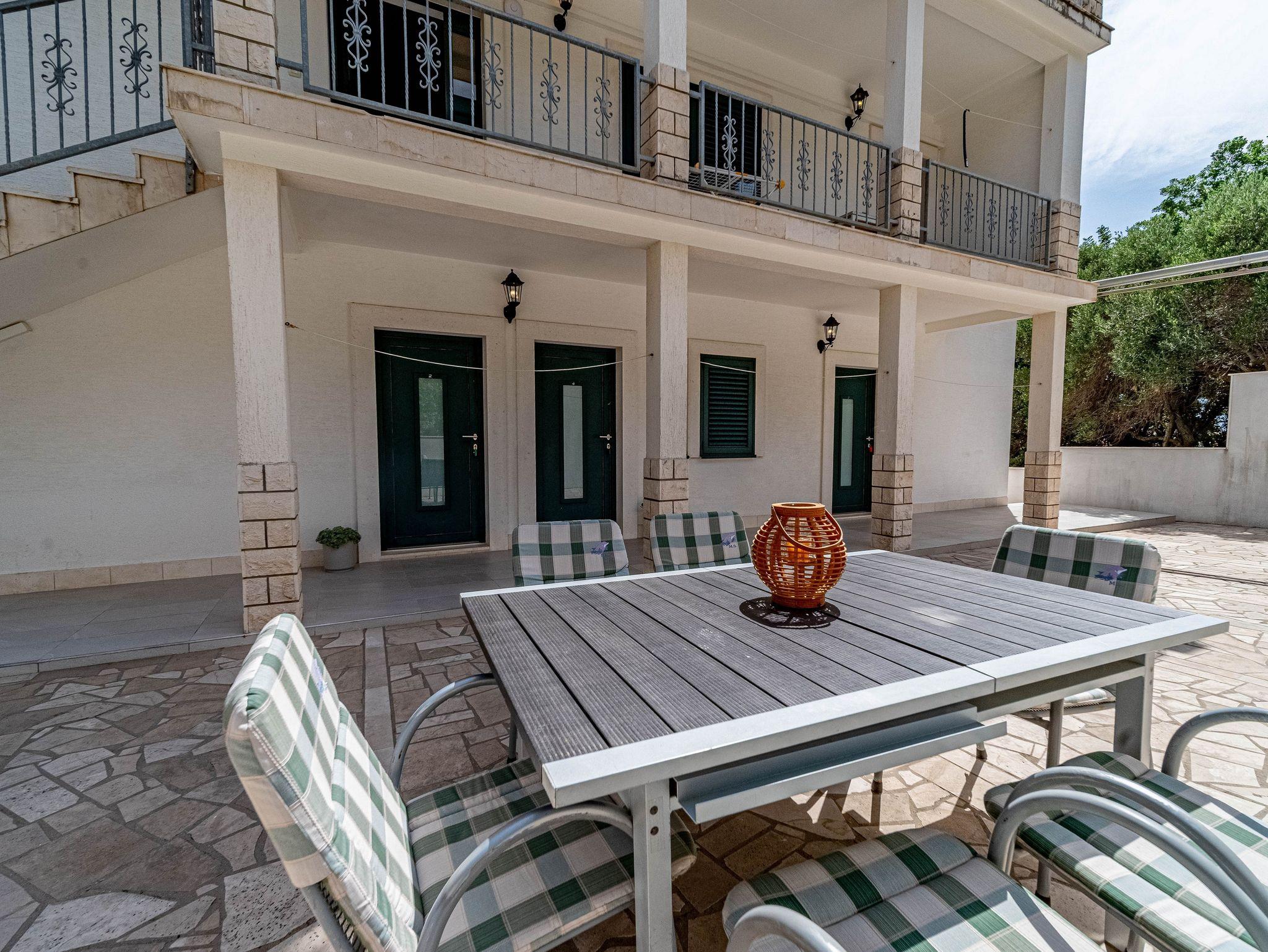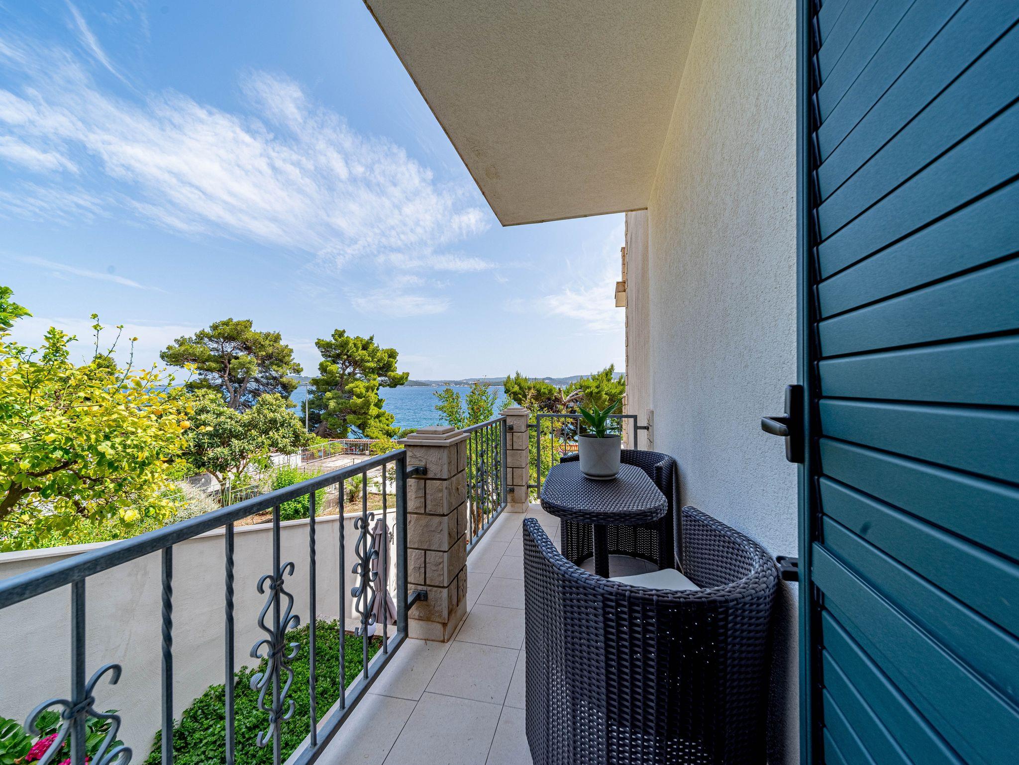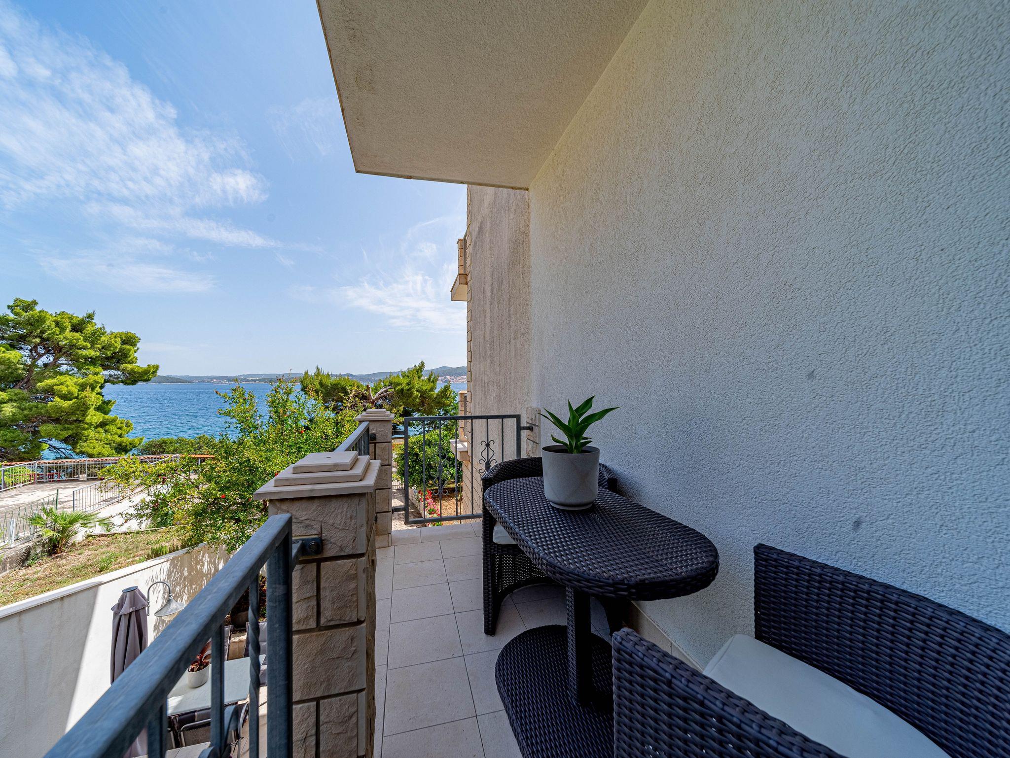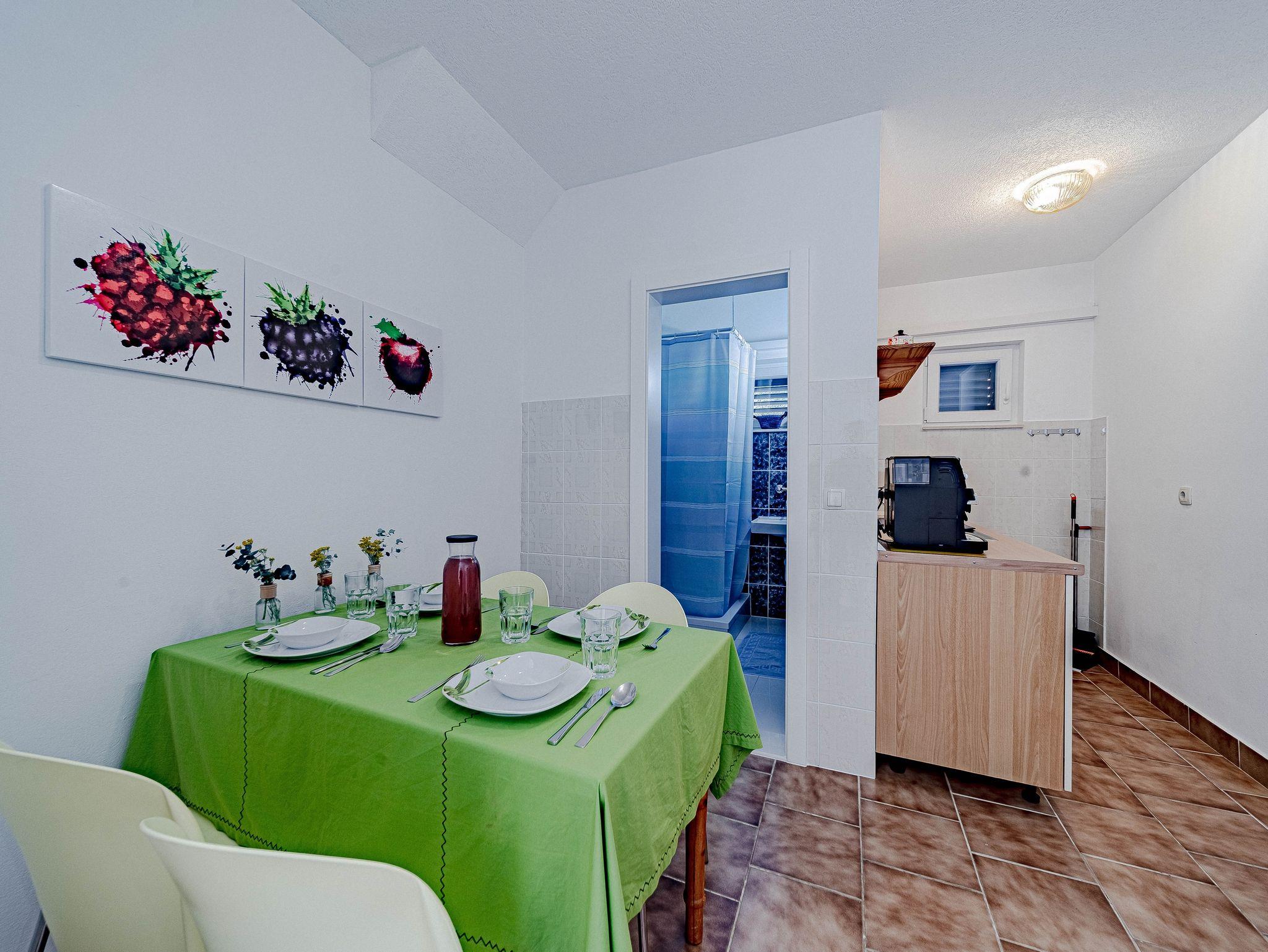 Ferienwohnung bietet Platz für 4 Gäste. Die Betten sind in Schlafzimmern, die es 2 gibt, innerhalb einer Gesamtfläche von 50m2, angeordnet. Die Gäste haben eine eigene Terrasse zur Verfügung, auf der sie in warmen Sommernächten genießen können. Das Apartment bietet Meerblick. Es ist erlaubt, Speisen auf dem Gemeinschafts-Grill vorzubereiten. IM PREIS INBEGRIFFEN: Kurtaxe, Endreinigung, Klimatisierung, Parkplatz, Internet, Bootsanlegeplatz, Kinderbett, Bügeleisen, Bügelbrett, Föhn, Sonnenschirm. Die Verfügbarkeit zusätzlicher Dienstleistungen in Ihrem reservierten Termin und die Preise derselben (falls nicht aufgeführt) müssen im Voraus überprüft werden. Zusätzliche Dienstleistungen die in der Zahlungsaufforderung nicht aufgeführt sind werden direkt beim Vermieter bezahlt, angenommen der Gast nutzt auch diese. Ermäßigung auf den Grundpreis: Gratistag 14=13 (bei einem Aufenthalt von 14 Tagen oder mehr erhalten Sie einen Gratistag für den Aufenthalt bis 31.12.26).