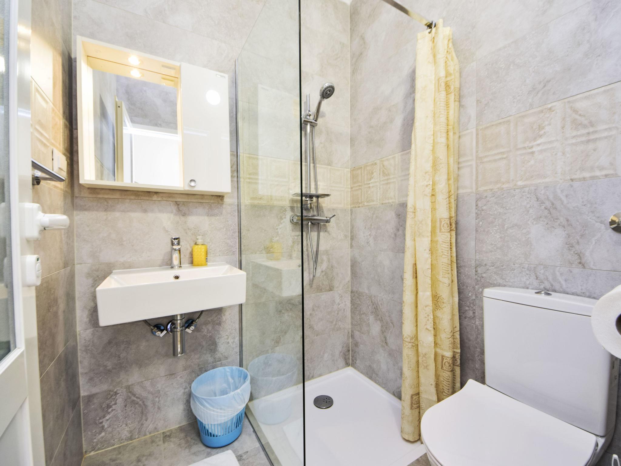 1-room studio 18 m2 on 1st floor. 1 room with 1 double bed (160 cm, length 200 cm), shower/WC, satellite TV and air conditioning. Exit to the terrace. Kitchen-/living room (2 ceramic glass hob hotplates, toaster, kettle, electric coffee machine) with dining table. Terrace 15 m2. Terrace furniture. Partial view of the sea. Facilities: Internet (WiFi, free). Maximum 1 pet/ dog allowed.