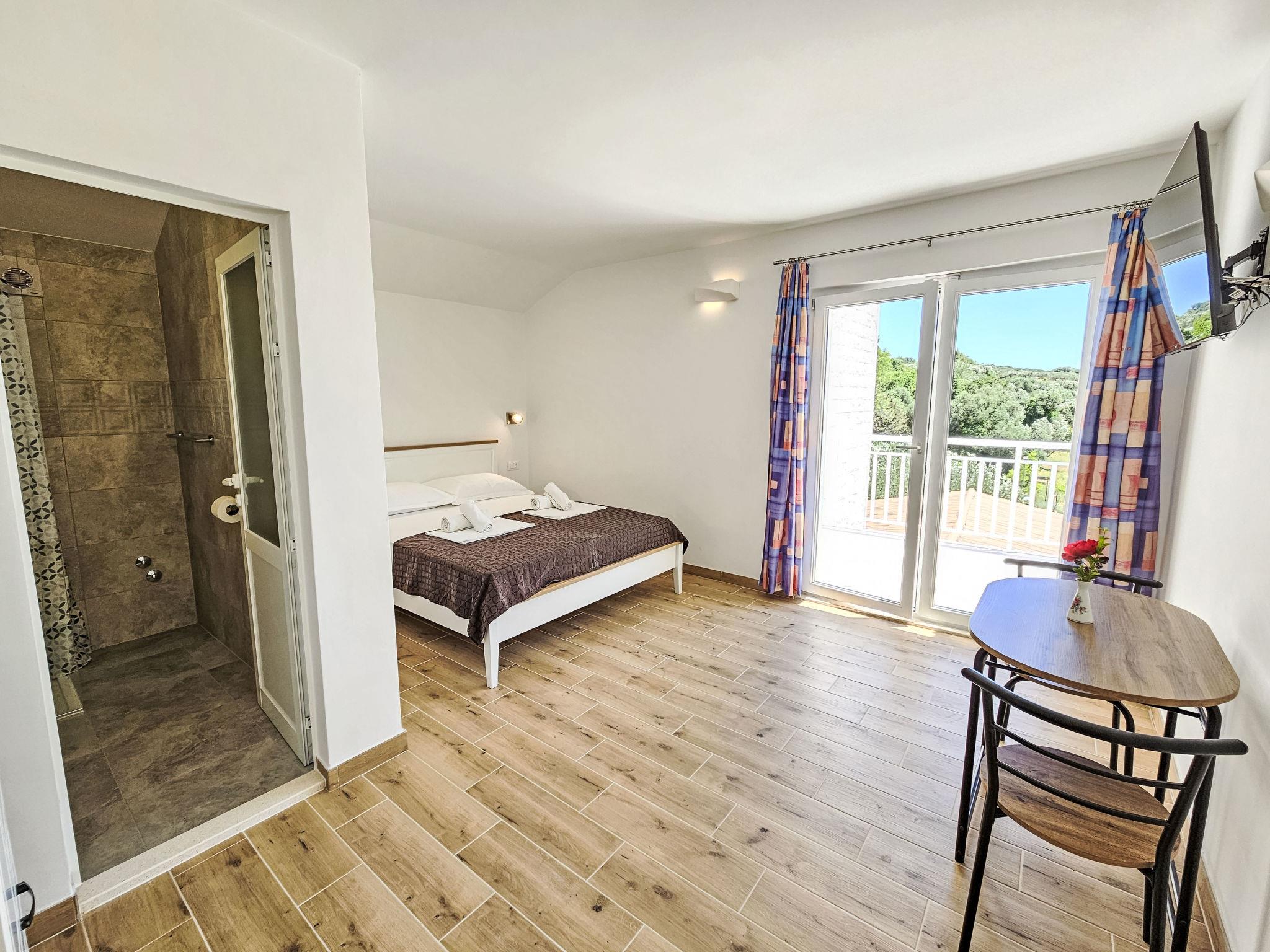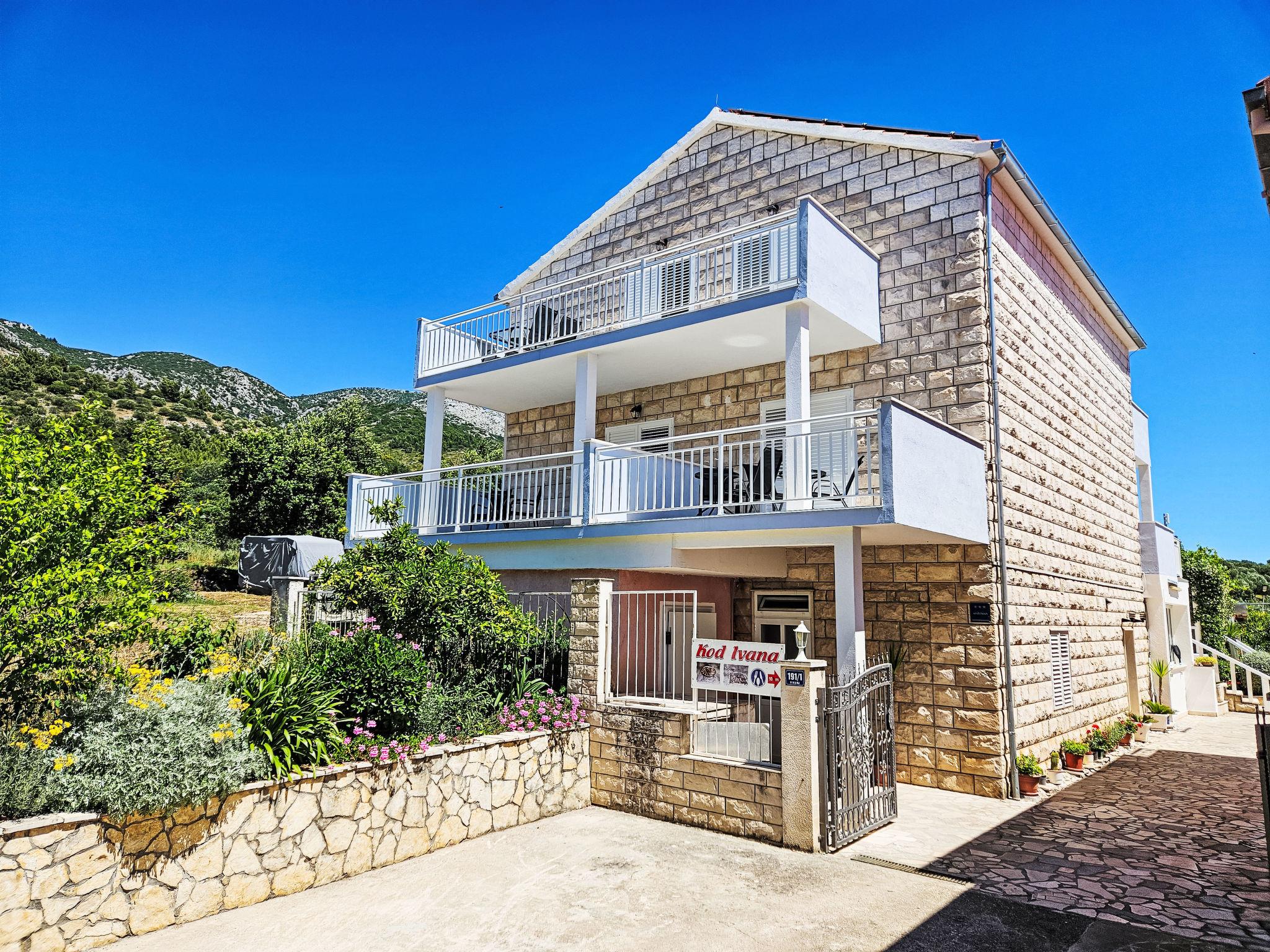 Beautiful 3-family house "Balota - Moreška". 200 m from the centre, 7 km from the centre of Orebic, 200 m from the sea, 200 m from the beach. For shared use: property 4'000 m2 (fenced) with lawn and trees, orchard, swimming pool angular (9 x 4 m, depth 140 cm, seasonal availability: 13.Apr. - 21.Sep.) with internal staircase. Outdoor shower, terrace, garden furniture. In the house: internet access. Room cleaning on request (extra). Parking at the house on the premises. Shop 800 m, bus stop 6.6 km, pebble beach 200 m. Please note: Additional accommodations can be booked. In the grounds: Boccia alley. Possible to rent: motor boat 4 m, vehicle Kia Sportage automatic (all extra). In the same grounds there are the properties HR8035.100, HR8035.101 and HR8035.103. Diving centre with diving school in Orebic, 8km.