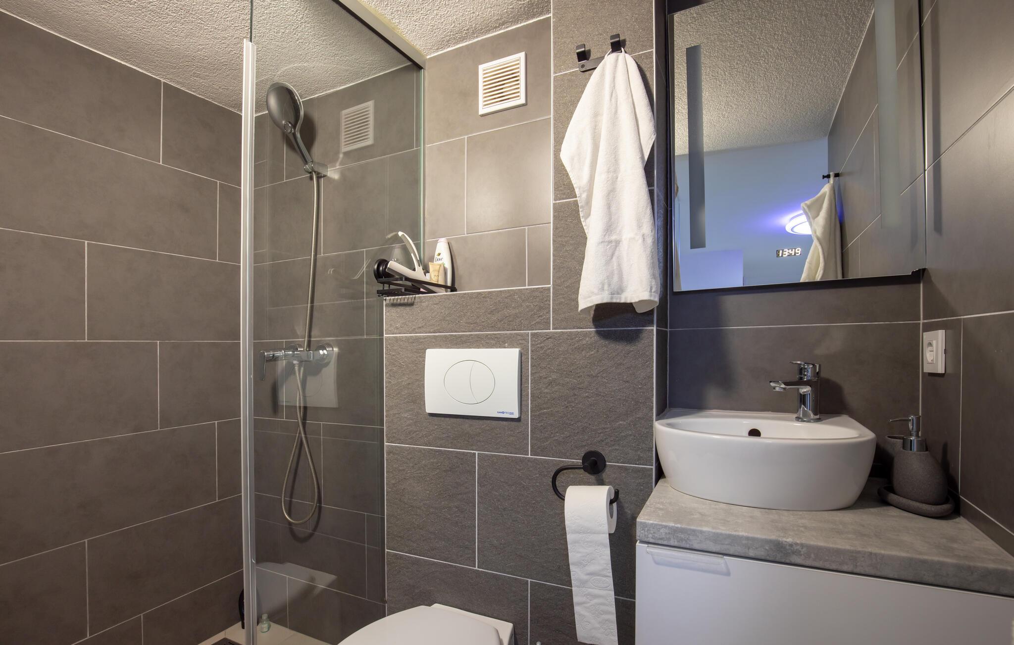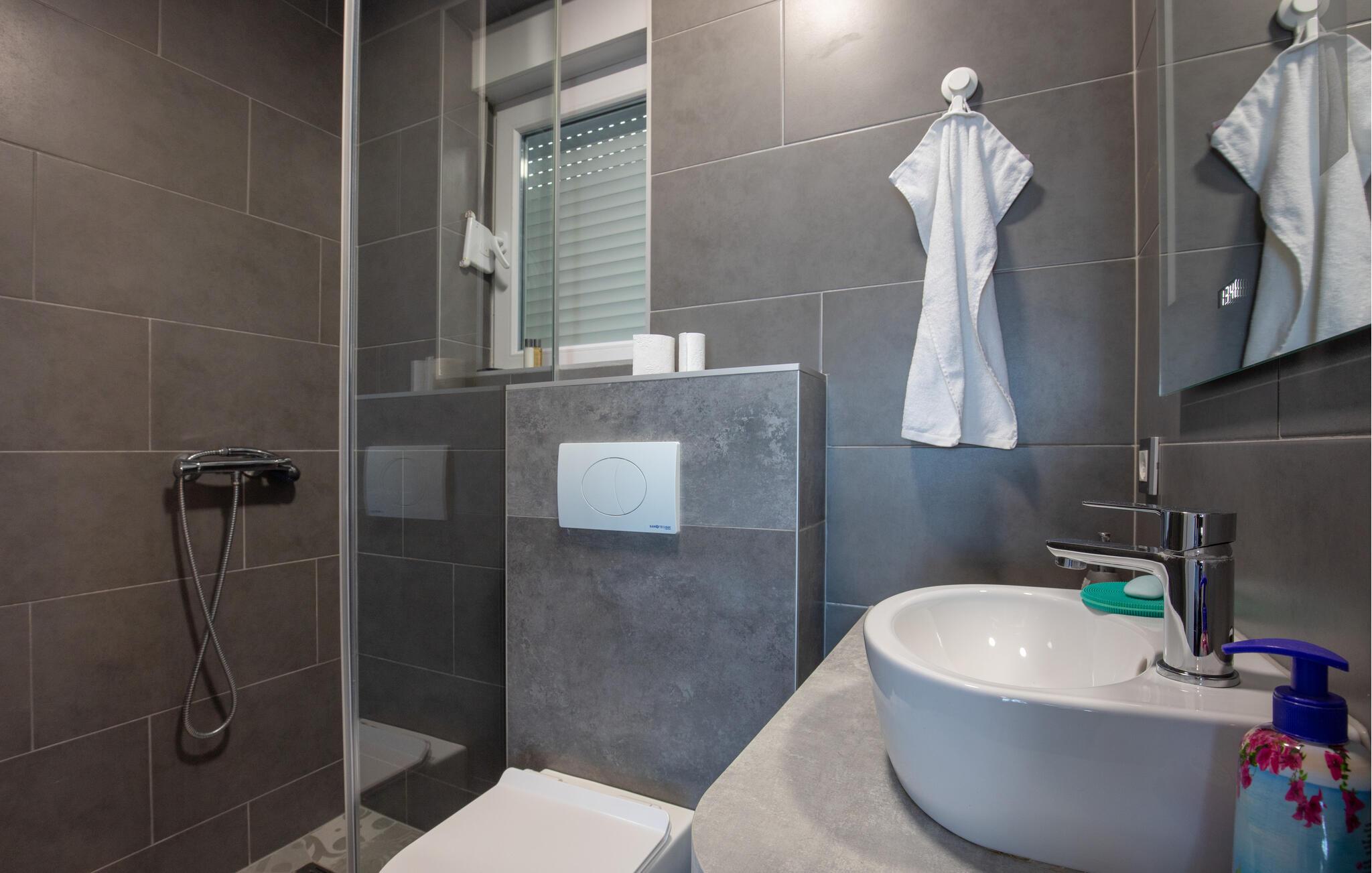 - WC med varmt og kaldt vann, Dusj
