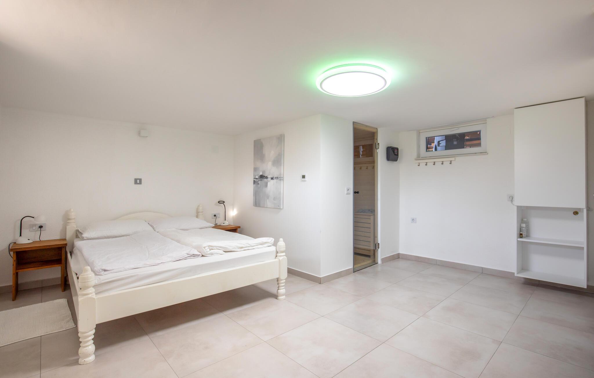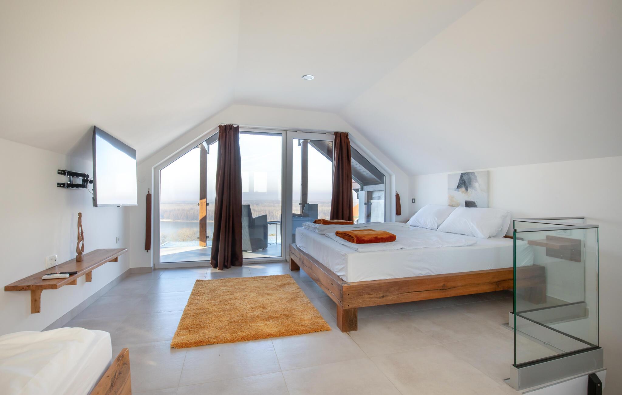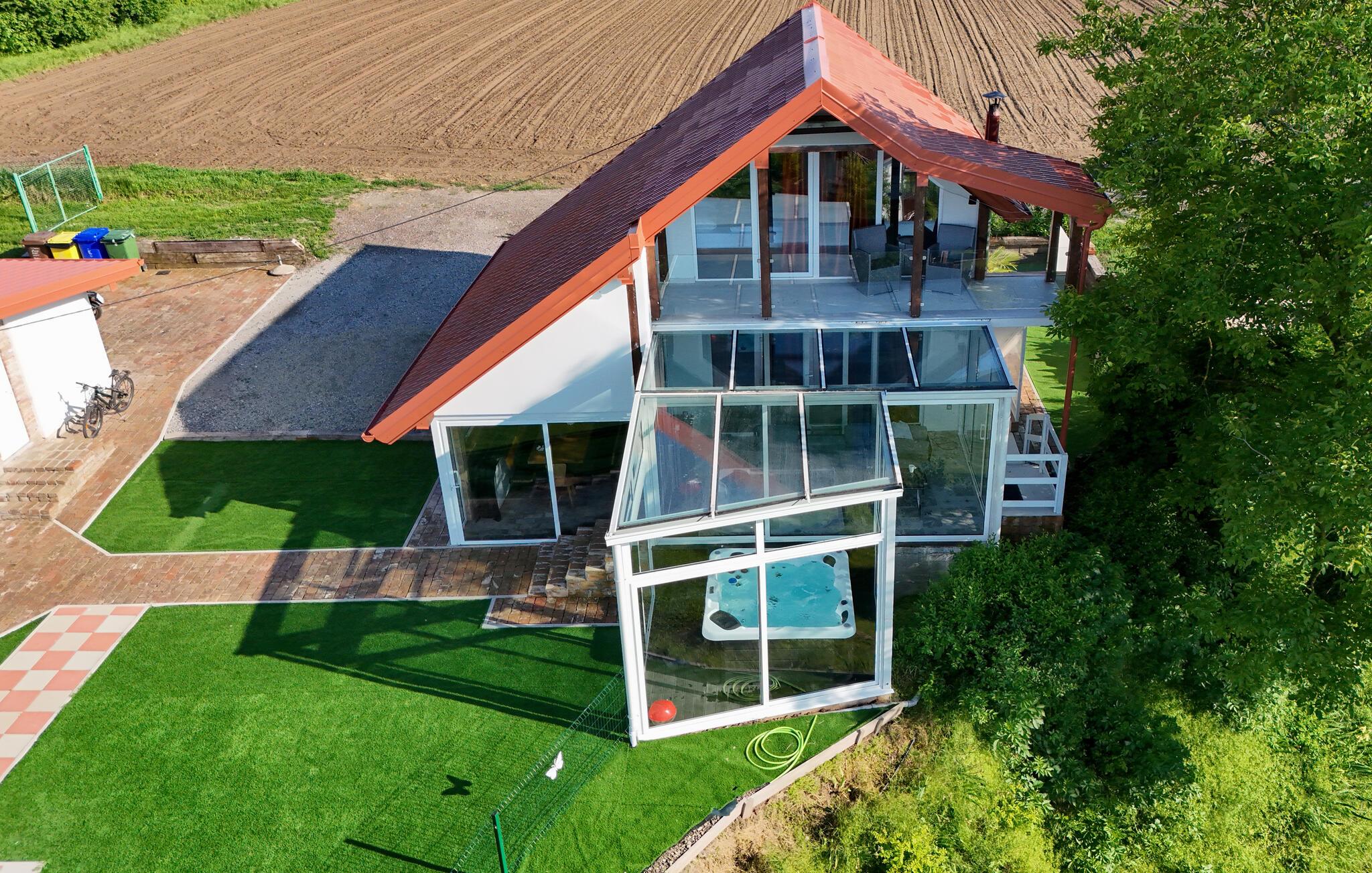 Dette huset ligger på den idylliske landsbygda i nærheten av Aljma, og er et unikt tilfluktssted for naturelskere som ikke vil gå glipp av moderne bekvemmeligheter og en koselig atmosfære. Slapp av i den romslige sofaen med en filmkveld, spill et brettspill eller unn deg noen koselige stunder i husets badstue. Den innglassede vinterhagen gir deg et koselig tilfluktssted med en fantastisk utsikt over landskapet.