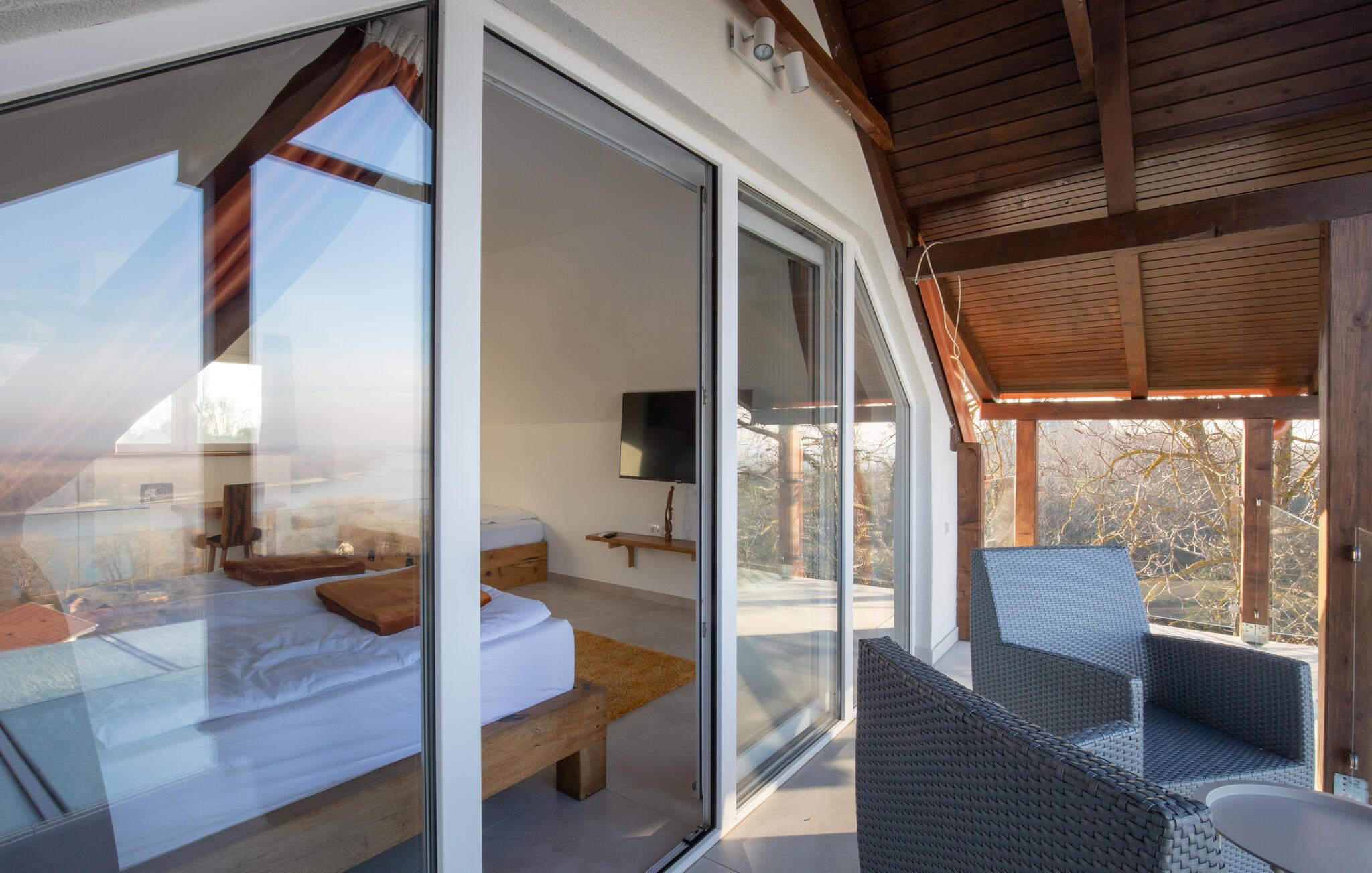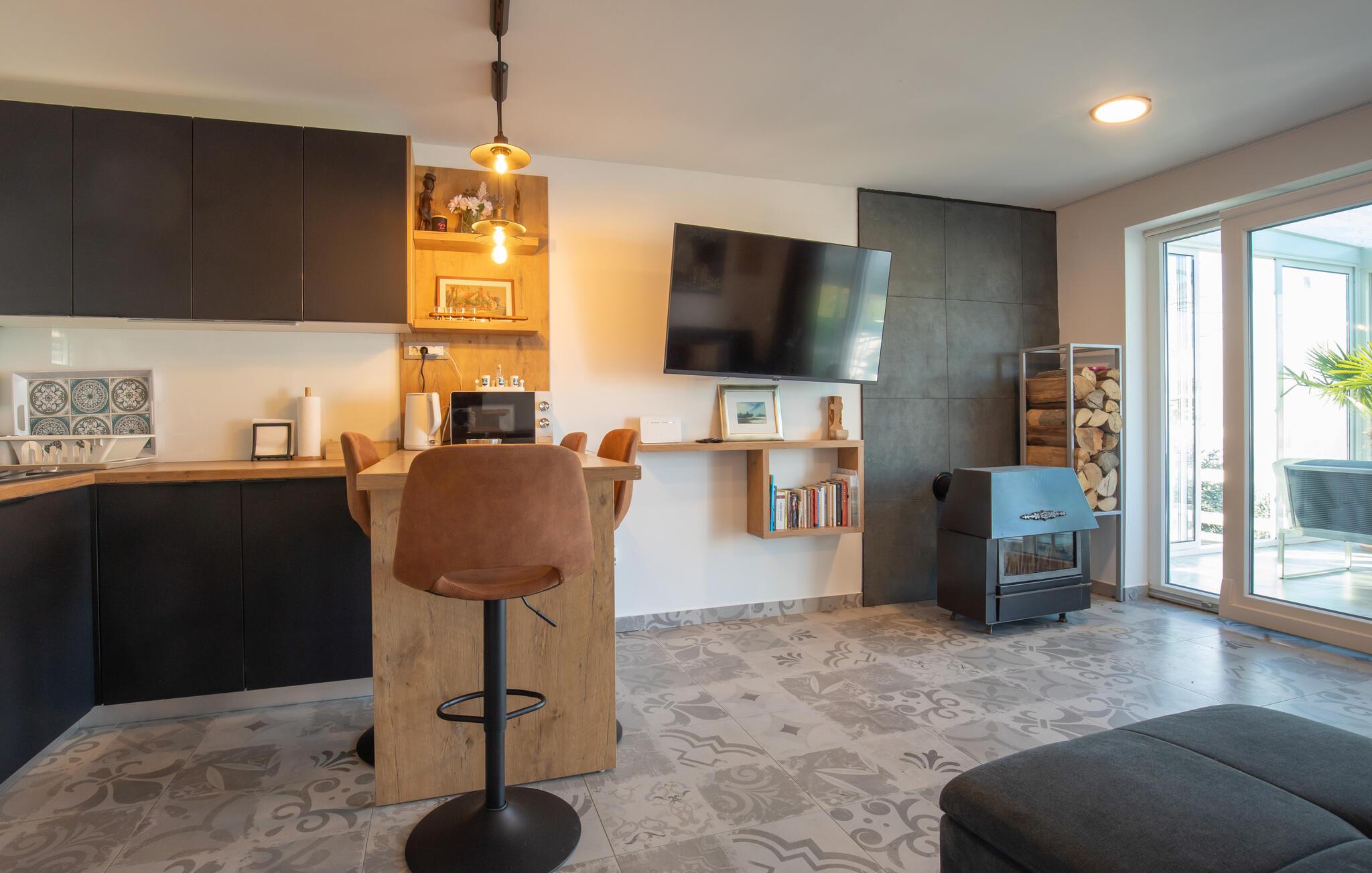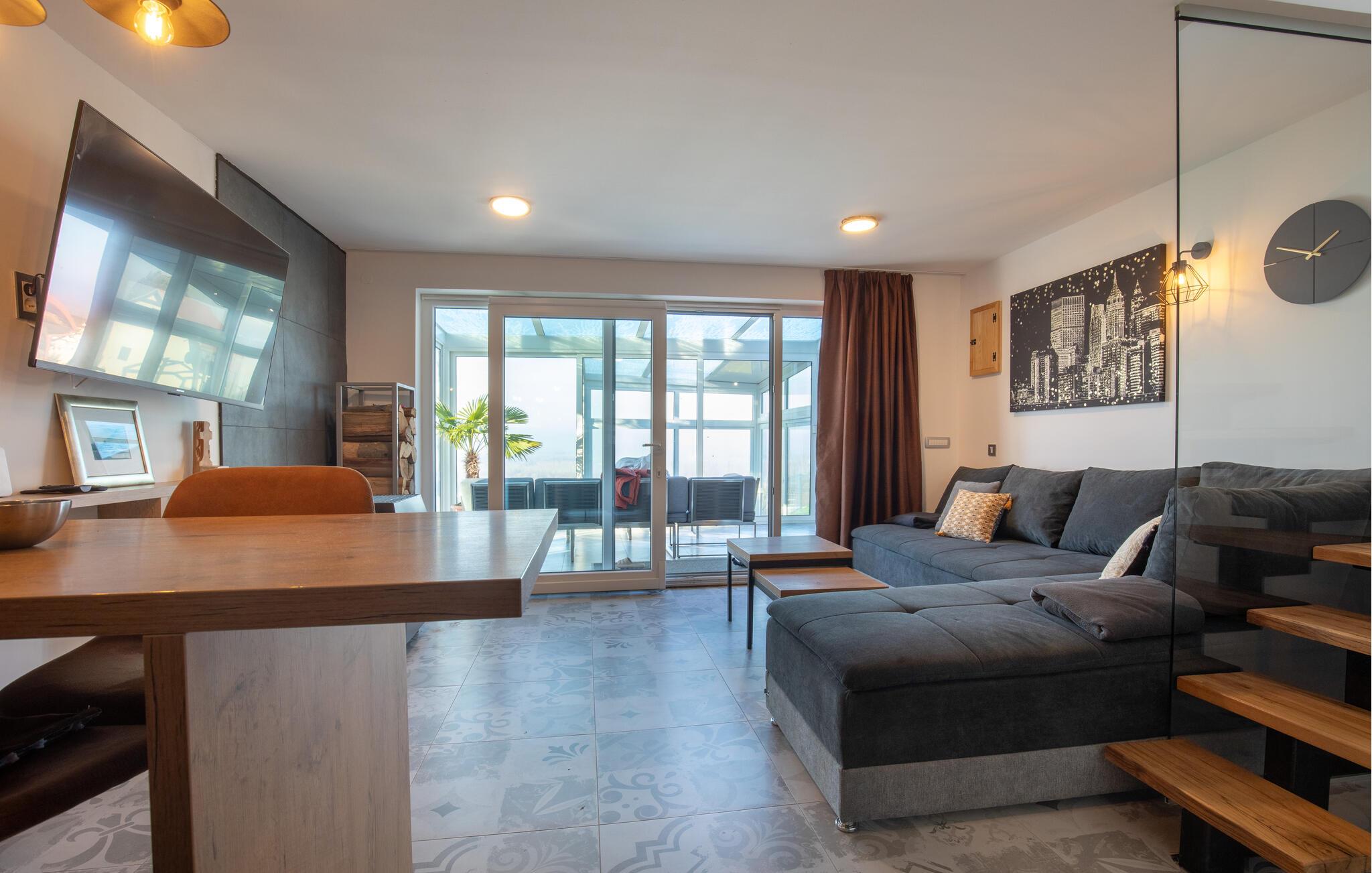 Dette huset ligger på den idylliske landsbygda i nærheten av Aljma, og er et unikt tilfluktssted for naturelskere som ikke vil gå glipp av moderne bekvemmeligheter og en koselig atmosfære. Slapp av i den romslige sofaen med en filmkveld, spill et brettspill eller unn deg noen koselige stunder i husets badstue. Den innglassede vinterhagen gir deg et koselig tilfluktssted med en fantastisk utsikt over landskapet.