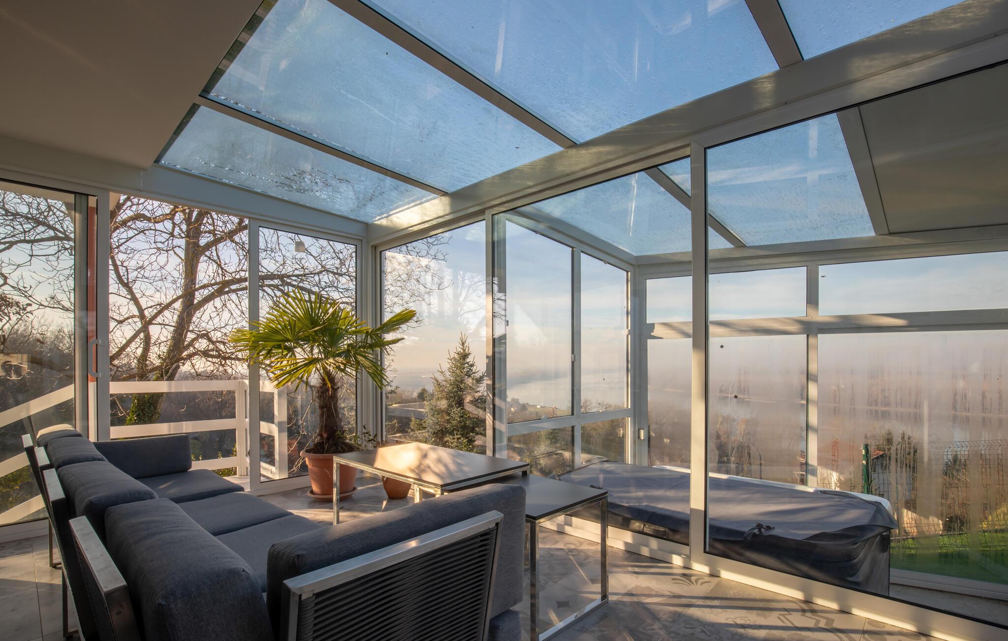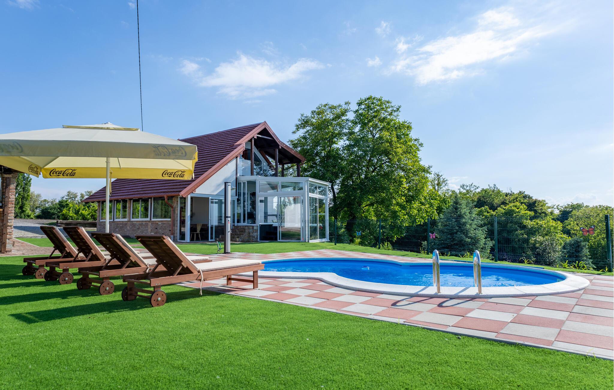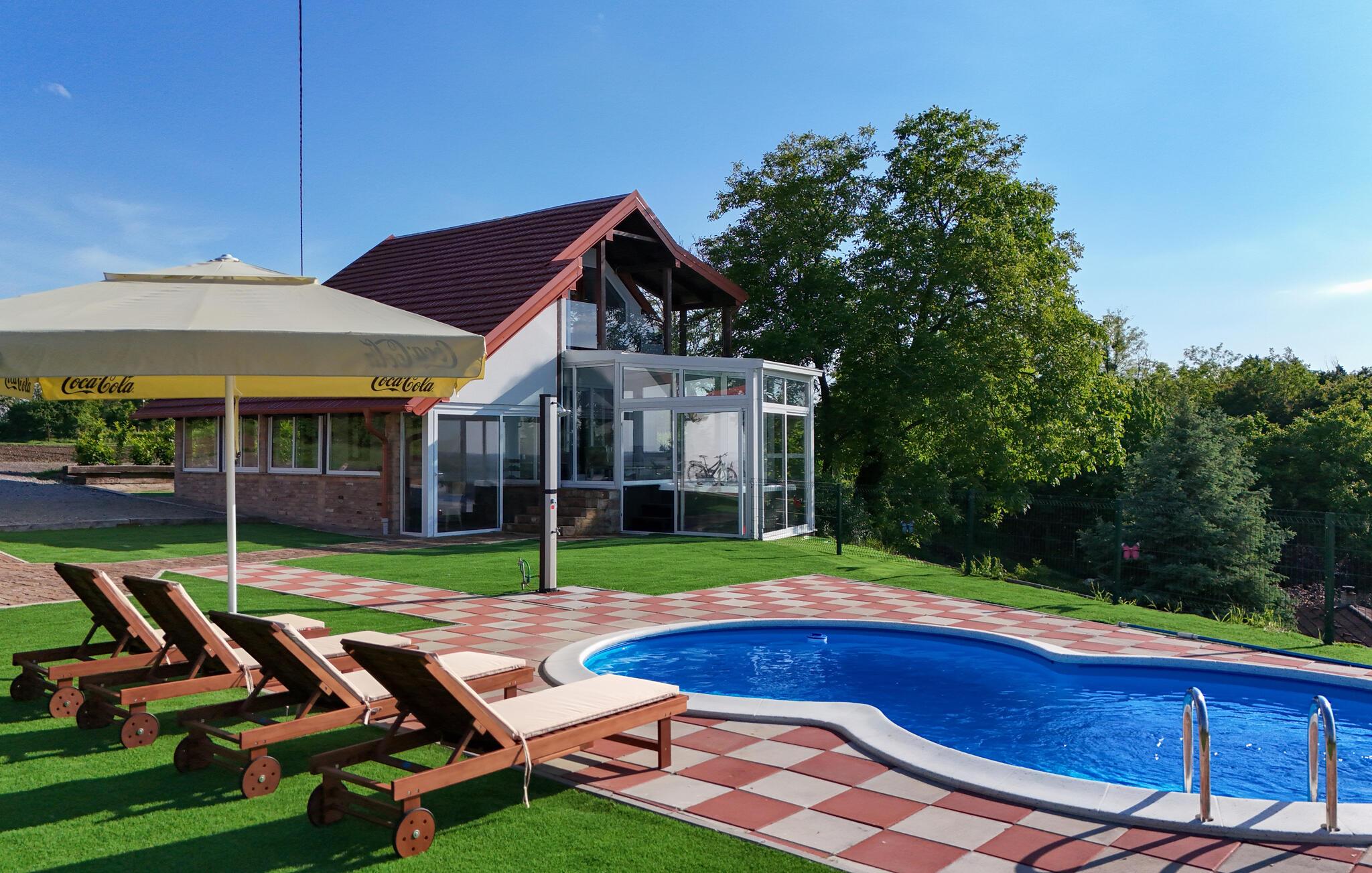 Tilbring en avslappende ferie i dette komfortable feriehuset med basseng, badstue og panoramautsikt.
