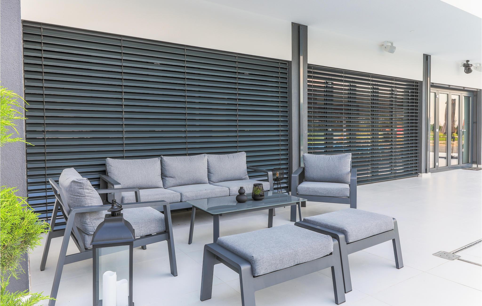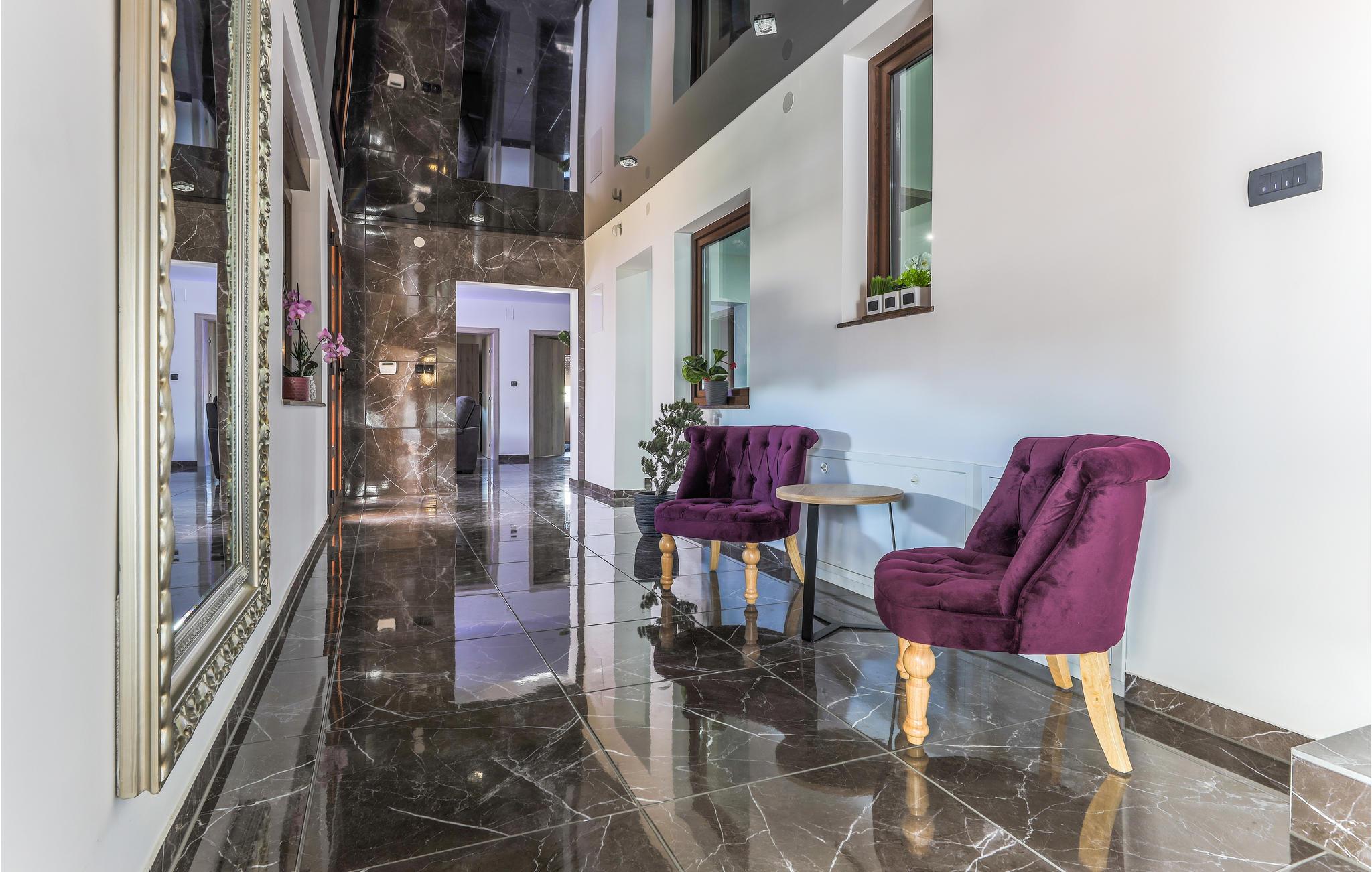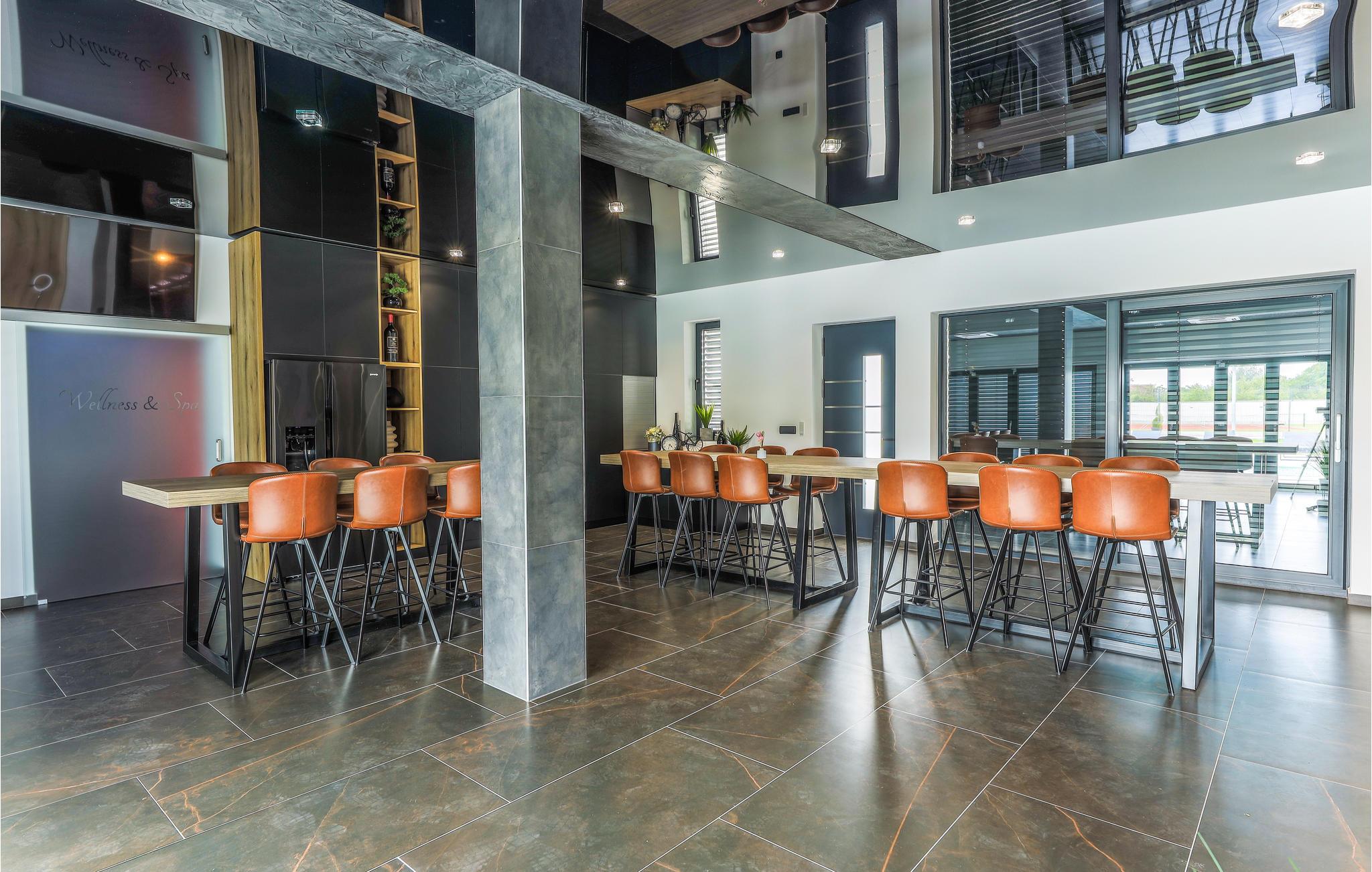 Så snart du kjører inn på gårdsplassen i bilen din, kan du bare si wow. Her har du plass til bilene dine og kan parkere dem. Når du kommer inn i det imponerende huset, vil du umiddelbart legge merke til den moderne og stilfulle møbleringen. Mange sittegrupper lover koselige middager. Gå fra den store salongen og ut på den fargerike terrassen med stilfulle hagemøbler. Bassenget inviterer deg til å ta din første dukkert om morgenen etter at du har stått opp. Den mursteinsbygde grillen gir deg god plass til å tilberede mat om kveldene og lage mat til alle.