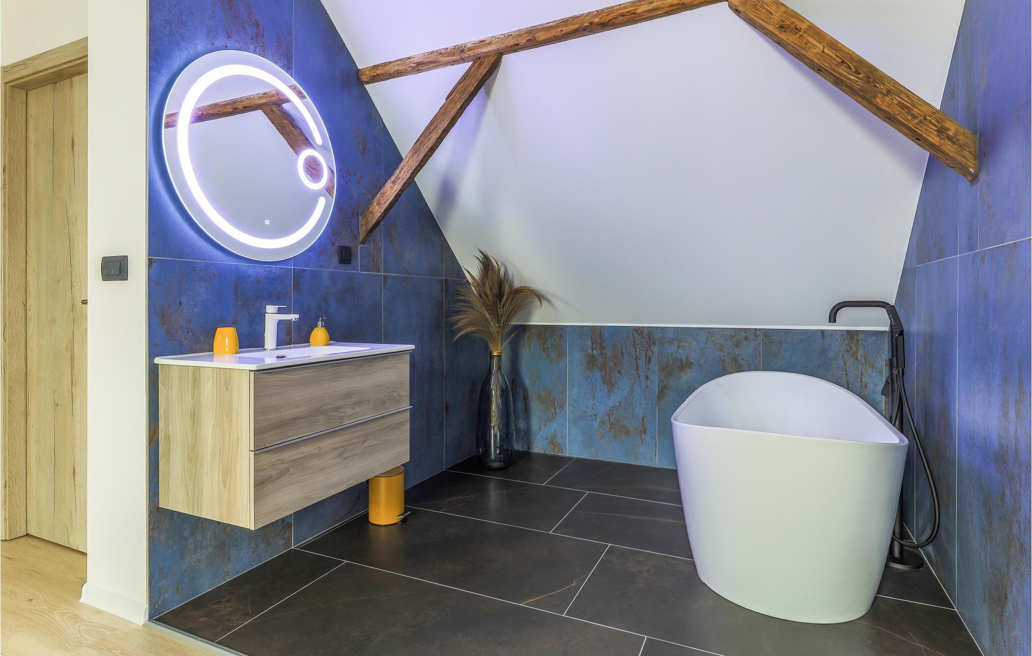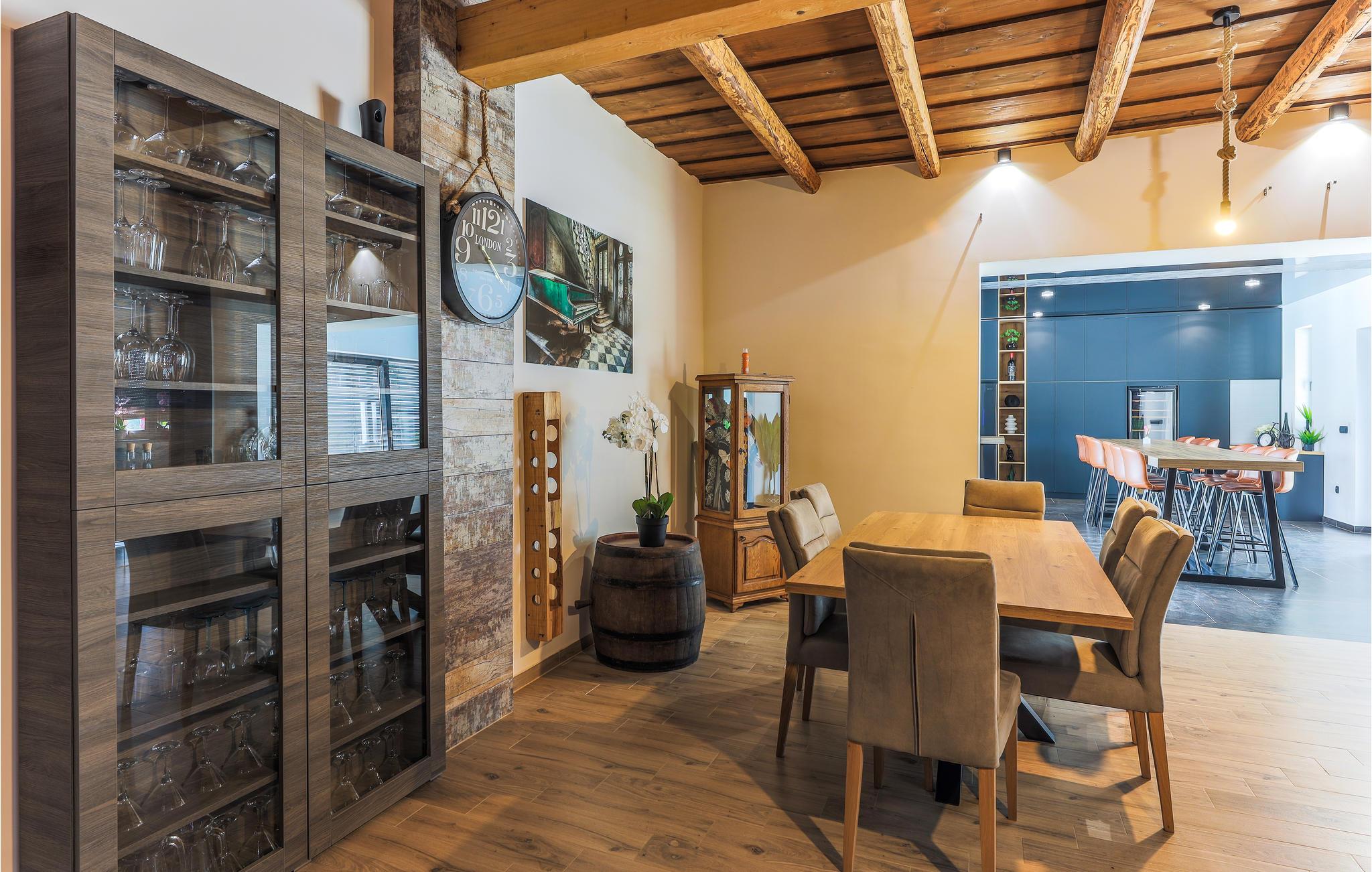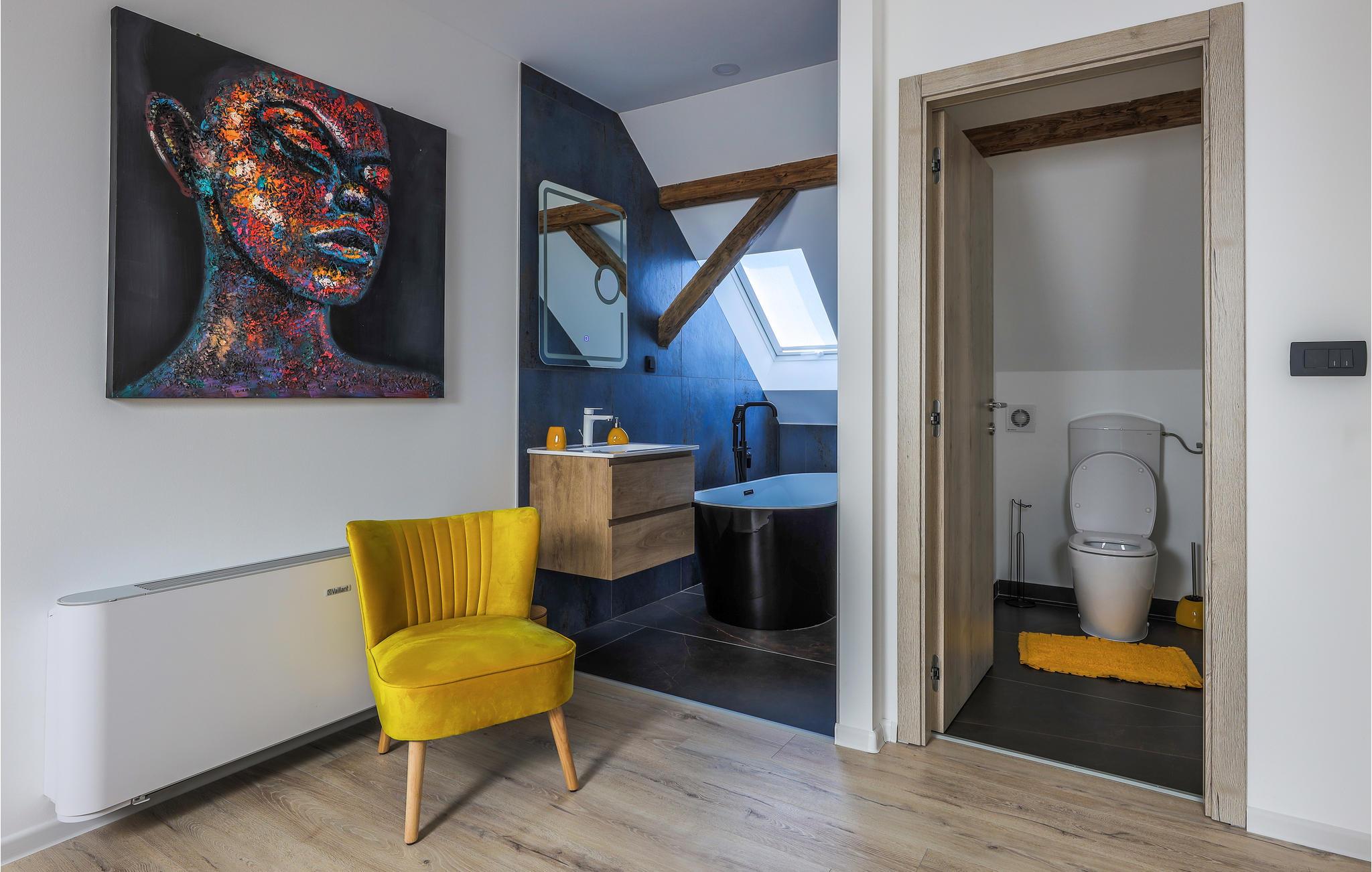 Så snart du kjører inn på gårdsplassen i bilen din, kan du bare si wow. Her har du plass til bilene dine og kan parkere dem. Når du kommer inn i det imponerende huset, vil du umiddelbart legge merke til den moderne og stilfulle møbleringen. Mange sittegrupper lover koselige middager. Gå fra den store salongen og ut på den fargerike terrassen med stilfulle hagemøbler. Bassenget inviterer deg til å ta din første dukkert om morgenen etter at du har stått opp. Den mursteinsbygde grillen gir deg god plass til å tilberede mat om kveldene og lage mat til alle.