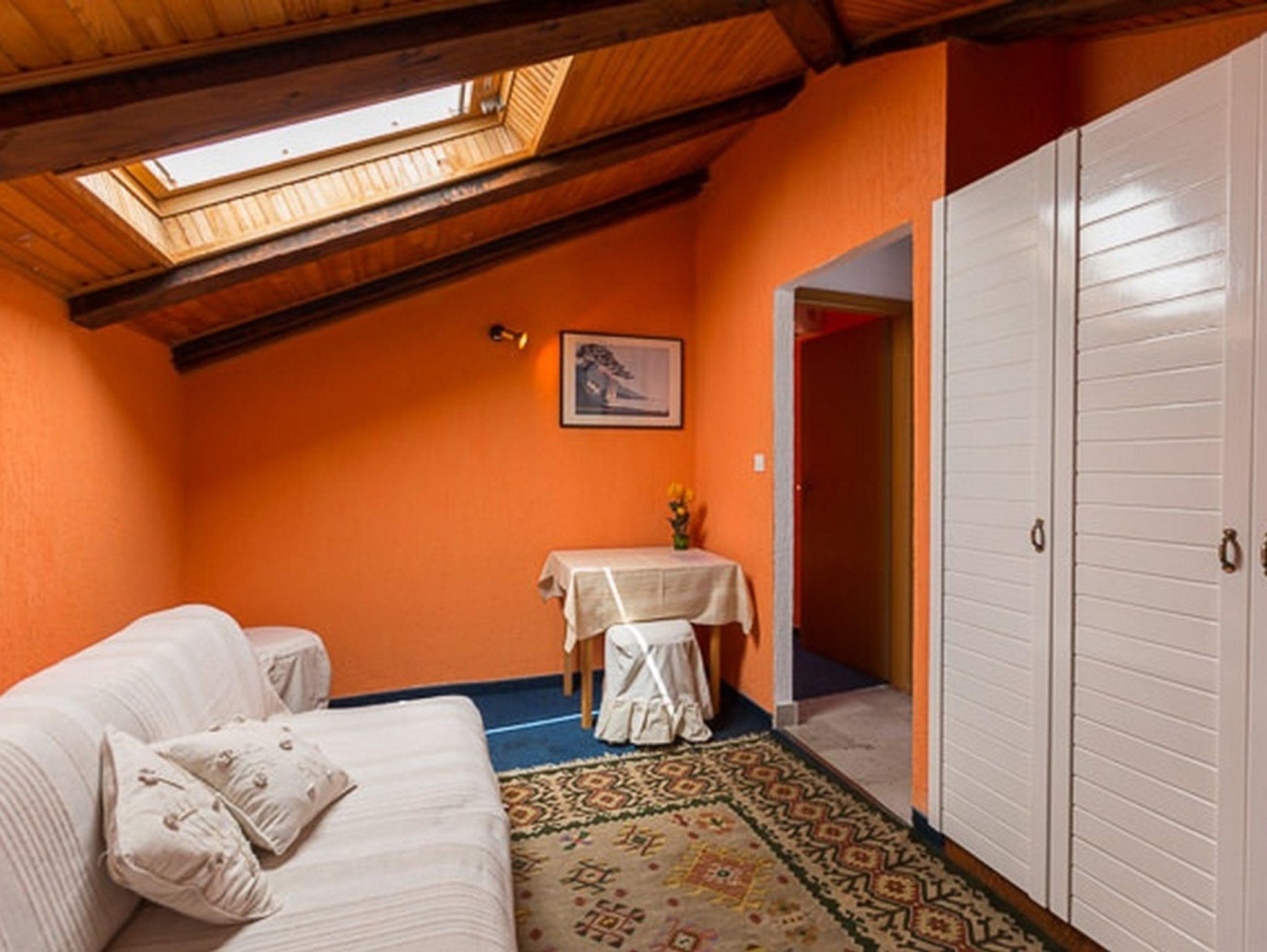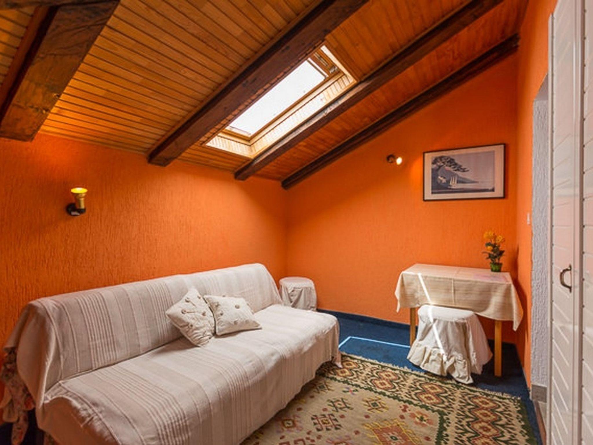 Zimmer bietet Platz für 4 Gäste. Die Betten sind in Schlafzimmern, die es 1 gibt, und in Wohnzimmer, innerhalb einer Gesamtfläche von 22m2, angeordnet. In der Unterkunftseinheit besteht die Möglichkeit des Mitbringens von Haustieren gegen Aufpreis. Die reservierte Unterkunftseinheit verfügt über einen gemeinsame Terrasse. IM PREIS INBEGRIFFEN: Kurtaxe, Frühstück, Endreinigung, Klimatisierung, Internet, Föhn. VERBINDLICHE ZUSÄTZLICHE KOSTEN: Aufzahlung für Kurzaufenthalte (prozentualer Zuschlag pro Nächtigungsanzahl: 30% - 1, 20% - 2, 10% - 3). UNVERBINDLICHE ZUSÄTZLICHE KOSTEN: Halbpension (40,00 €, 50% Nachlass für Kinder zwischen 4 und 12 Jahren, Kinder bis 4 Jahre sind frei.), Haustiere (10,00 € pro Nacht). Die Verfügbarkeit zusätzlicher Dienstleistungen in Ihrem reservierten Termin und die Preise derselben (falls nicht aufgeführt) müssen im Voraus überprüft werden. Zusätzliche Dienstleistungen die in der Zahlungsaufforderung nicht aufgeführt sind werden direkt beim Vermieter bezahlt, angenommen der Gast nutzt auch diese. Ermäßigung auf den Grundpreis: Gratistag 14=13 (bei einem Aufenthalt von 14 Tagen oder mehr erhalten Sie einen Gratistag für den Aufenthalt bis 31.12.26).