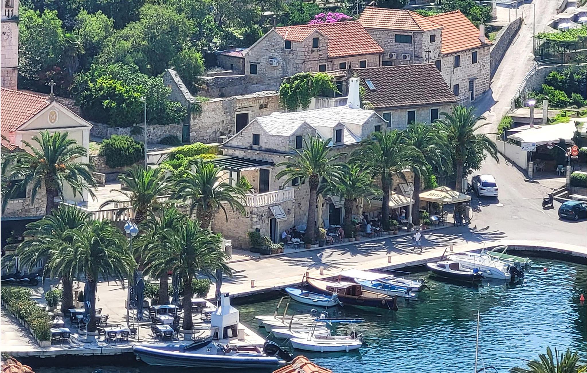 Dette koselige feriehuset på øya Brac har utsikt over havnen i Splitska og ønsker deg velkommen.