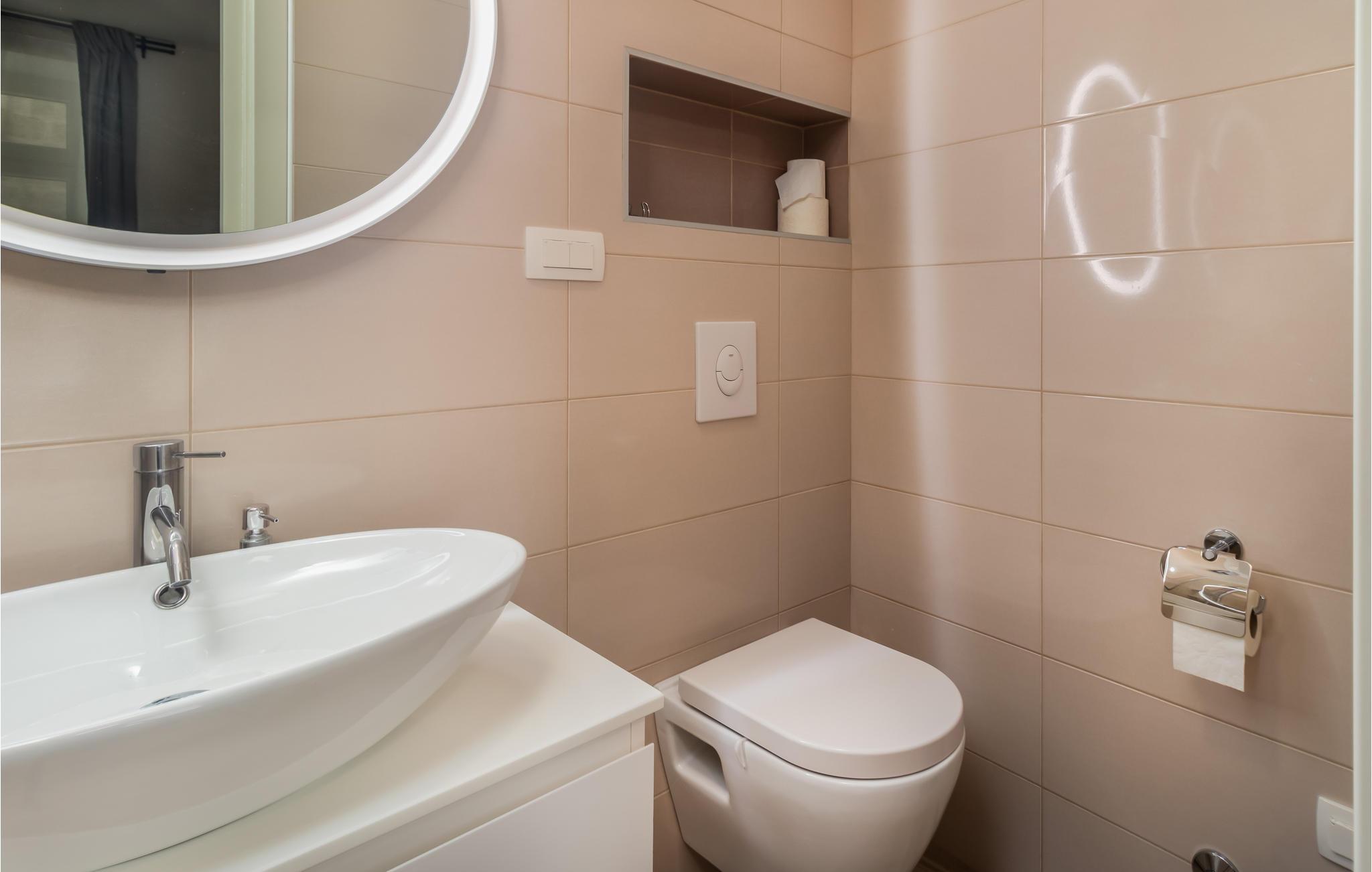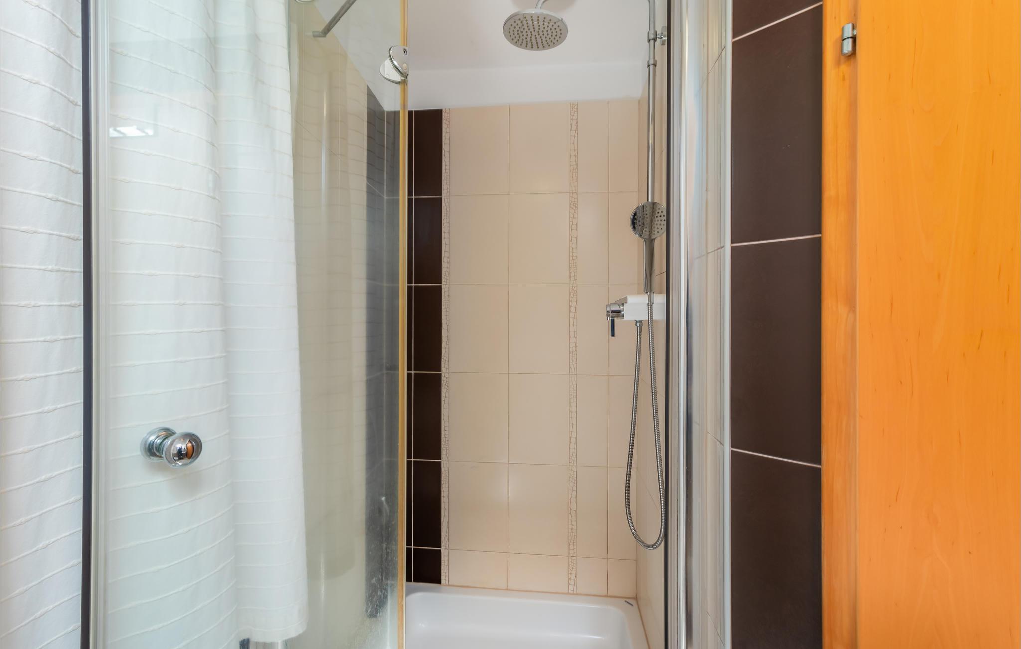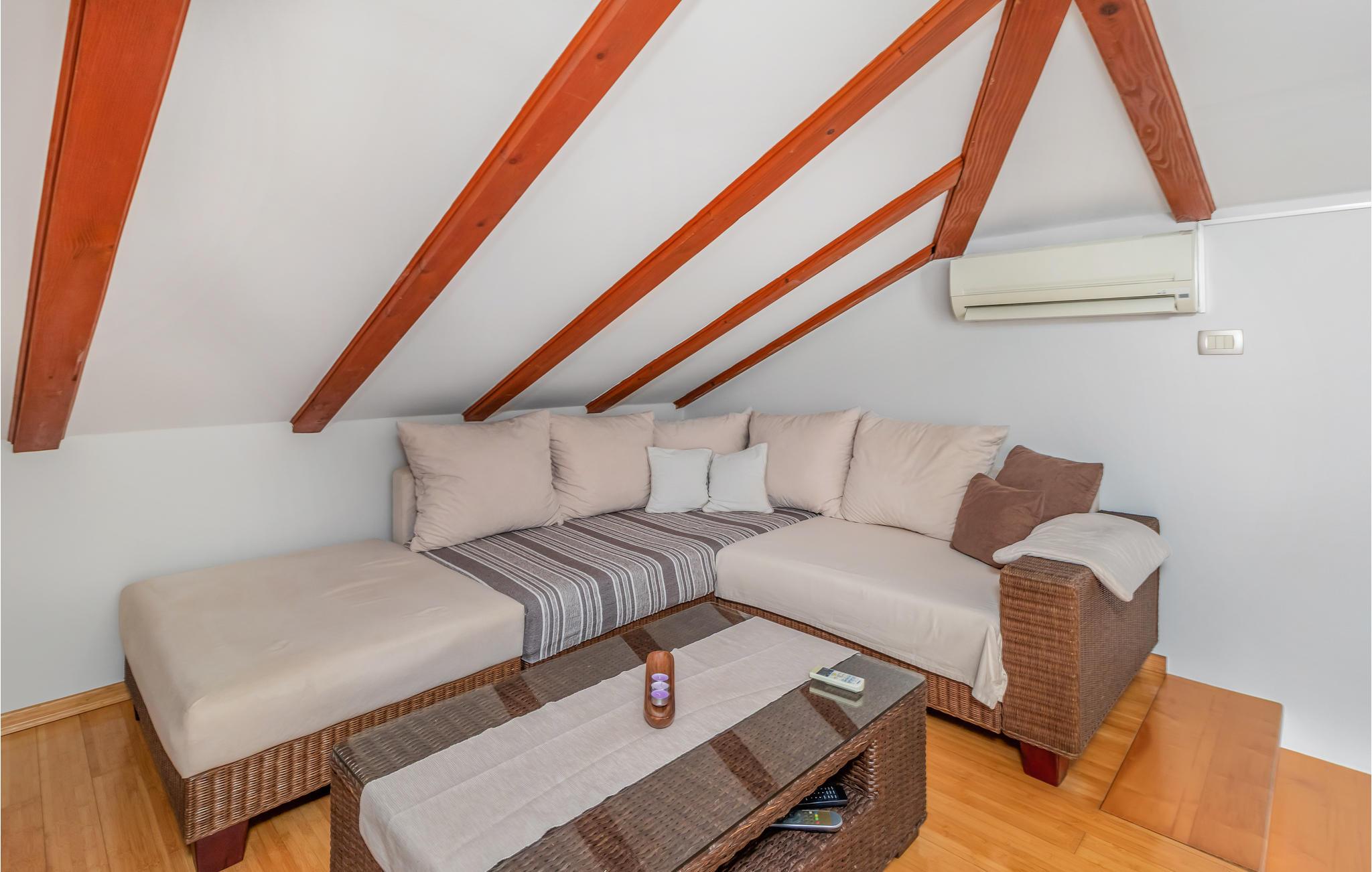 Velkommen til dette moderne og vakre rekkehuset. Kom hit med familien og nyt de komfortable rommene og etasjene som er innredet med synlige elementer fra steinhuset. Interiøret er moderne, lyst og innbydende og innbyr til å legge beina opp. Se frem til to stuer og nyt utsikten fra den øvre terrassen med utsikt over havet og klokketårnet Rab.