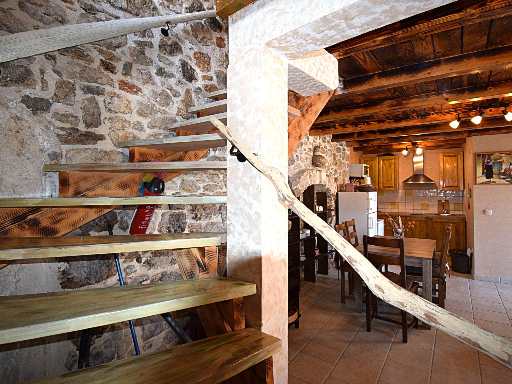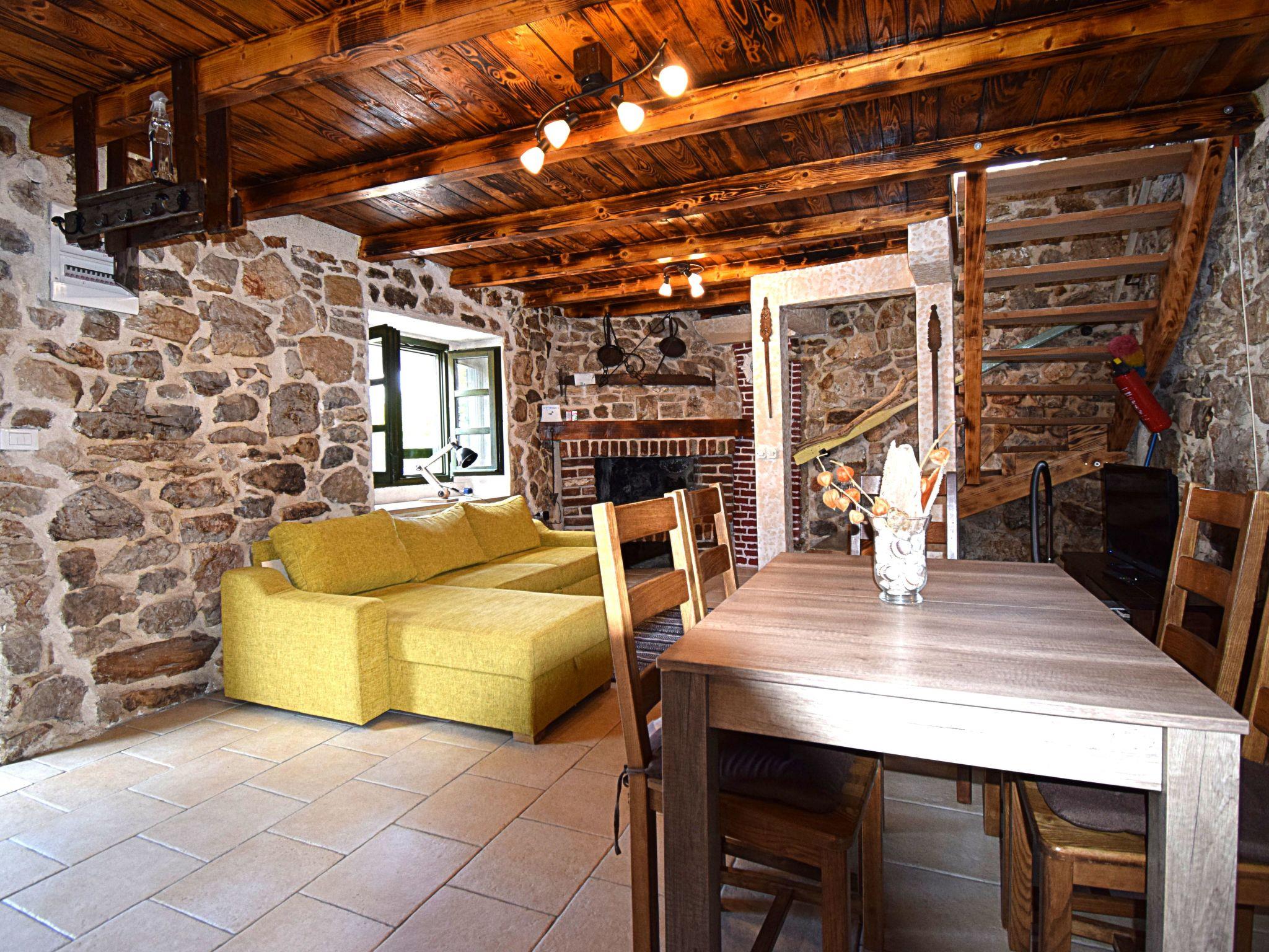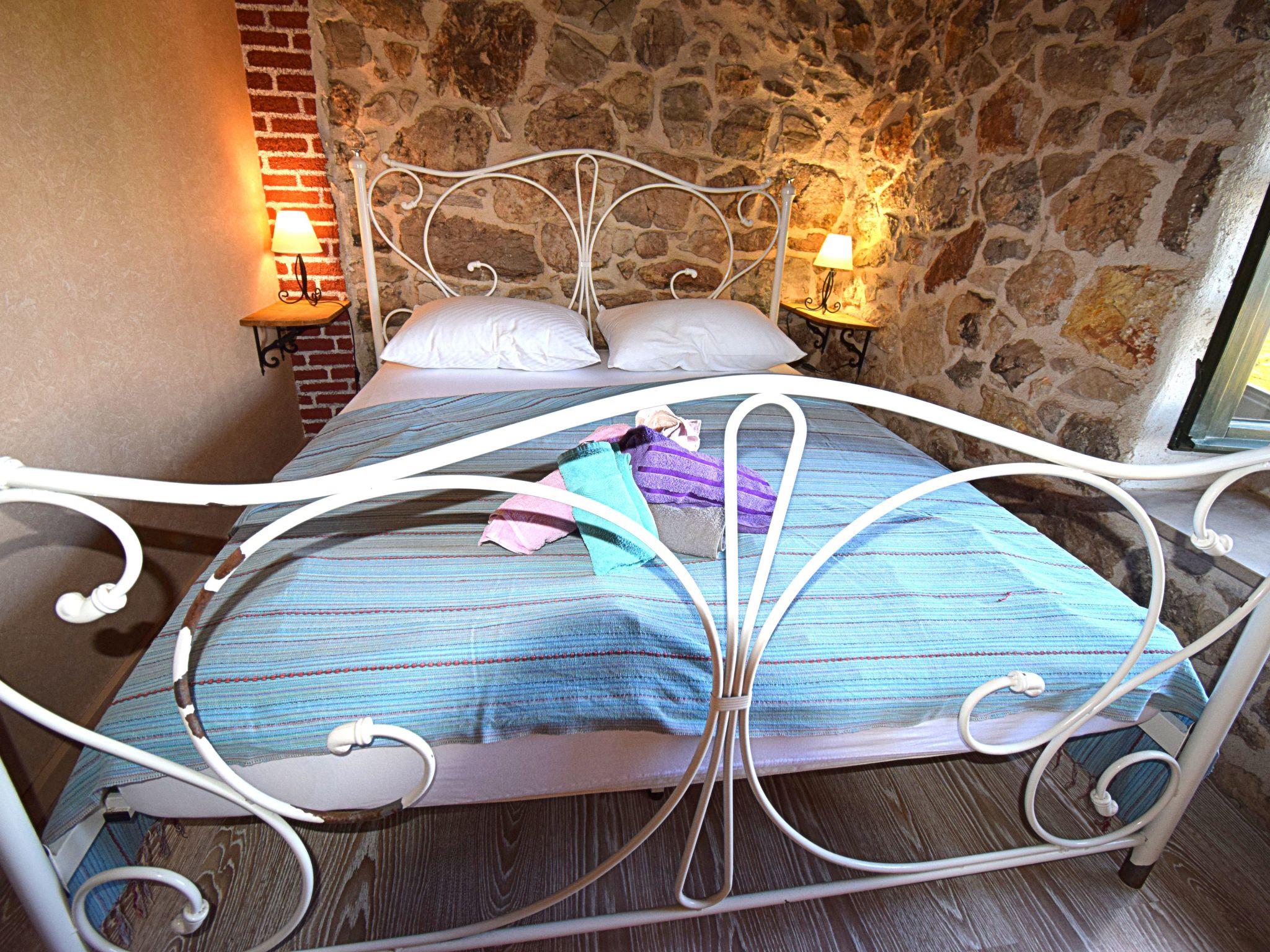The traditional stone house dates back to 1800 and was renovated in 2014. The living space of 75m² can accommodate five adults and one child. The ground floor comprises the living room with a sofa, fireplace and dining space, and the kitchen equipped with a two-ring hob, fridge with freezer compartment, microwave, kettle and dishwasher. There is also a guest WC on the ground floor with a washing machine. The tiled bathroom with a shower and WC, along with the two bedrooms, are on the upper floor. The first bedroom is furnished with a double bed 160cm wide, the second with a double bed 200cm wide, a sofa bed for one person and a free child’s bed. There is an air conditioning unit in the hallway on the upper floor, which cools the house during the warm season and heats it in the spring and autumn.