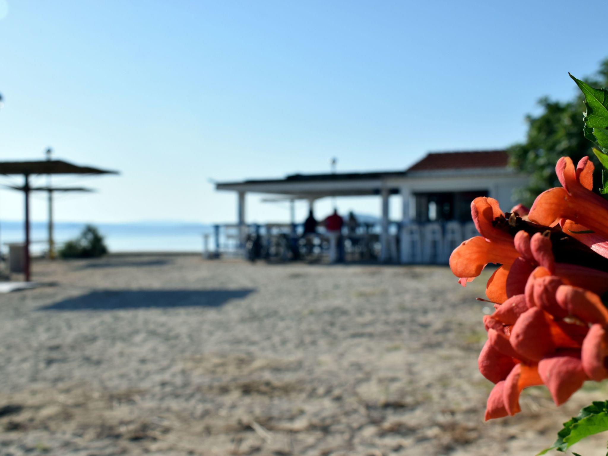 The outdoor area consists of a large, paved terrace and a round pool in the right corner with a diameter of 4 metres. The left part of the terrace has a brick-built grill. The terrace provides garden furniture, a parasol and loungers, where you can relax in the sunshine and the cool breeze with a view of the sea. There are two private parking spaces on site. Near the house, four metres away, there is a vegetable garden that guests are welcome to help themselves to for cooking. The owner will give you a key for the garden and the vegetables for personal use are available for July.
