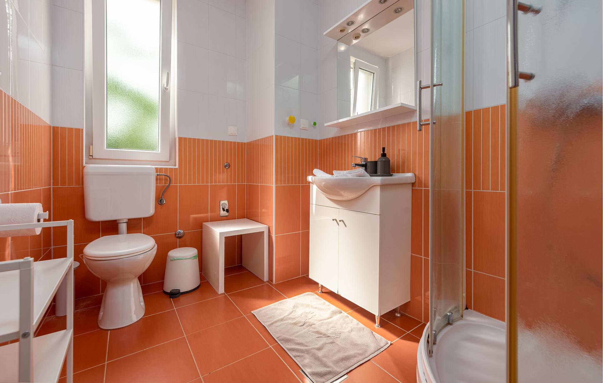- WC med varmt og kaldt vann, Dusj