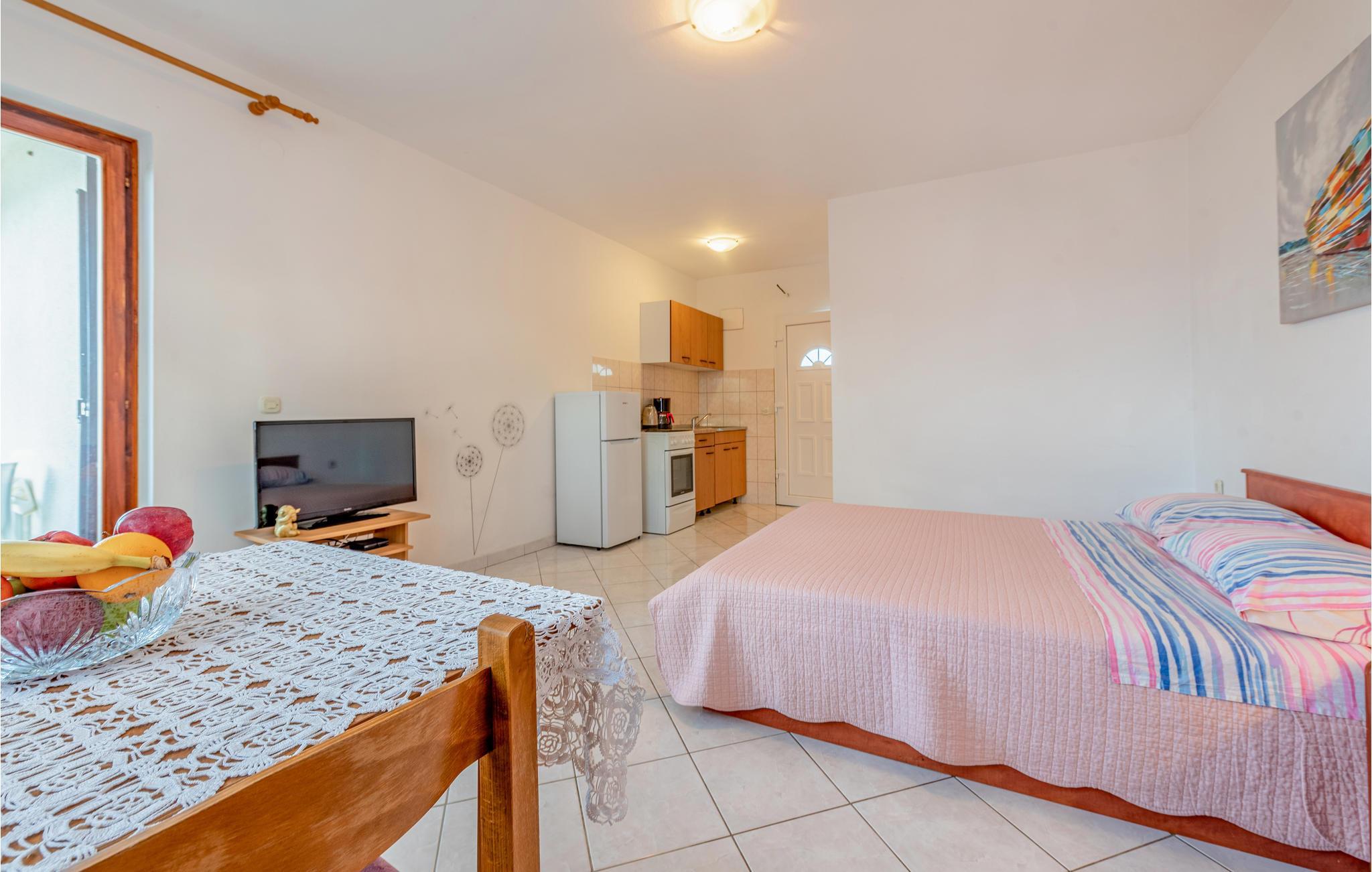 Gled deg til ferien i Kustici og denne koselige ettromsleiligheten i et hus med flere ferieleiligheter. Hvis du reiser med venner eller storfamilien, kan du bestille flere ferieleiligheter. Leilighetene i første etasje og andre etasje er velutstyrte og har alt du trenger for ferien. Føl deg som hjemme i de lyse rommene, og nyt måltidene på den overbygde terrassen.