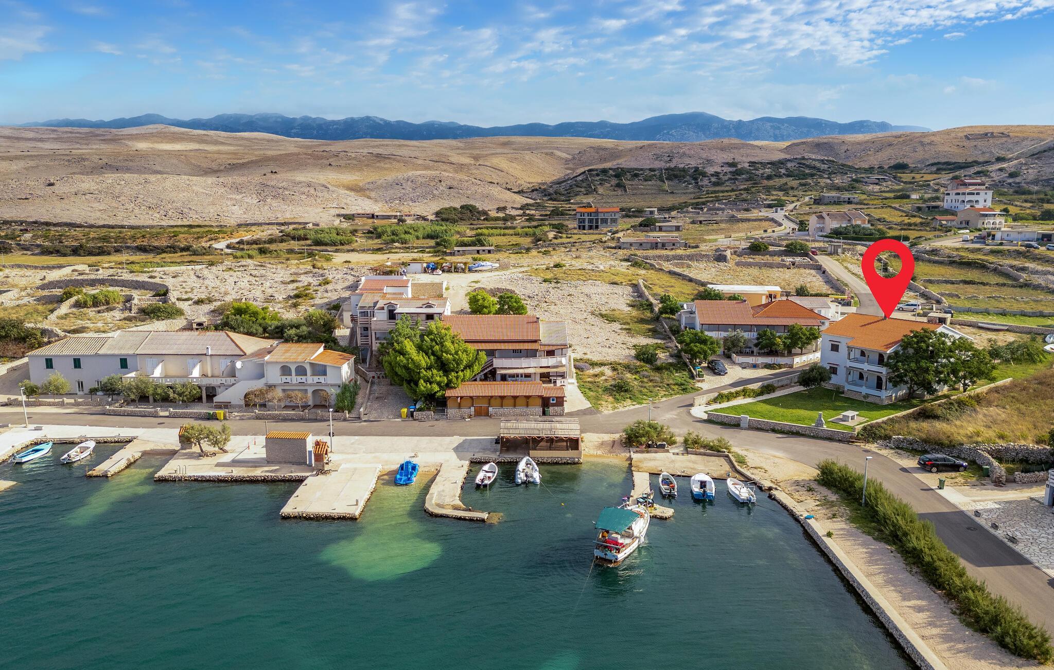 Med havet i sikte kan du spasere til den nærliggende rullesteins- og platåstranden og hoppe ut i det asurblå vannet for en forfriskende dukkert. Landsbyen Kustii, nordøst på øya Pag, er ideell for en avslappende familieferie. Utforsk området rundt, lei en båt og nyt øyas sjarmerende og mangfoldige natur!
