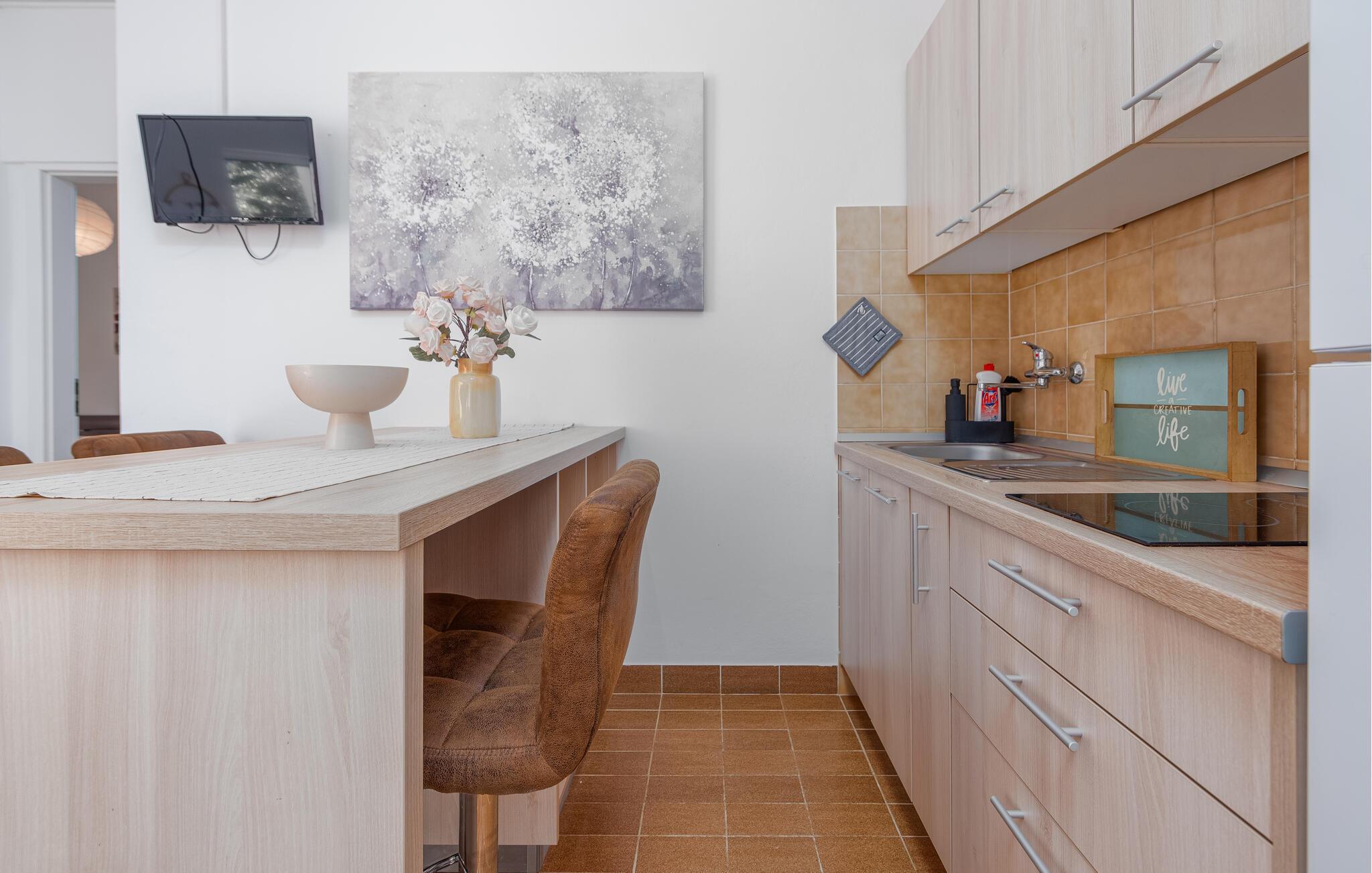 En avslappende ferie venter deg i denne vakkert innredede ferieleiligheten i Povljana i umiddelbar nærhet av det krystallklare havet. Leilighetene i huset er moderne og koselige, og har alt du trenger for et komfortabelt opphold.