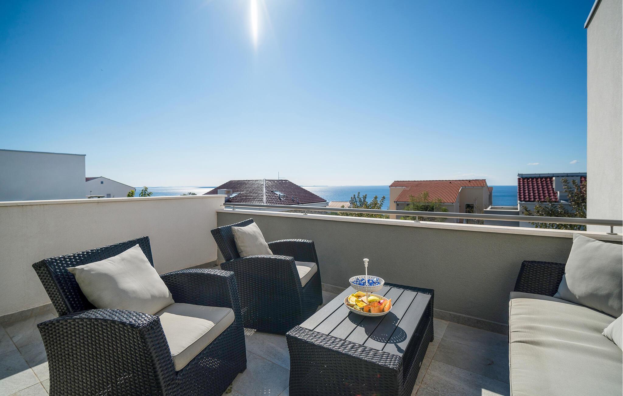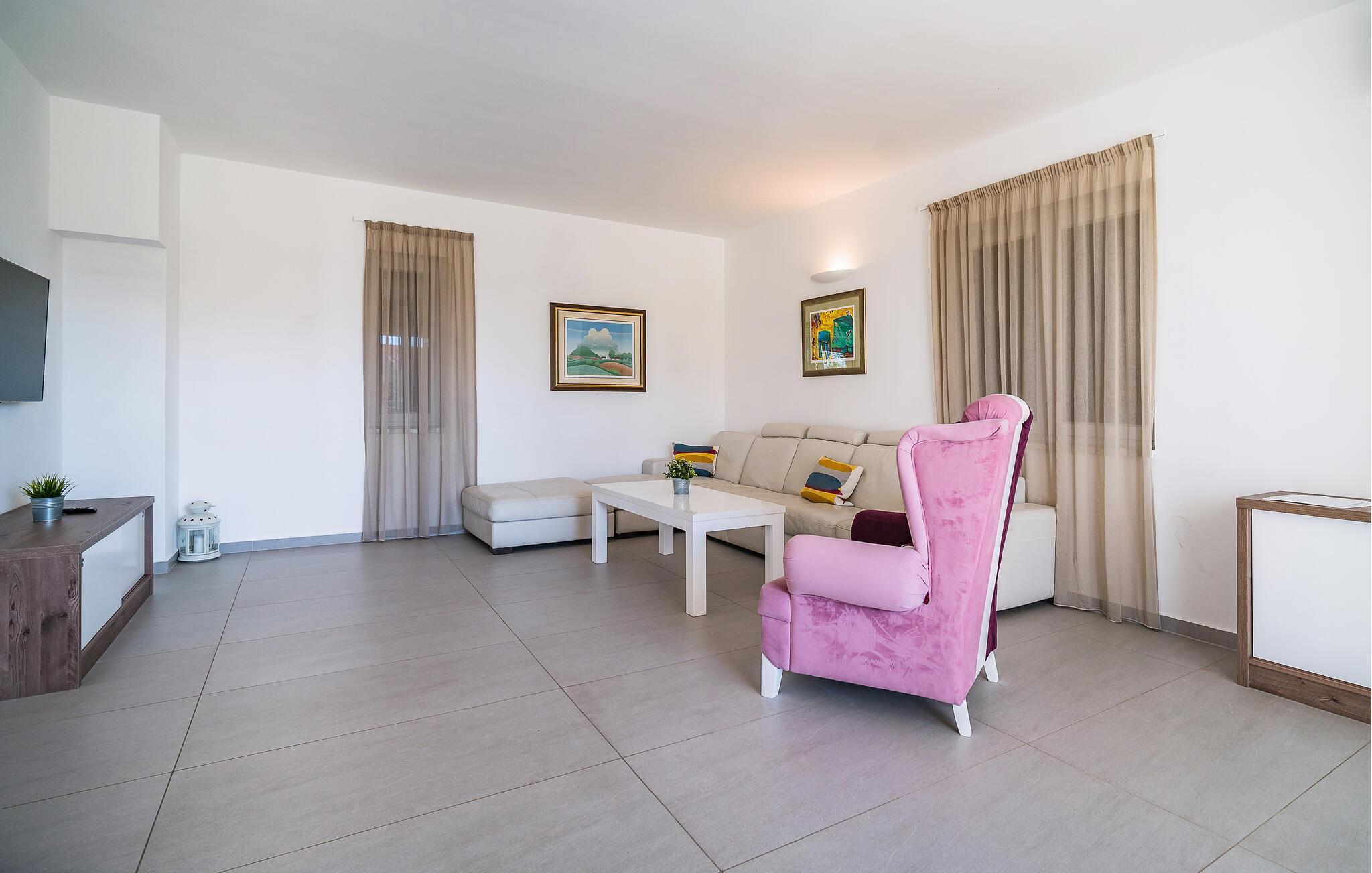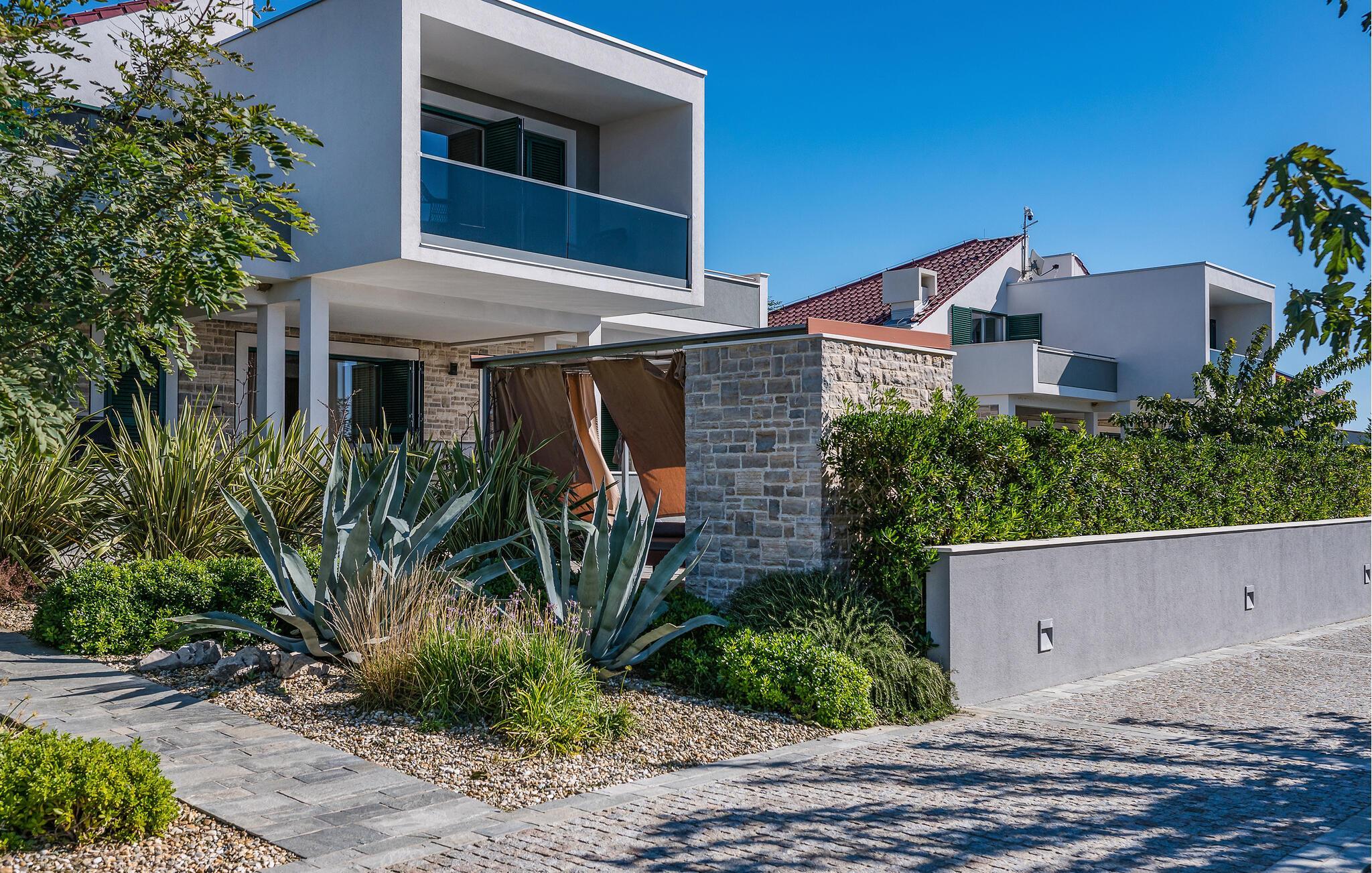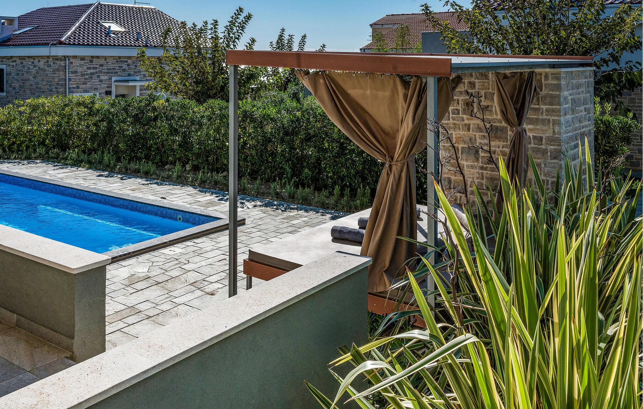 Reis til øya Pag og gled deg til oppholdet i dette store og moderne feriehuset som ikke etterlater noe å savne. Nyt de vakre rommene, som er fordelt over to etasjer og lover deg komfort og attraktive møbler. Når du står opp, kan du gå rett fra soverommet til balkongen og drikke morgenkaffen ute eller slappe av med yogaøvelser. Deretter kan du spise frokost i den åpne stuen og tilbringe de neste timene med å bade i bassenget eller sole deg på solsengen og solstolene.