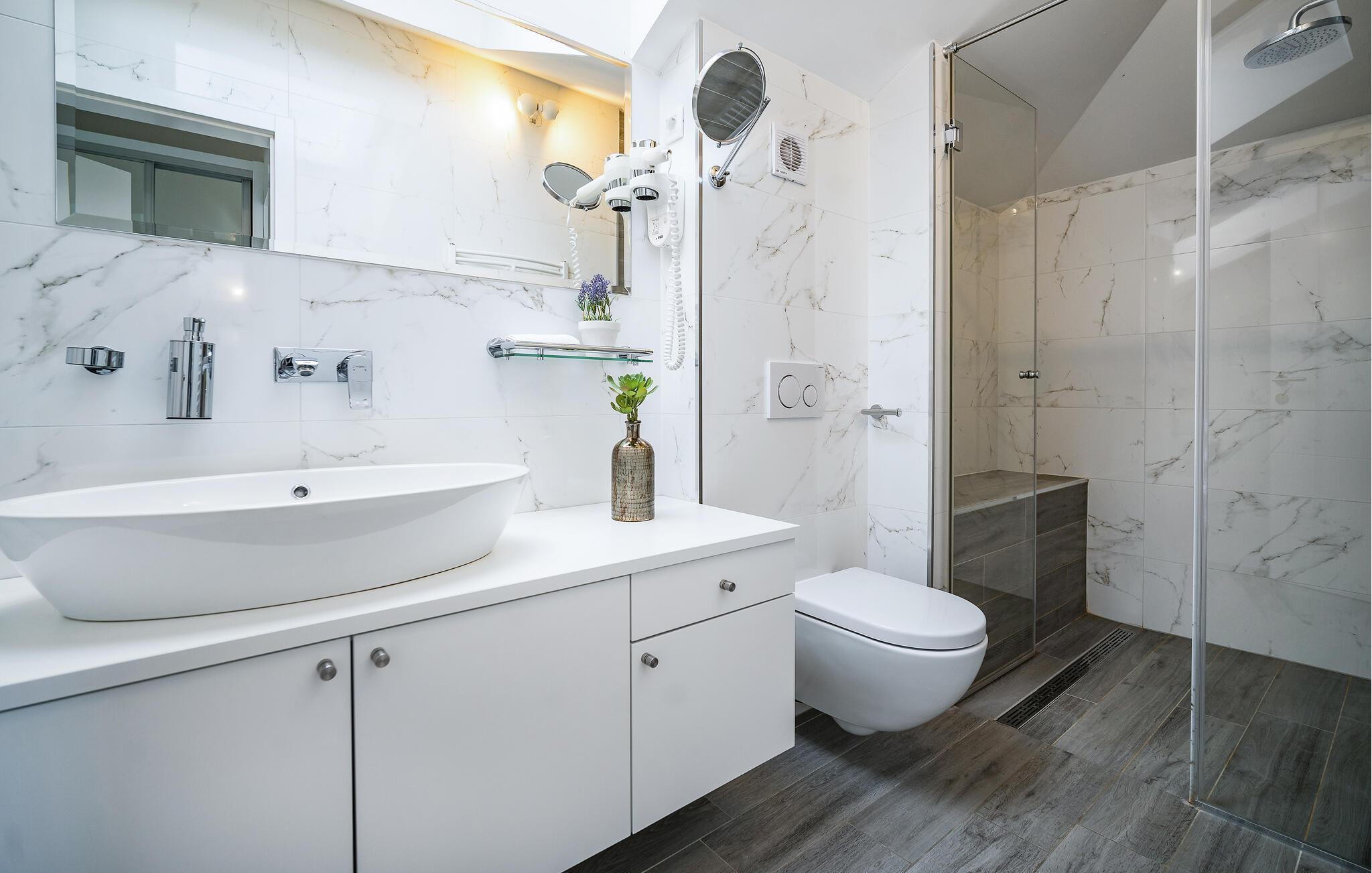 Baderom 6m2 (nr. 1) - WC: Varmt og kaldt vann. Dusj