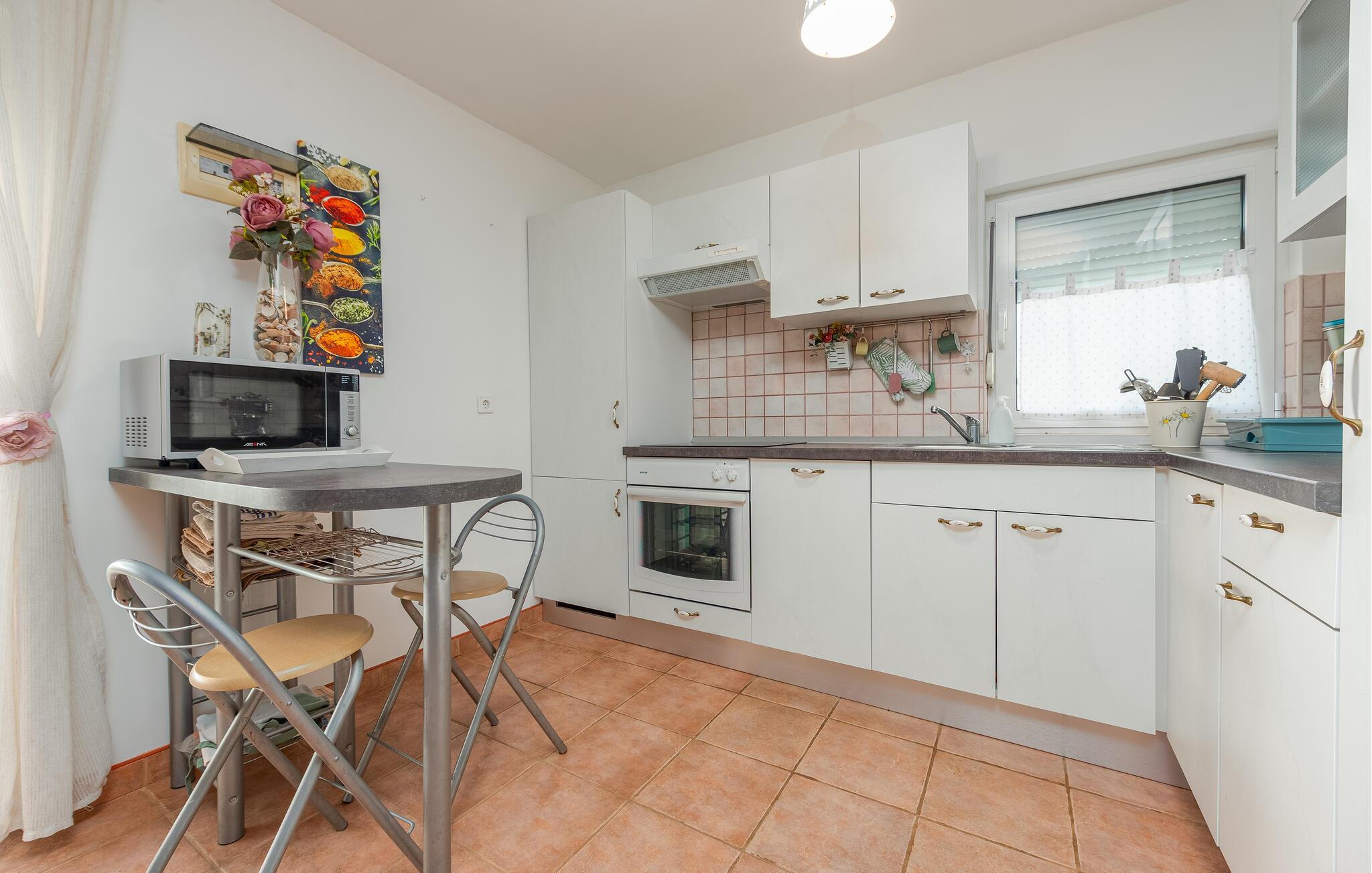 I denne moderne leiligheten, bare en spasertur fra den vakre sandstranden, venter avslappende dager i smakfullt innredede rom. Lag kroatiske spesialiteter på det fullt utstyrte kjøkkenet, og nyt harmoniske stunder med dine kjære, kanskje mens du spiller et brettspill i den komfortable sofaen.