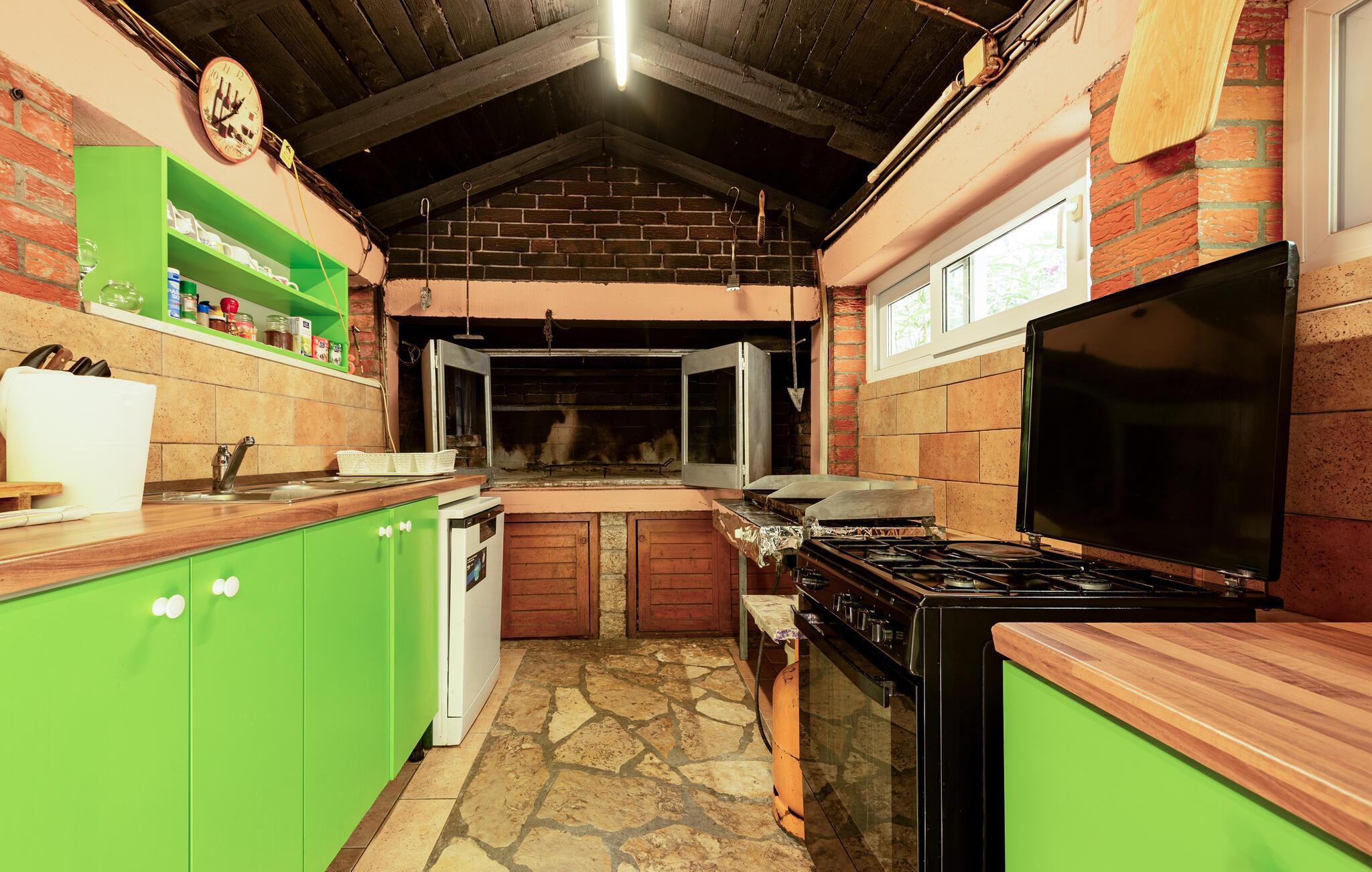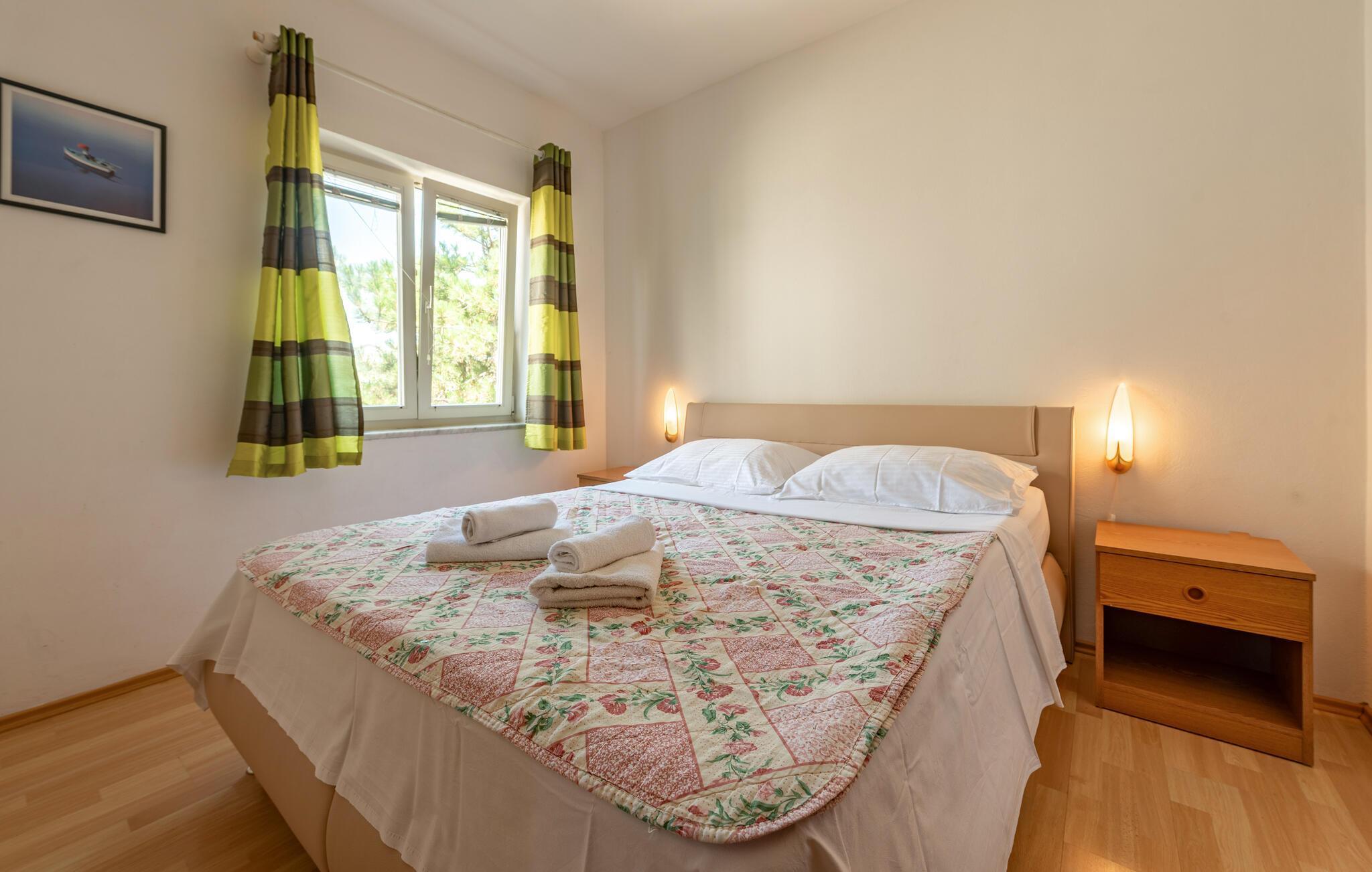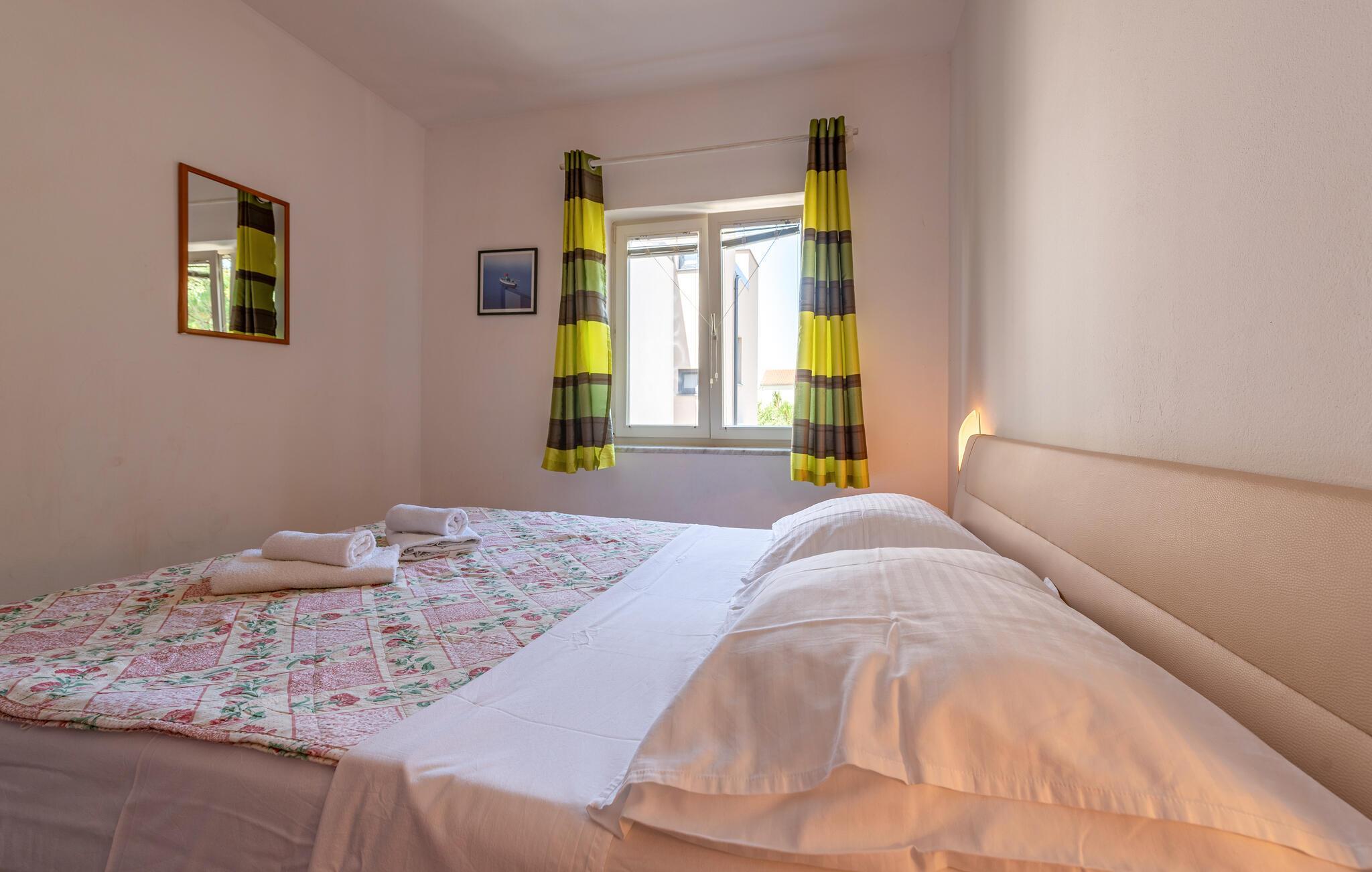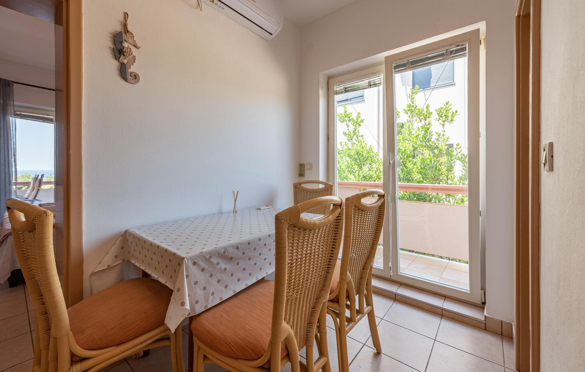 Denne velholdte ferieleiligheten ligger i gangavstand fra en vakker strand, og er ideell for en harmonisk ferie for to eller for en liten familie. Tilbered favorittmåltidene dine på det funksjonelle kjøkkenet og nyt dem i den lyse spiseplassen. Tilbring tid med dine kjære under en spillkveld eller fordyp deg i en god bok.