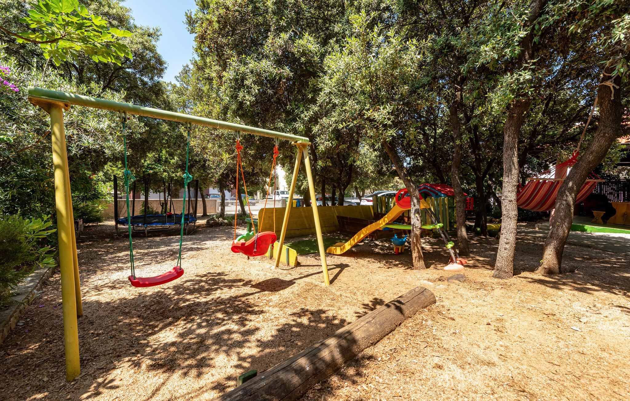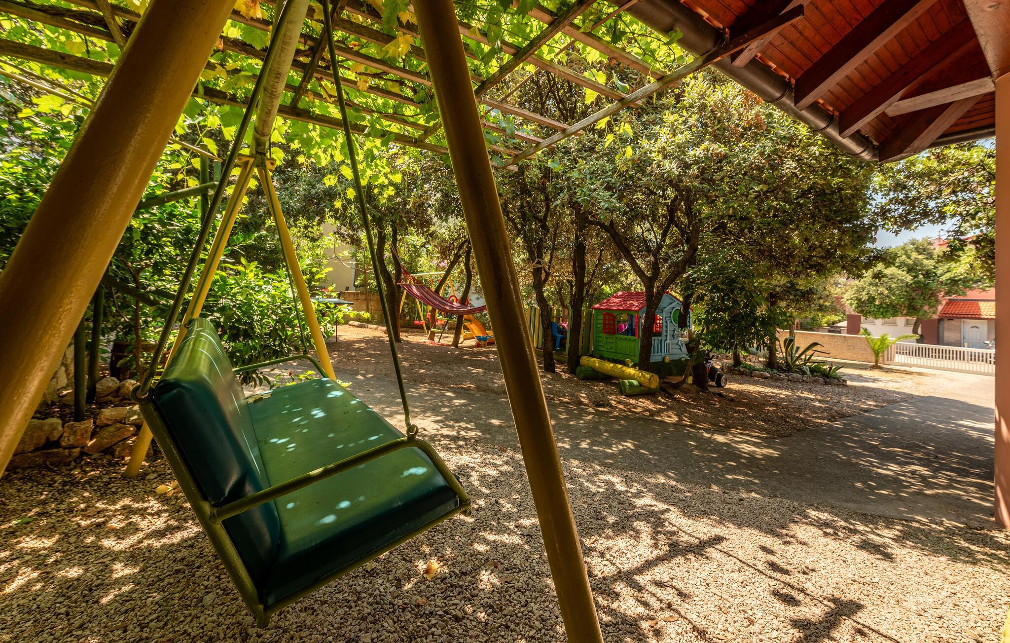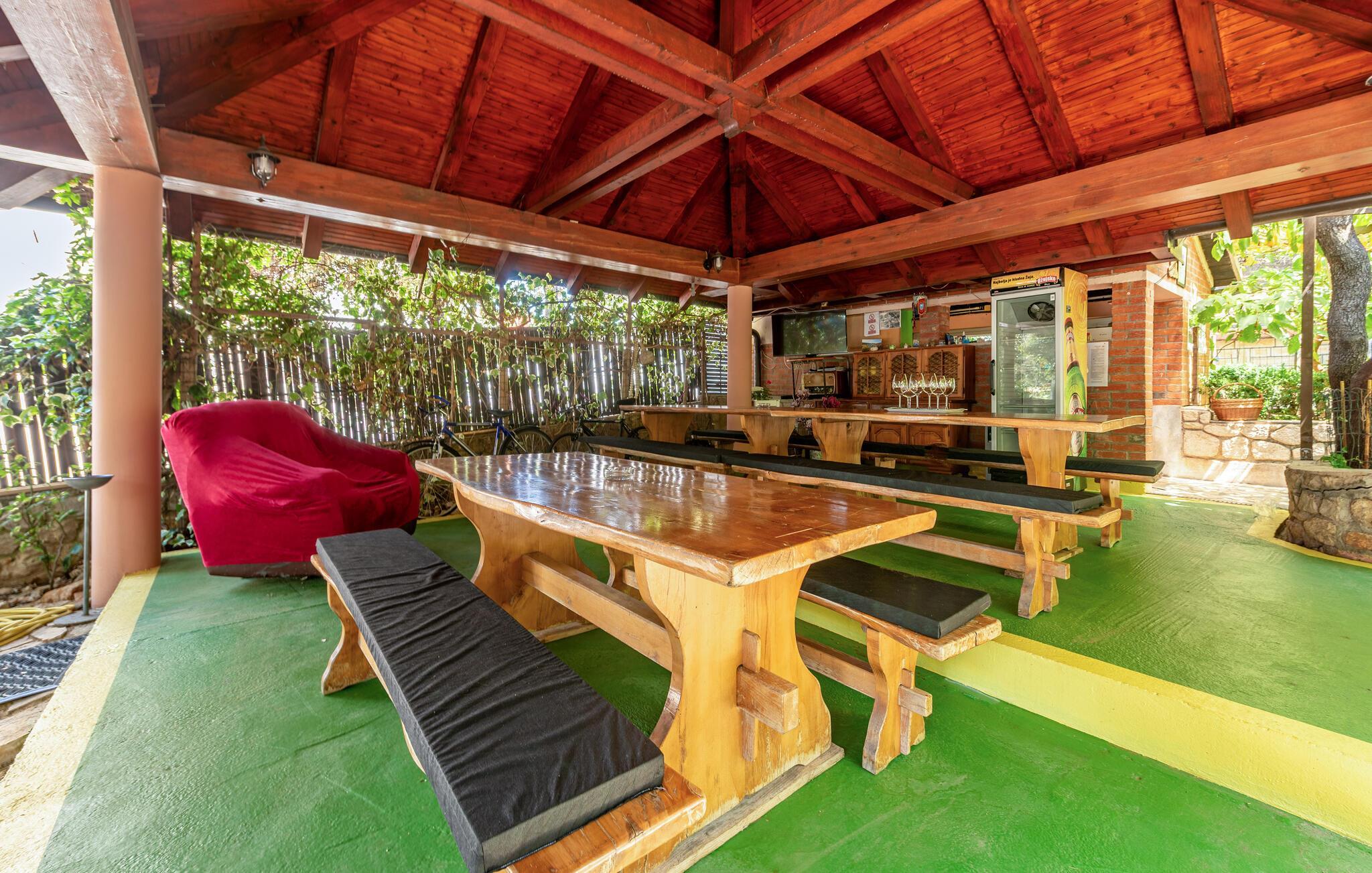 Se frem til deilige måltider på den overbygde terrassen og nyt den vakre havutsikten. Bruk den felles grillen til hyggelige kvelder, møt opp på utekjøkkenet, spill bordtennis, og la barna nyte de mange lekemulighetene på den romslige, skjermede eiendommen.