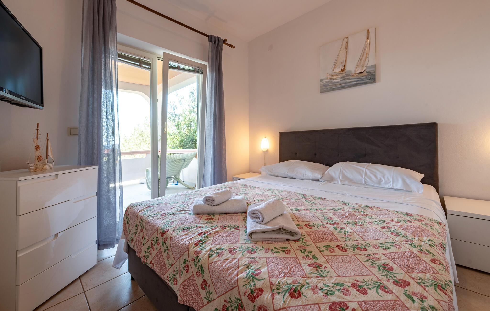 Unn deg et avslappende opphold i denne ferieleiligheten nær stranden med havutsikt.