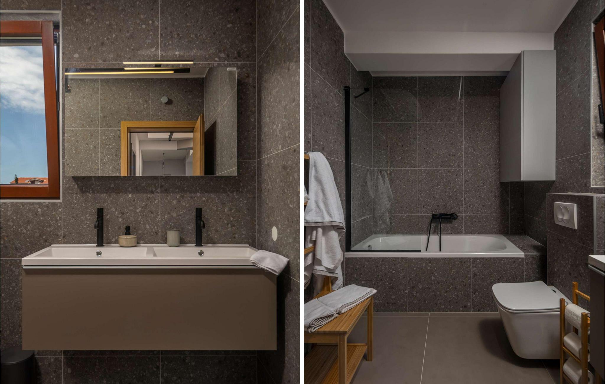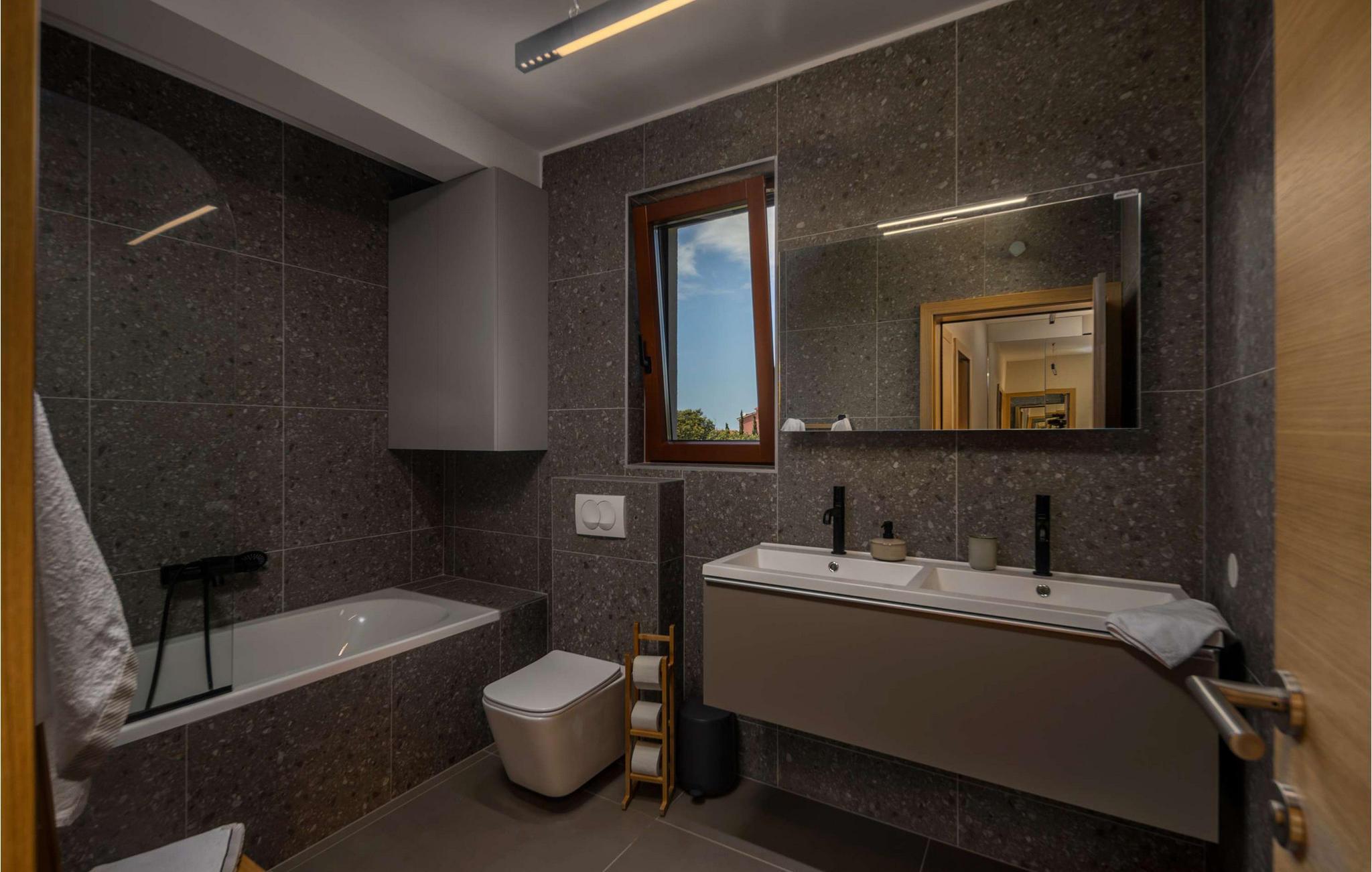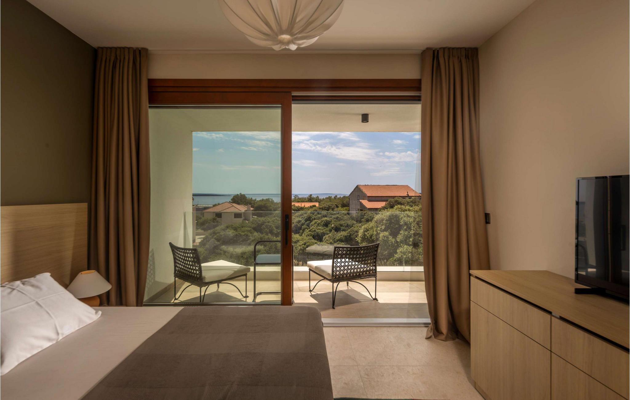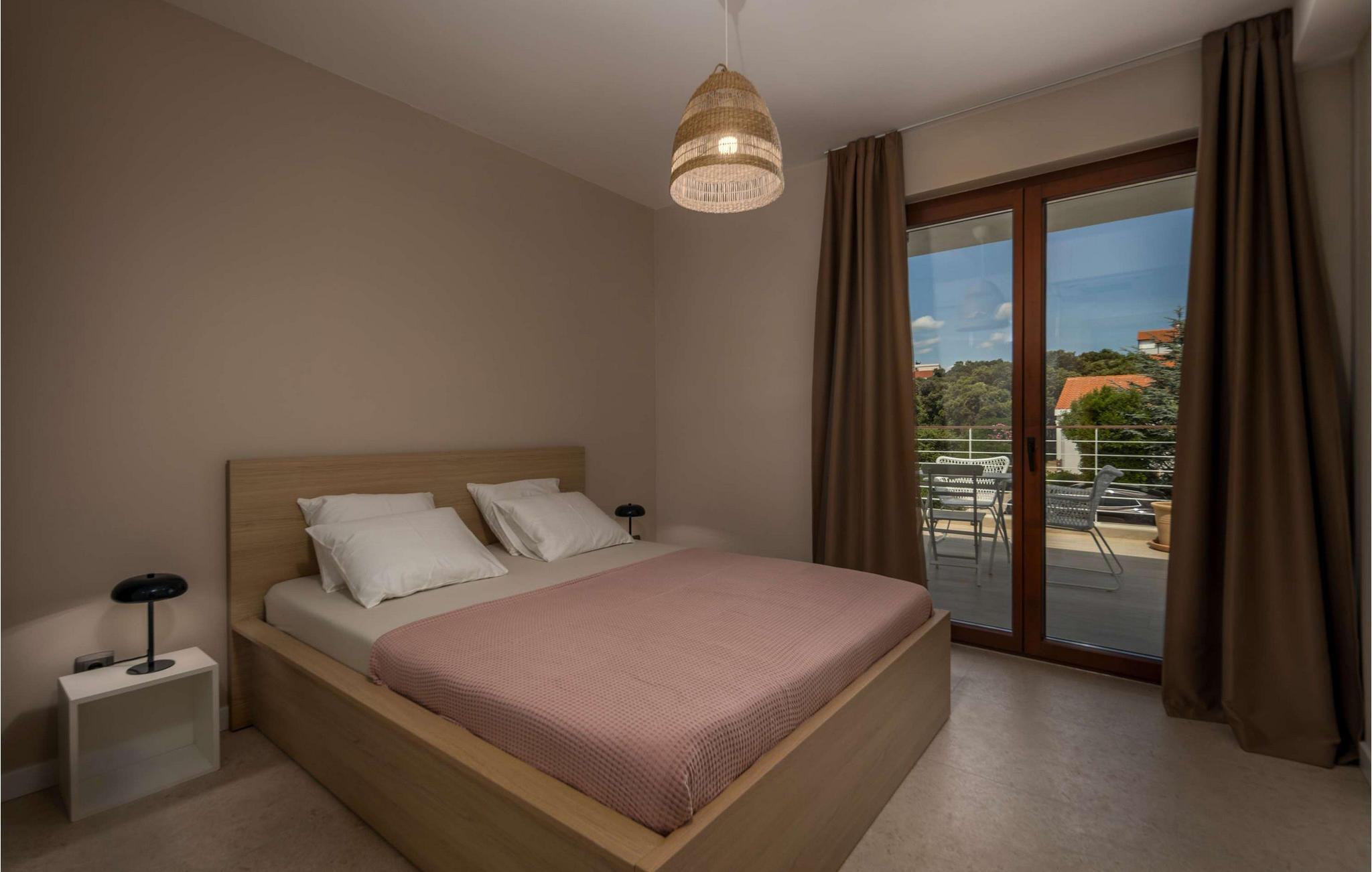 Villa Terakota Mandre ligger på sørsiden av øya Pag, ca. 10 km fra den berømte stranden Zr?e, i byen Mandre. Den vakre utsikten over øyene Silba og Olib og de nærliggende øyene Maun og ?krda, det klare havet og de rene strendene tiltrekker seg besøkende som ønsker å tilbringe en fredelig ferie i naturlige omgivelser. Hvis du ønsker å flykte fra hverdagens kjas og mas og slappe av i selskap med familie og venner, er dette stedet for deg! Villa Terakota Mandre ble bygget i 2022 i en moderne arkitektonisk stil og tilbyr 160 m2 boareal, mens eiendommens totale areal er 450 m2. Ved siden av Villa Terakota Mandre ligger Villa Oliva Mandre, som også kan bookes separat og gir deg absolutt privatliv under oppholdet. Villa Terakota Mandre har plass til maksimalt 8 personer, og det optimale antallet gjester er 6. Villaen har aircondition og består av en første etasje og en overetasje. I første etasje er det en stue med sofa, lenestol, et lite bord og TV, og i det moderne utstyrte kjøkkenet og spisestuen med bord til 8 personer kan du tilberede og nyte deilige måltider. Ovenpå bor du komfortabelt i 3 soverom med dobbeltsenger og to bad, hvorav det ene har badekar og det andre eget bad med dusjkabinett. Fra soverommene, terrassen og kjøkkenet kan du nyte utsikten over det rene og klare Adriaterhavet. På utendørsterrassen er det et oppvarmet svømmebasseng på 32 m2 og med en dybde på 1,2 ? 1,8 m. Du kan sole deg på 4 solsenger og tilberede måltidene dine ikke bare i villaen, men også på terrassen, der det er en utendørs kull- eller vedgrill. Om kveldene kan du selvfølgelig også sette deg til rette på terrassen i utesofaen eller ved det utendørs spisebordet med 6 sitteplasser. Andre fasiliteter inkluderer vaskemaskin, tørketrommel og strykejern, samt et separat toalett. Hvis du skal ha med deg barn på ferie, er det både matbrett og barneseng tilgjengelig. Sofaen i stuen kan brukes som ekstraseng for to personer. Gårdsplassen til Villa Terakota Mandre er fullstendig inngjerdet og har 2 private parkeringsplasser. Barna har god plass til å leke og ha det gøy, og det er også en vakkert anlagt hage og mye grønt på gårdsplassen. Restauranter og kafeer langs kysten, jevnlige temaarrangementer som fiskefestivaler og vertskapets gjestfrihet bidrar til å gjøre din og familiens ferie i Mandre fredelig og romantisk. I en liten bukt i sentrum av Mandri ligger stranden Mala Mandra, som har hatt Blått flagg siden 2006. Denne unike stein- og rullesteinstranden er egnet for både barn og funksjonshemmede på grunn av den gode tilgangen til sjøen. Unn deg selv en drømmeferie og nyt oppholdet på Villa Terakota Mandre! Velkommen til Villa Terakota Mandre! Kjæledyr er tillatt på dette overnattingsstedet etter eierens skjønn eller mot en avgift.
