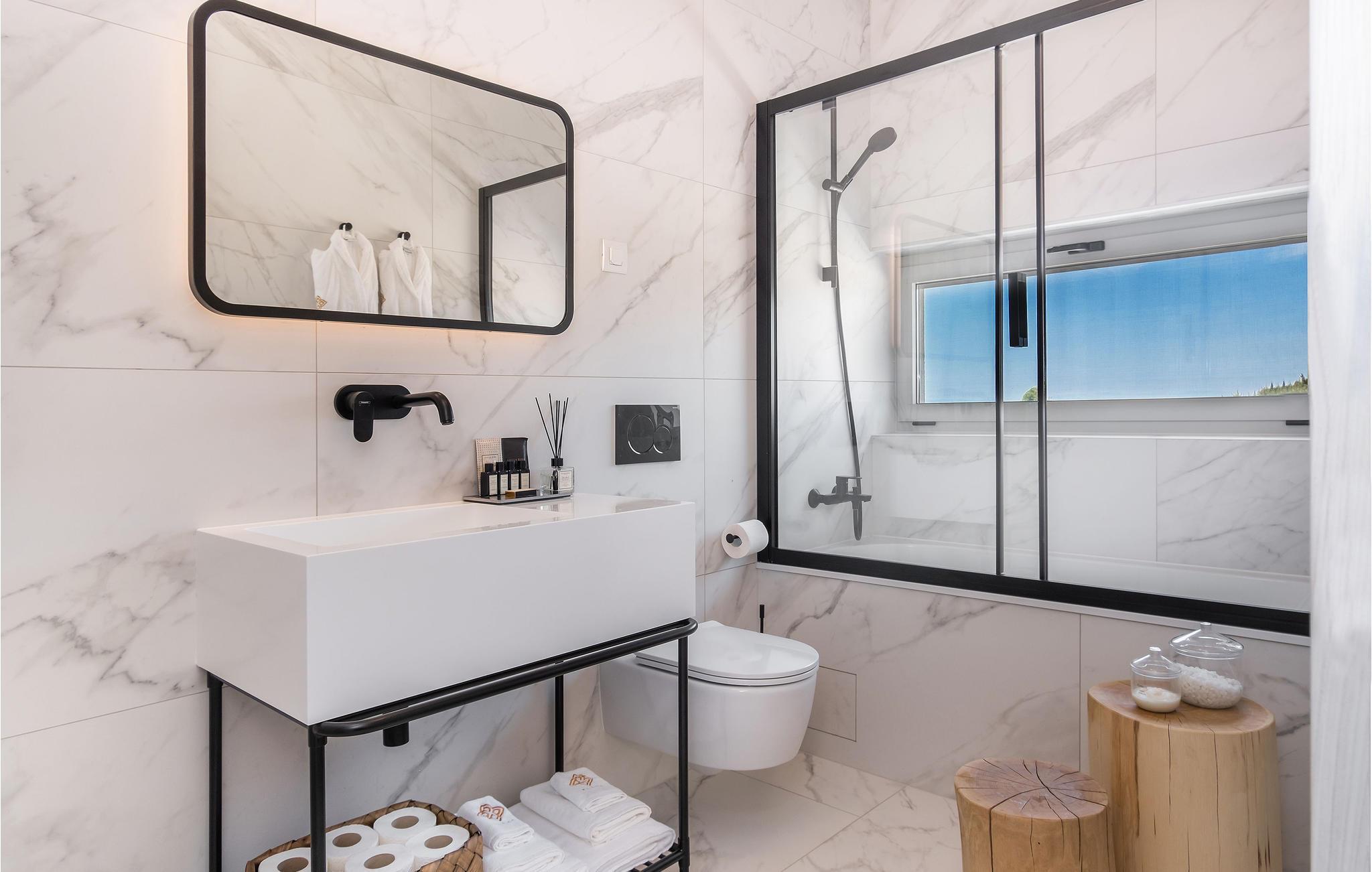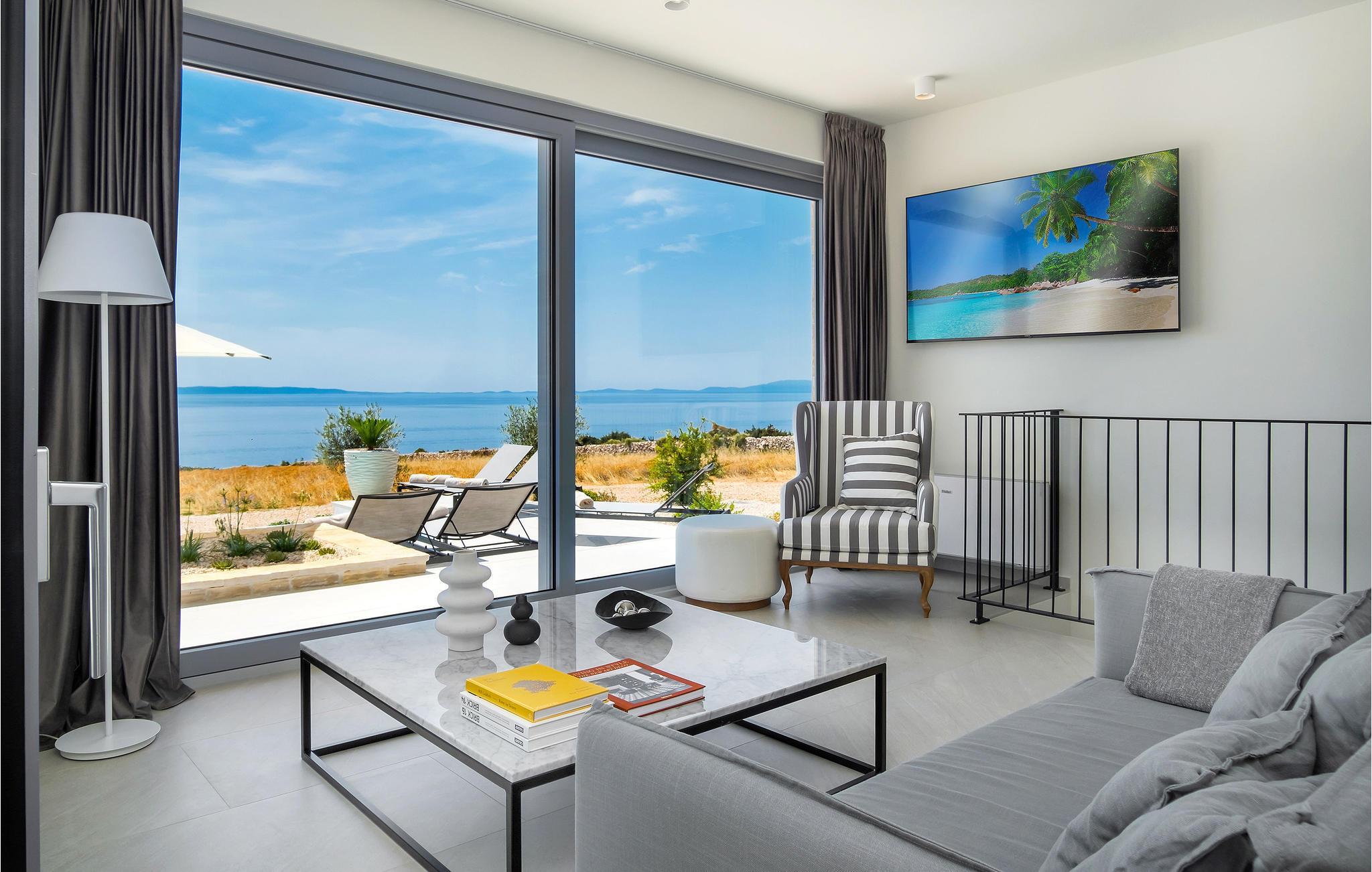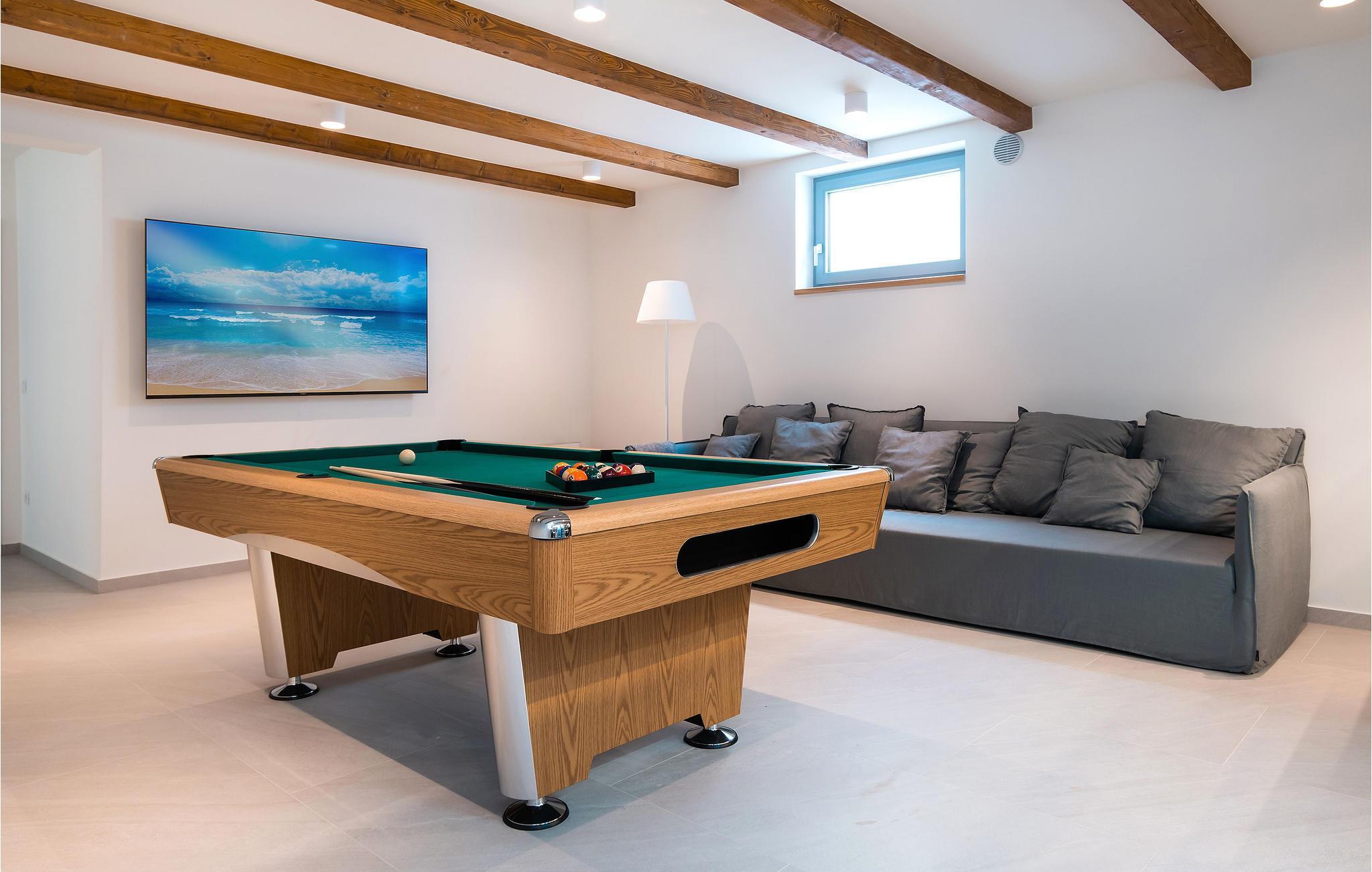 På øya Pag ønsker dette praktfulle huset deg velkommen i en drømmeaktig beliggenhet. Innvendig finner du møblerte rom av høy kvalitet som gir et veldig stilig inntrykk. Overalt imponerer huset med gjennomtenkte løsninger og materialer av høy kvalitet. Tilbered delikatessene dine i det tiltalende kjøkkenet med utsikt over omgivelsene eller slapp av i sofaen med ferielesningen din, hvorfra du kan nyte en vakker utsikt over omgivelsene, og bare noen få skritt skiller deg fra et dykk i utendørsbassenget. Aktivitetsrommet inviterer deg til å spille biljard, og hvis du foretrekker å se på, kan du sette deg godt til rette i sofaen med en avkjølt drink etter eget valg.