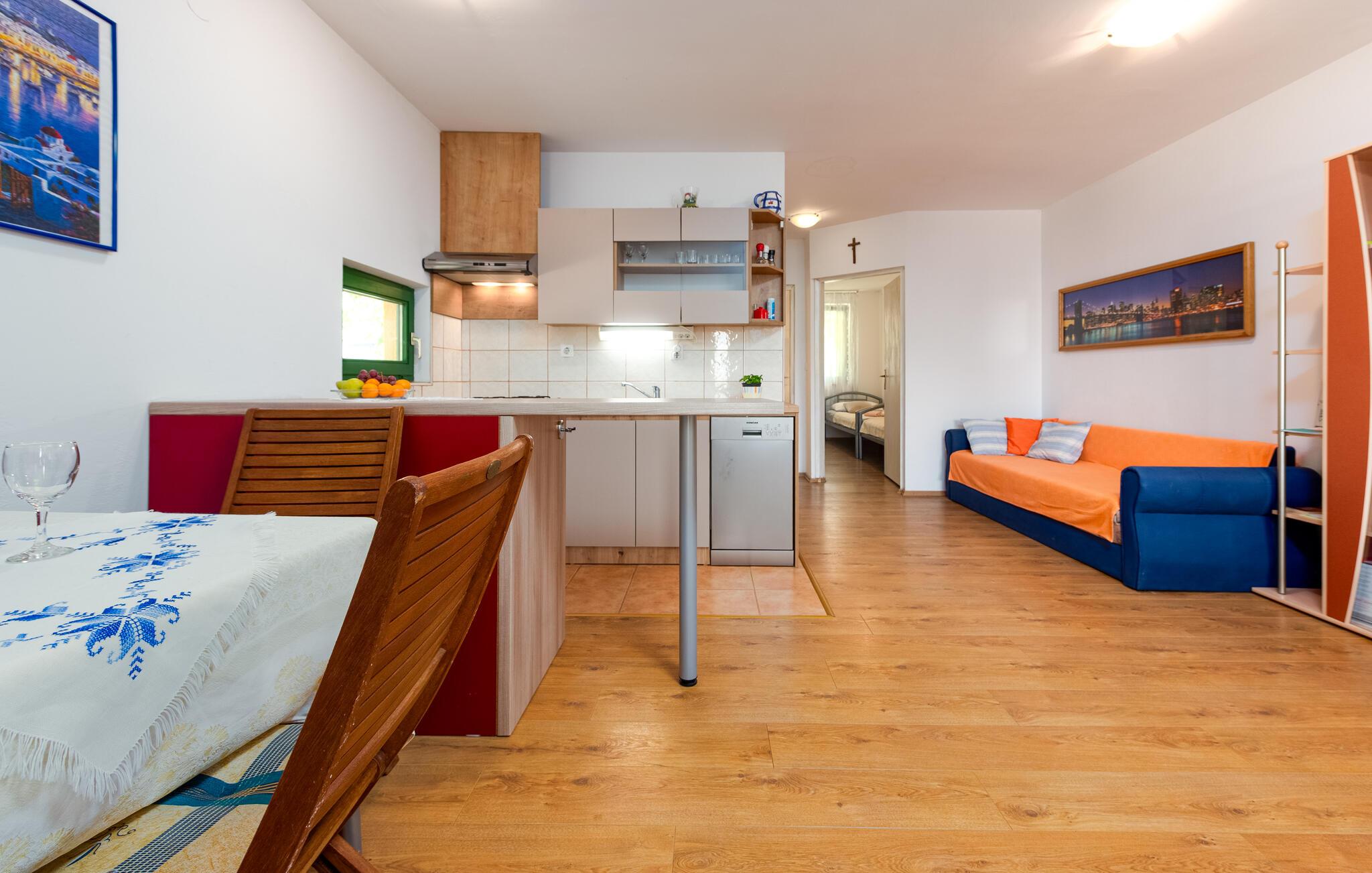 Dette huset med tre ferieleiligheter ligger i den lille landsbyen Potonica på øya Pag. I første etasje ligger den romslige boligen CKP391 med en vakker overbygd terrasse, og i andre etasje ligger CKP392 og CKP393. Ta en spasertur til den lille bukten med en skjult strand. Allsidigheten på øya Pag er tydelig, ikke bare i det rike gastronomiske tilbudet, men også i den interessante kulturen og tradisjonen. Pags kniplinger, også kjent som hvitt gull, står på UNESCOs liste over immateriell kulturarv. På Zre-stranden kan du nyte festivaler med DJ-er som spiller elektronisk musikk.