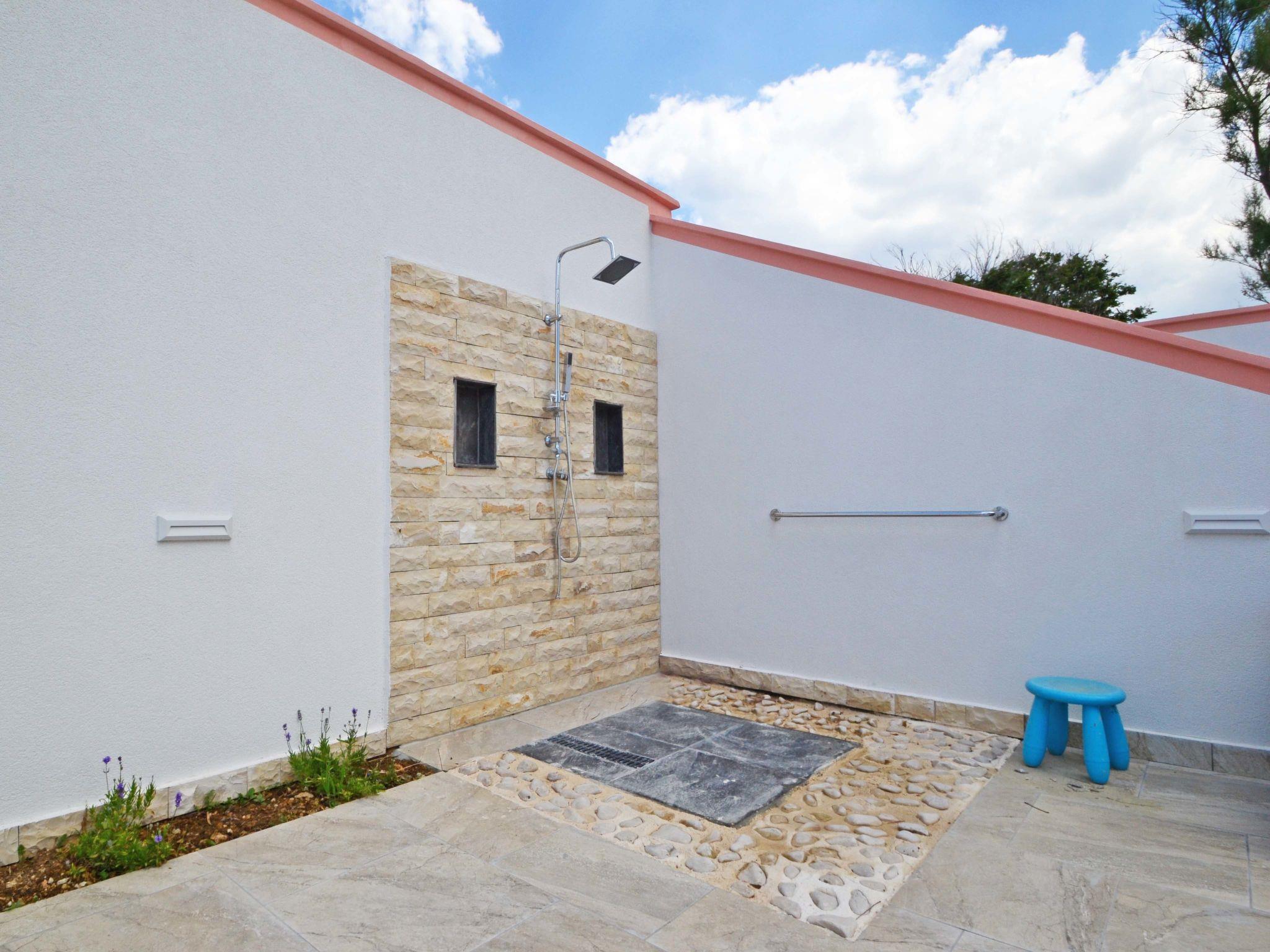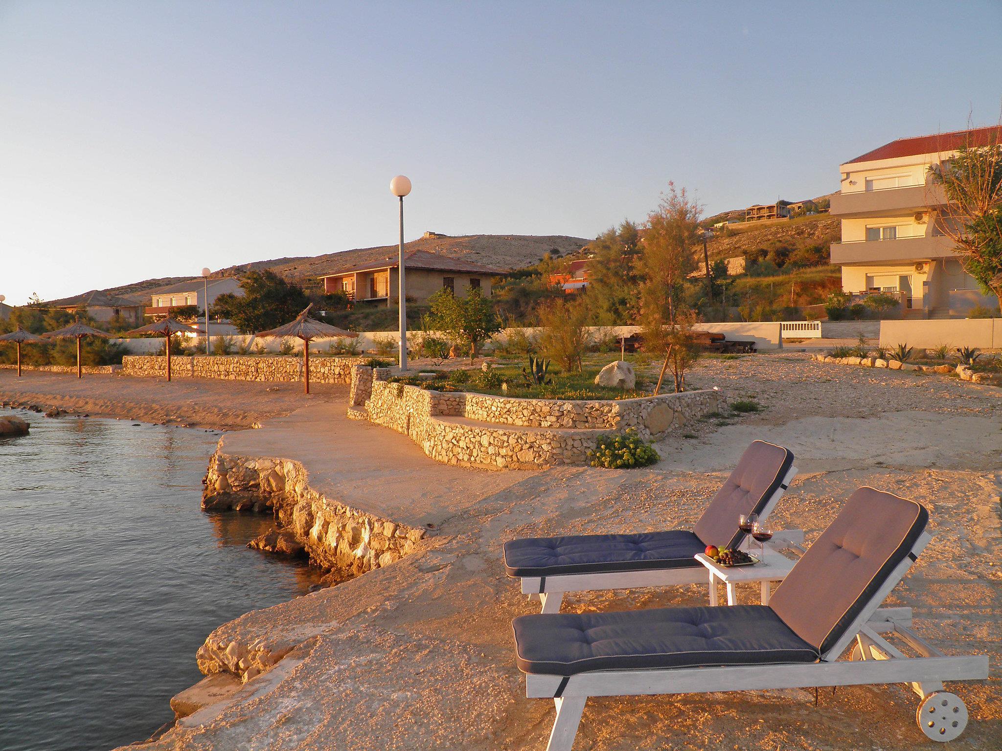 Beautiful apartment house "Melandura", 3 storeys. 14 km from the centre of Pag, in a quiet, sunny, elevated position, 130 m from the sea, 130 m from the beach, in a cul-de-sac, in the countryside. Private: property 500 m2, swimming pool (11 x 4 m, depth 80 - 150 cm, seasonal availability: 25.Apr. - 26.Sep.) with internal staircase. Outdoor shower, table tennis, terrace, garden furniture, barbecue. In the house: internet access, fitness room, washing machine (extra). Available: canoe (extra). Parking at the house on the premises. Shop 450 m, restaurant 130 m, bus stop 16 km, sandy beach, pebble beach 130 m. Nearby attractions: NP Paklenica 50 km, NP Krka 90 km. Private: outdoor kitchen (dining table, 4 hotplates, oven, refrigerator, 3 sinks, kettle, filter coffee, bar). House consists of 10 apartments, rented as one unit, 4 apartments in the upper ground floor, 4 apartments on 1st floor and 2 apartments on the top floor. In the lower ground floor of the house tavern with open-hearth place, dining table, terrace furniture and kitchen (4 hot plates, oven, 2 fridges, microwave, electric coffee machine). Motor boat of the house owner can be hired (extra). Possibility of fishing with the house owner (extra).