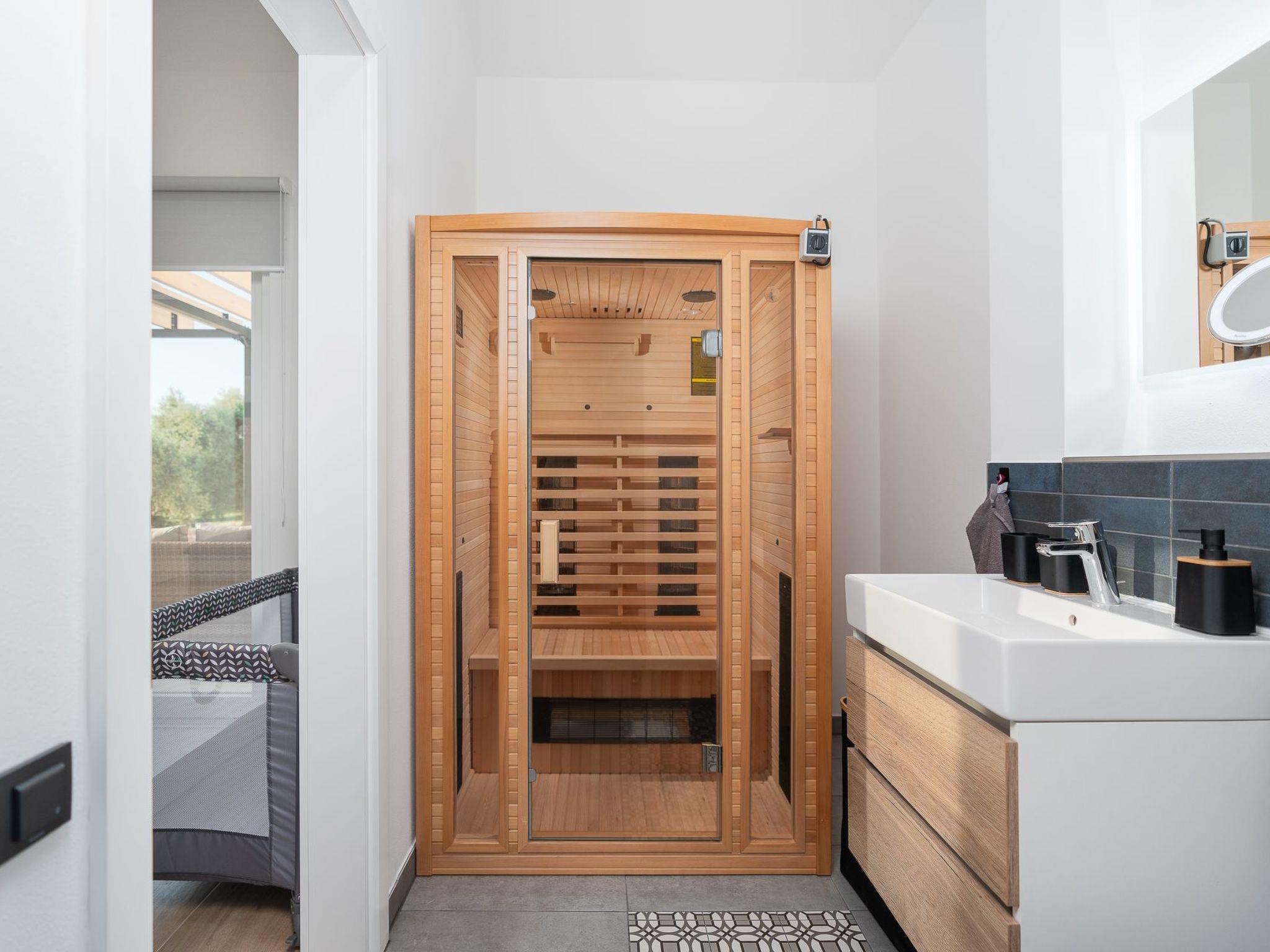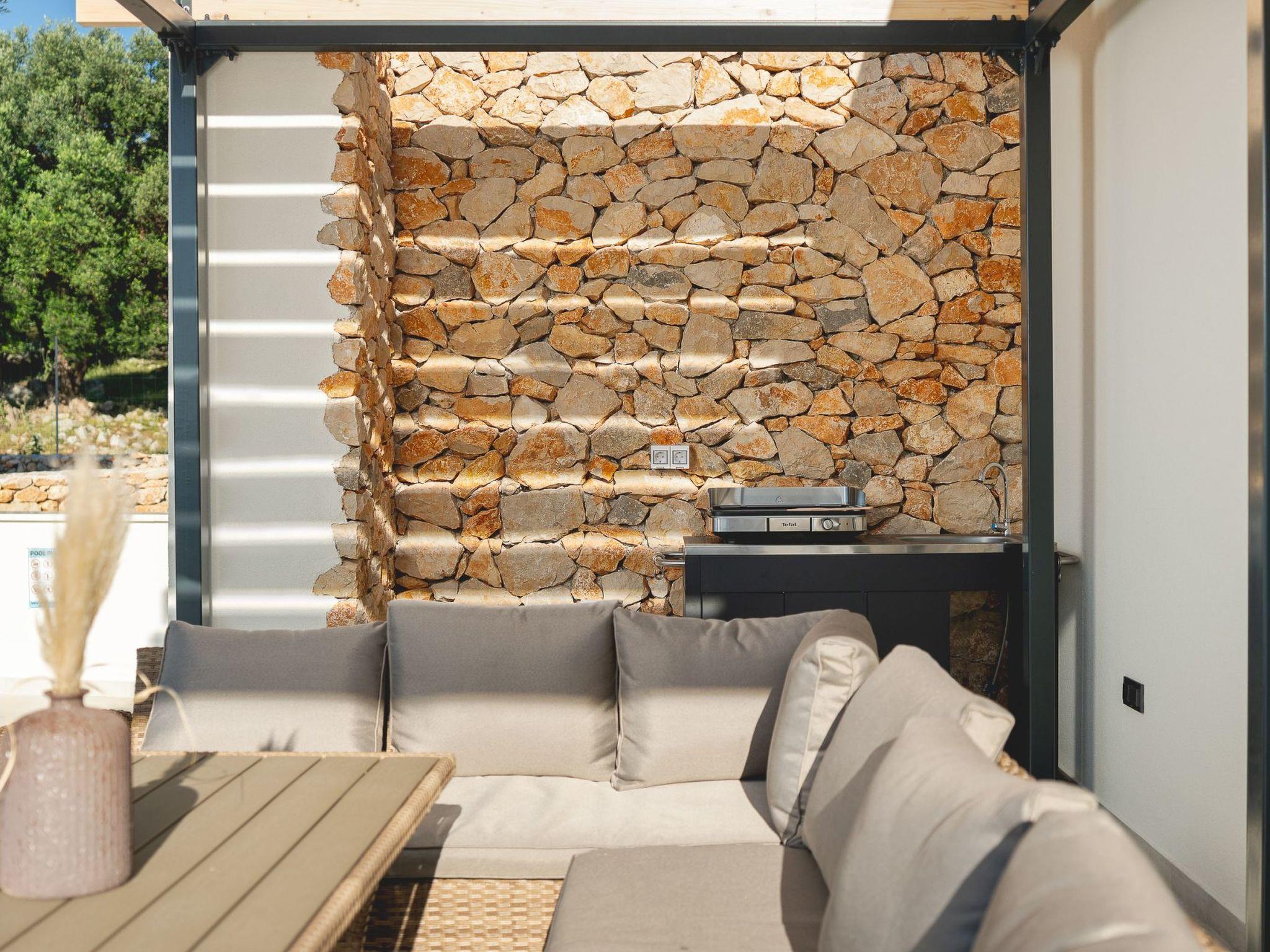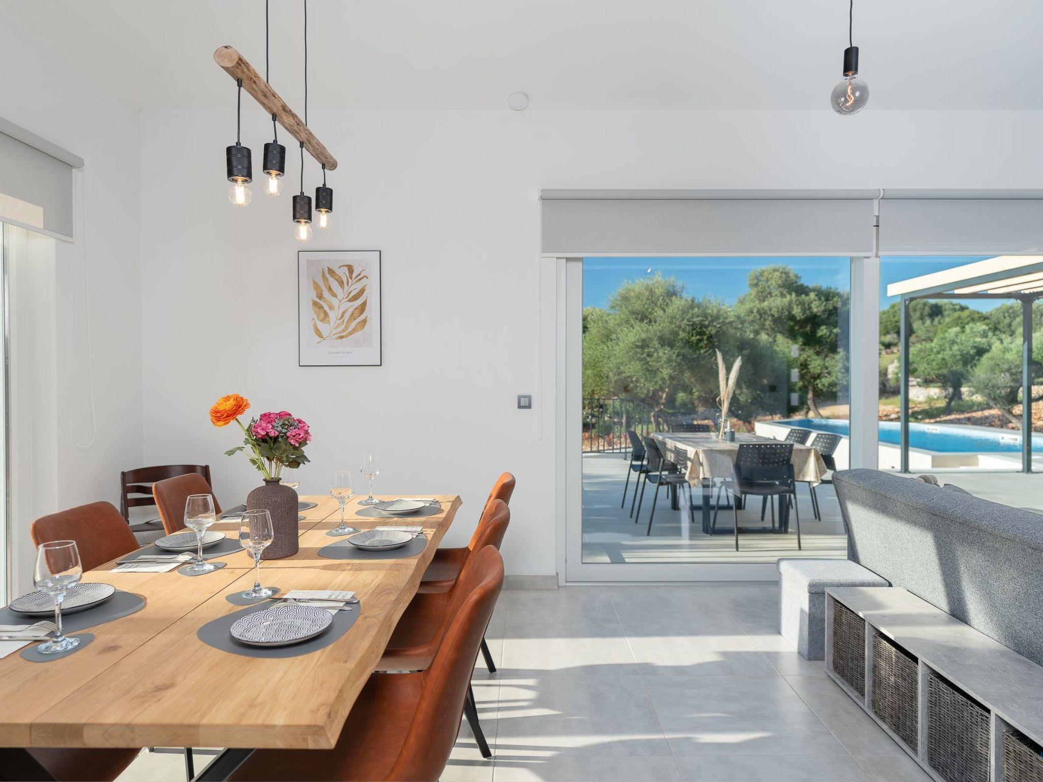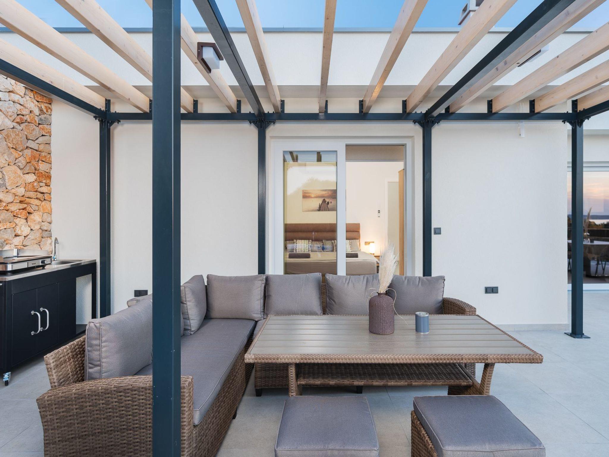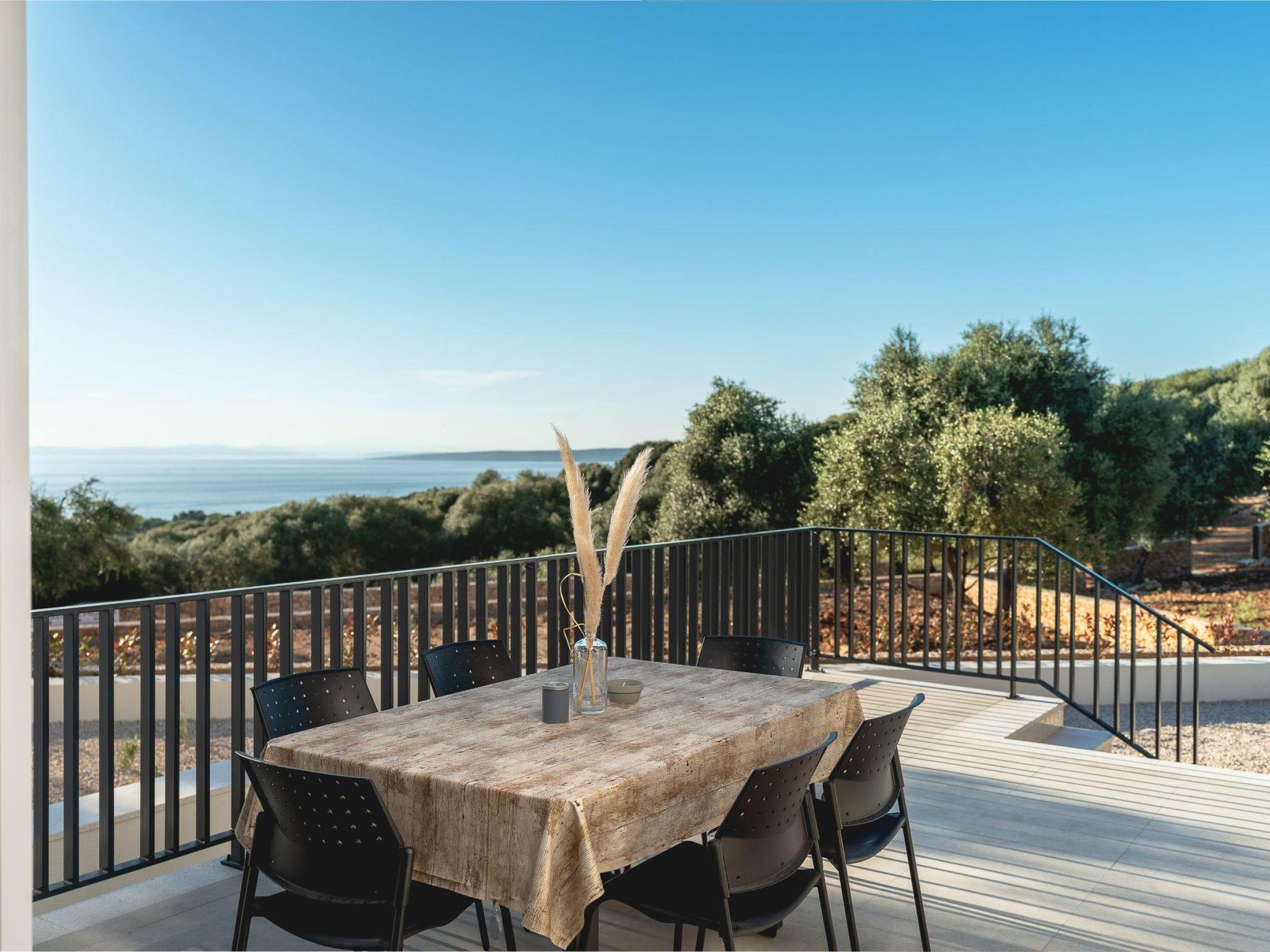 An outdoor barbecue, a lounge set and a flat barbecue on the large terrace with sea view help you to relax. A freshly planted natural garden with mature olive trees rounds off the whole experience.