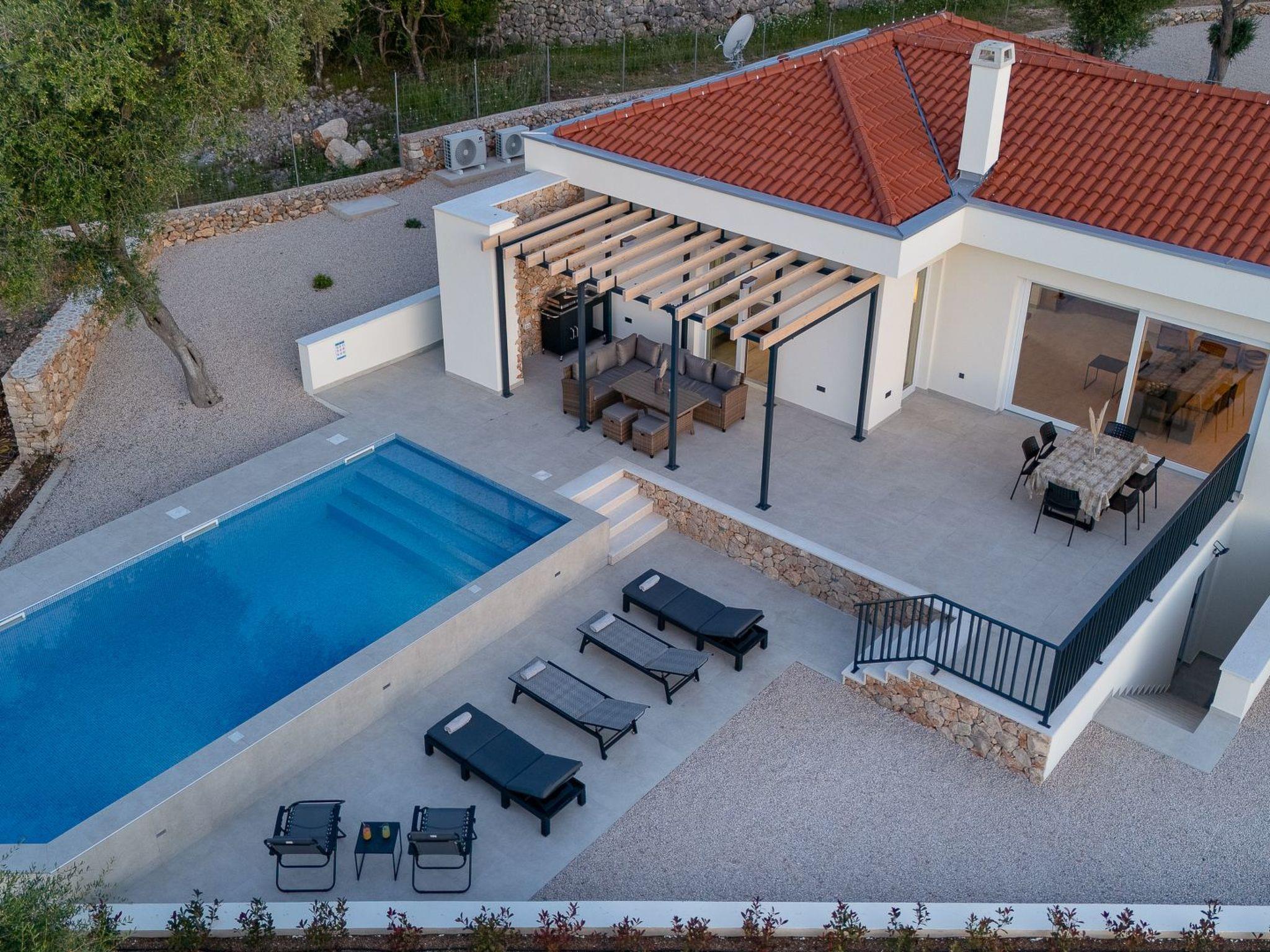 Are you looking for heavenly peace and relaxation close to nature with a sea view? Then the 4-star eco-friendly Croatia Heaven villa at the most beautiful end of Pag welcomes you! Up to 7 people will find the perfect base for an individual holiday, workation or retreat on 100 m2. The non-smoking villa is new and built to German standards. Everything is at ground level, disabled-friendly and modernly furnished. Relax on the large terrace or in the pool and enjoy cosy barbecue evenings with incredible sunsets.