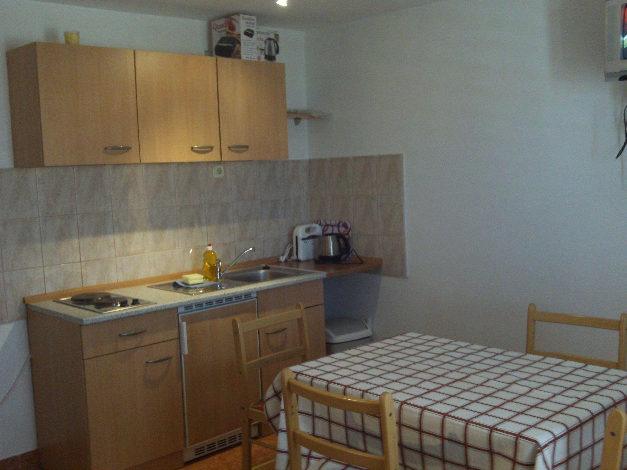 These simple but practically equipped flats are located in a newly built house by the road leading to other places (Zuboviæi-Metajna), 6 km from the centre of Novalja, 250 m from the sea, with a beautiful view of the bay. New house with 4 apartments, one of which has air conditioning and its own terrace where you can spend many evenings and enjoy the beautiful view and is therefore a bit more expensive than the other one which has no terrace. The flats consist of: a room with a bed for 2 people, bathroom, kitchen (living room) with a bed also for 2 people with the possibility of an extra bed. The kitchen has crockery, a fridge, a table and chairs and satellite TV. You also have your own car park and barbecue. The house is located in the environment very different natural beach, where you can find for yourself a small private beach.other: Caska sandy beach, Zrce famous beach with discos and some extreme sports only 4 km away, Strasko-7km away.there is a great sports offer in Camp Strashko (volleyball, tennis, mini golf, table tennis). You can also rent a bike (Pag is known as one of the islands with over 200 km of bike tracks), a boat or a scooter. In the shopping centre you can enjoy in the sauna or workout in the fittnes. All beaches are suitable for children and people with disabilities. The island is located in an ideal place, surrounded by five national parks, the Plitvica Lakes, North Velebit, Paklenica Canyon, Krka River with its waterfalls and beautiful Kornati islands.