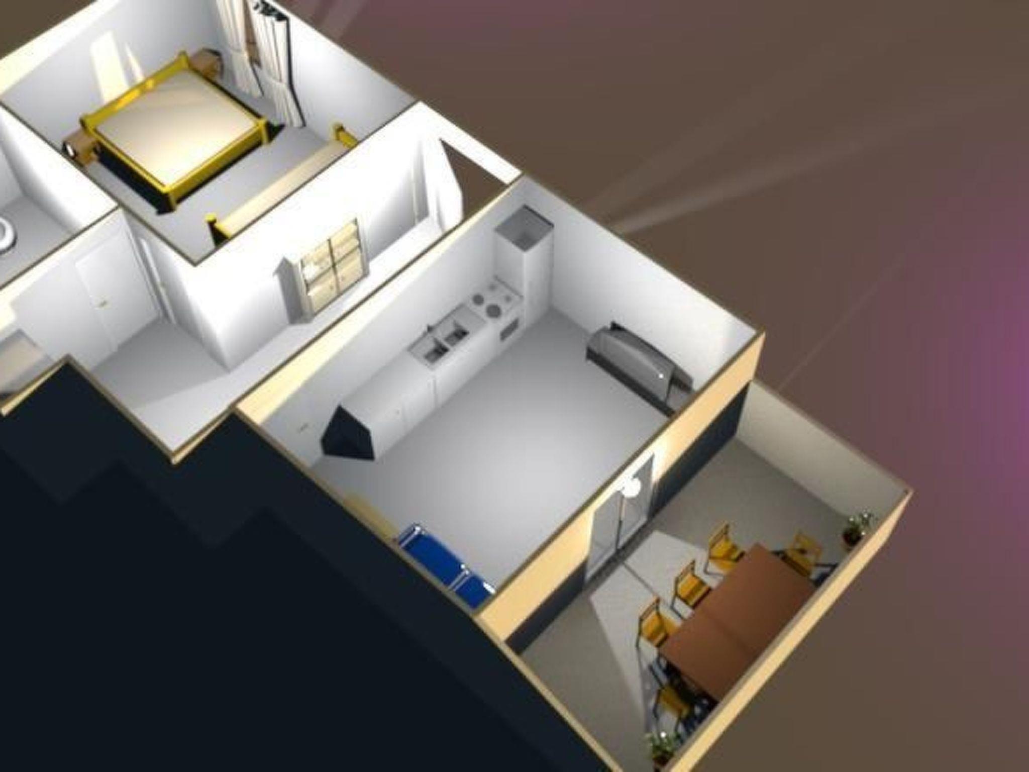 This 50m² apartment is on the first floor and can accommodate five people. It has a bedroom with a double bed (160 x 200cm) and a single bed (90 x 200cm). The living room-kitchen also has a double sofa bed (160 x 200cm). The kitchen is equipped with a stove, oven, fridge and kettle. The tiled bathroom provides a shower and WC. There is air conditioning in the living room-kitchen.